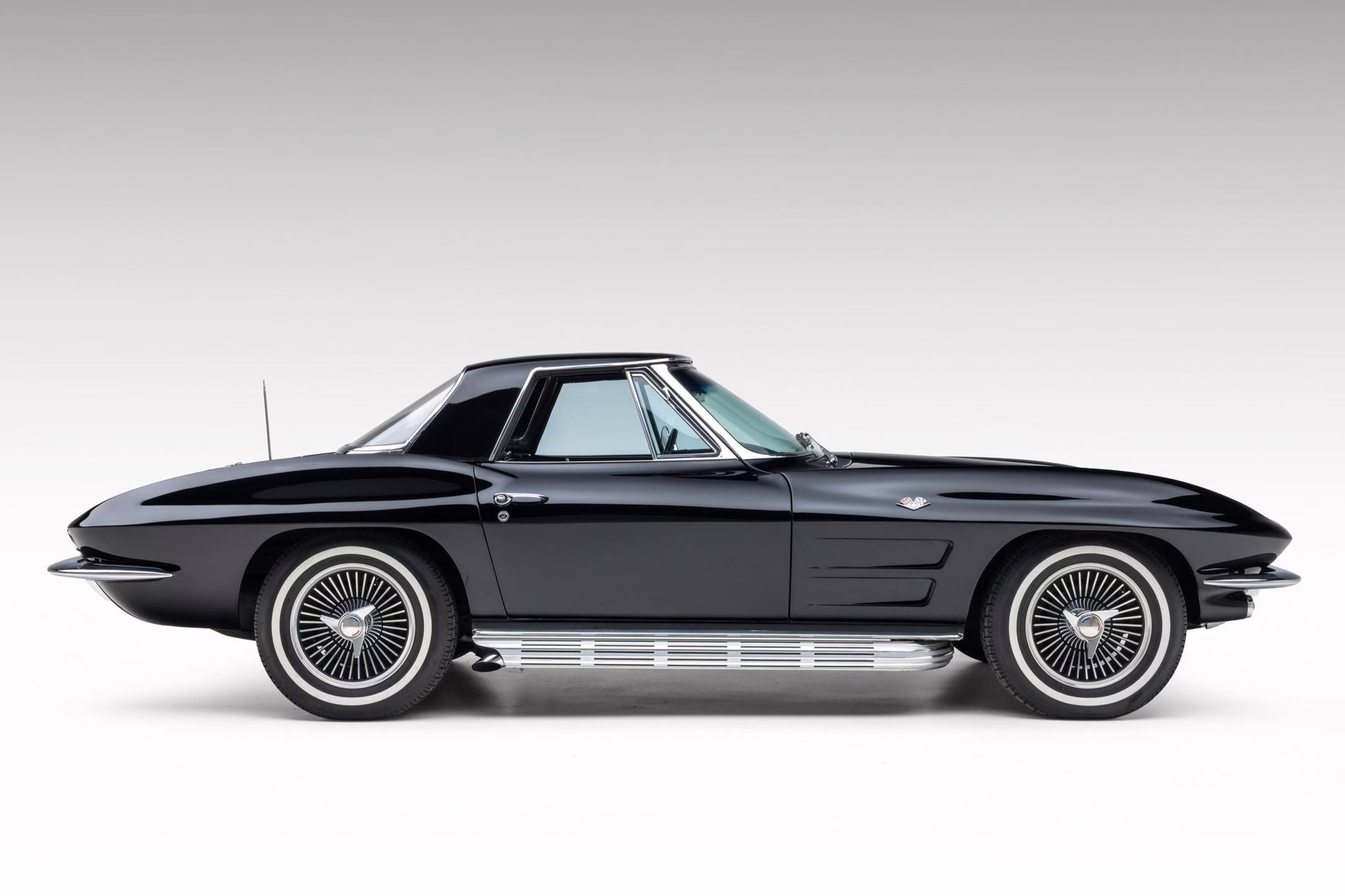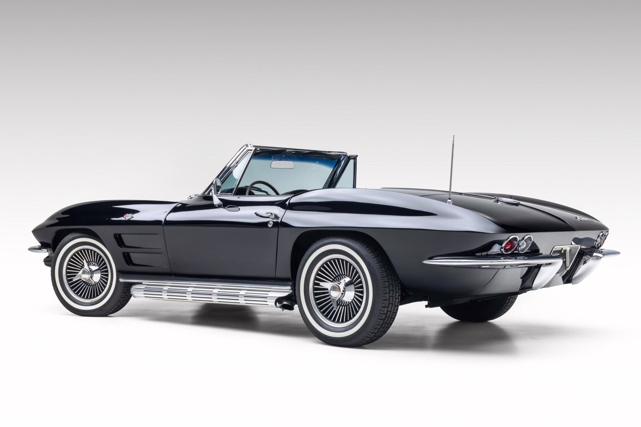 1964 Chevrolet Corvette Convertible, finished in Tuxedo Black with a white soft top, a body-colored hardtop, and a black interior.