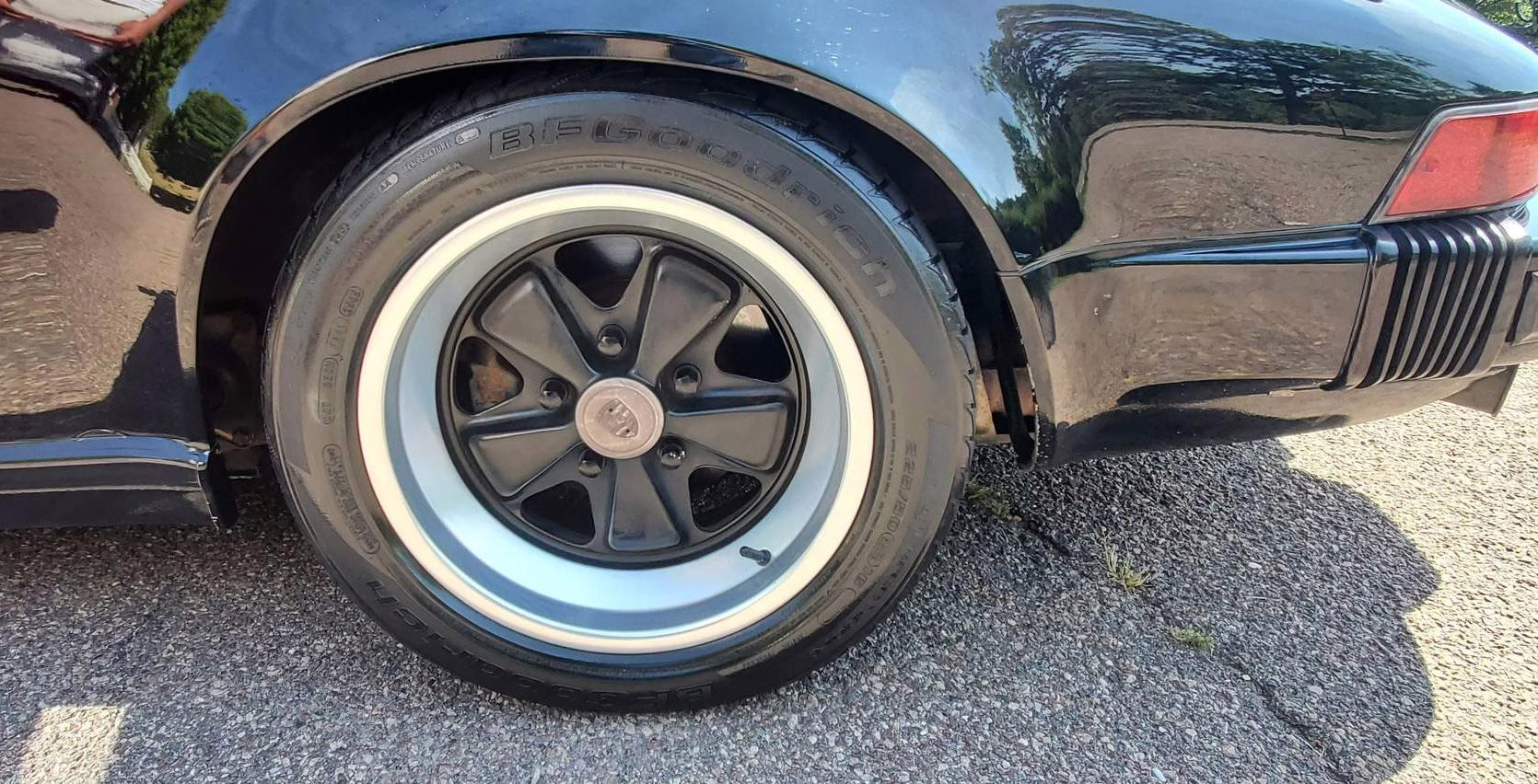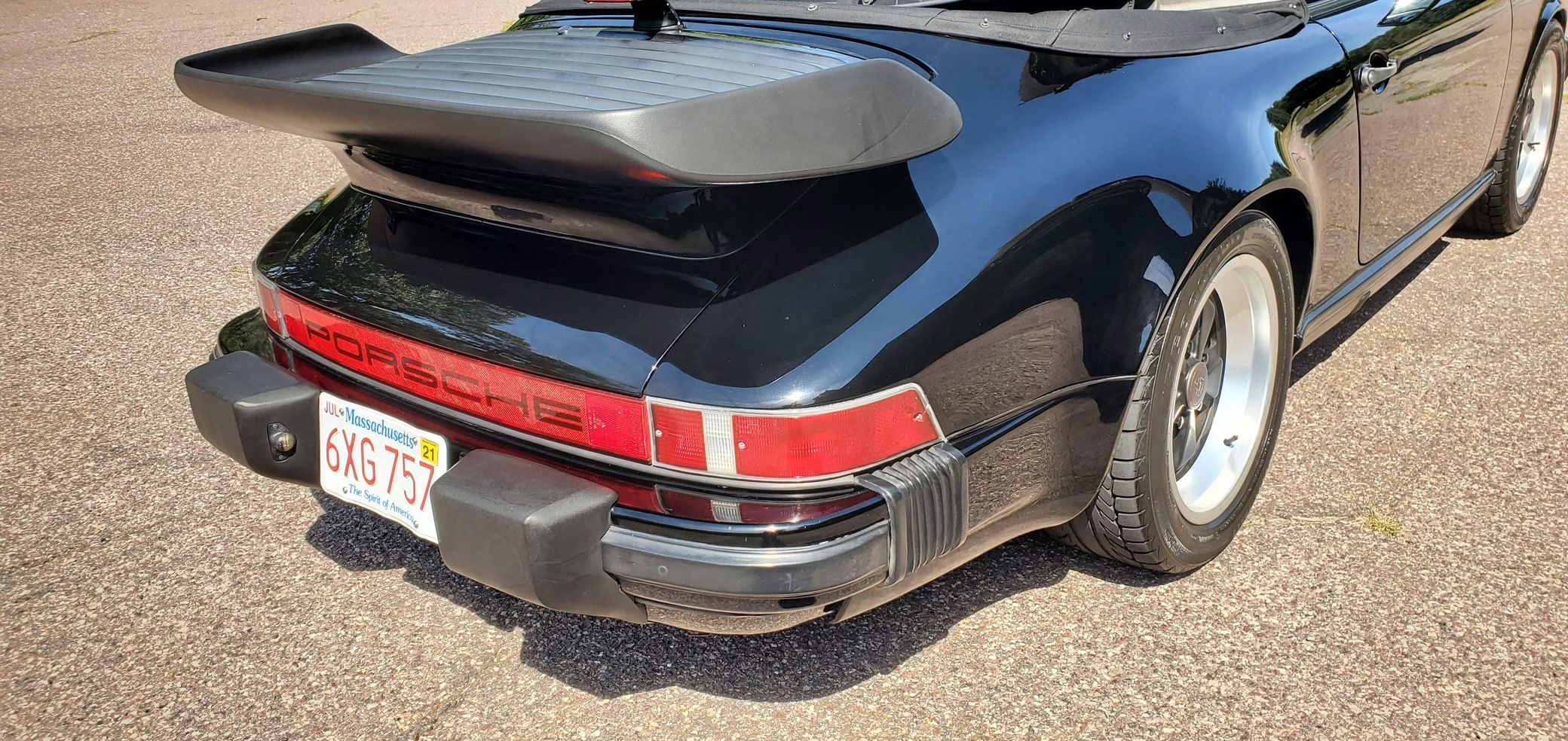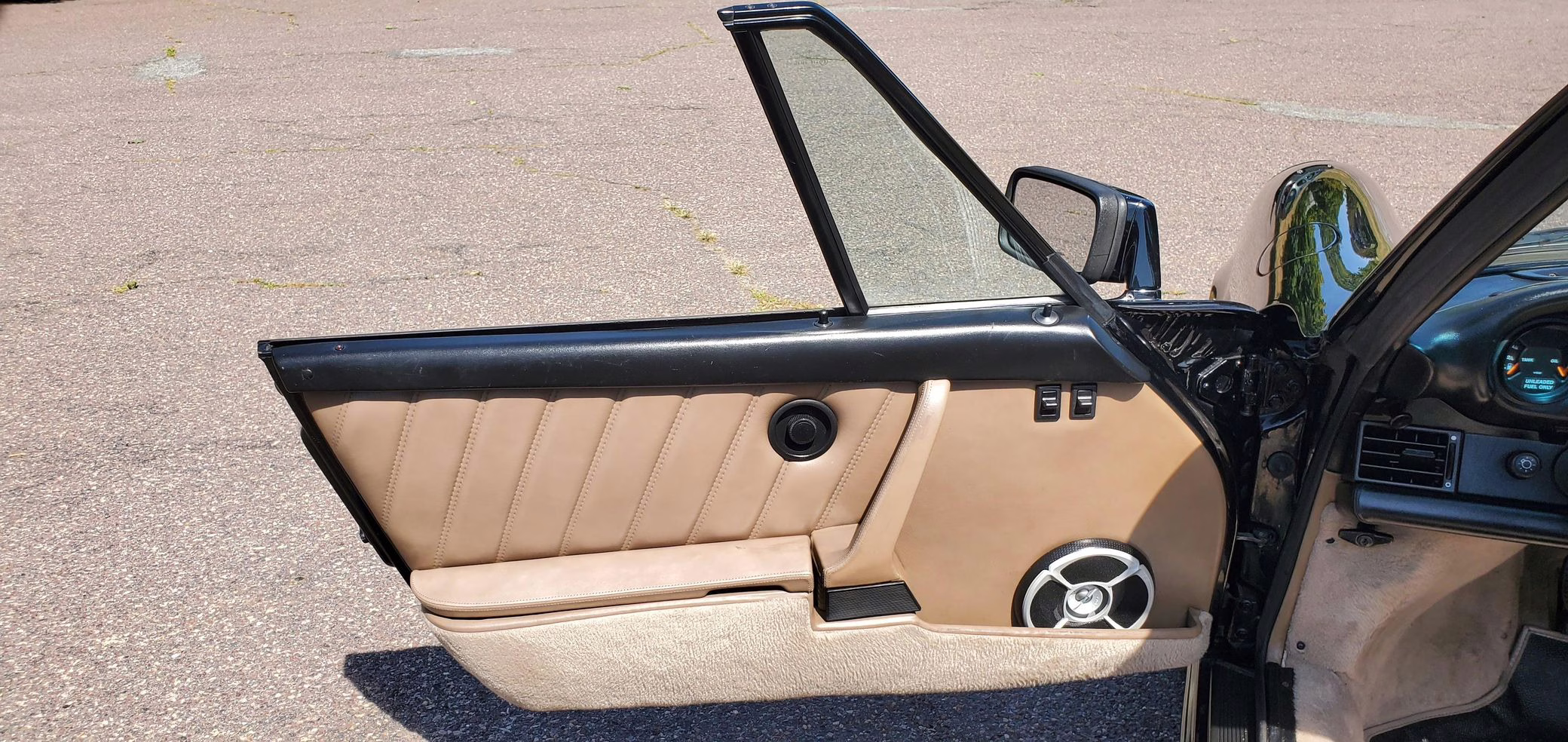 Riding on 16-inch Fuchs wheels, this 911 is equipped with leather upholstery, air conditioning, and a power-operated cloth soft top. It’s largely unmodified with the exception of a Turbo-style rear spoiler, an aftermarket Sony CD player, and a set of aftermarket speakers.