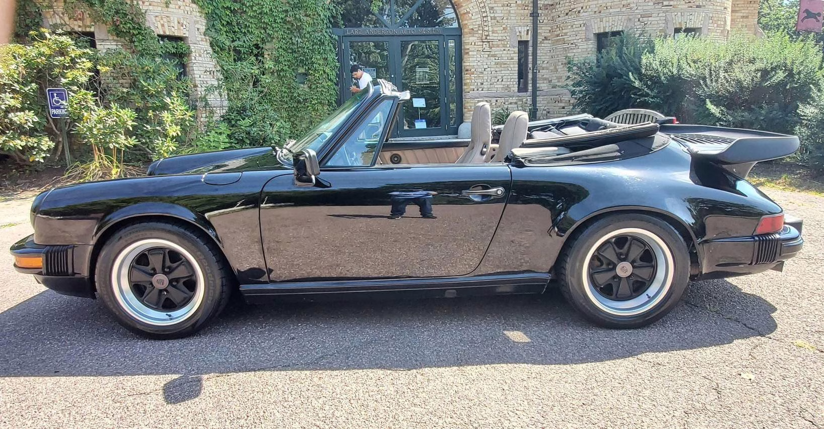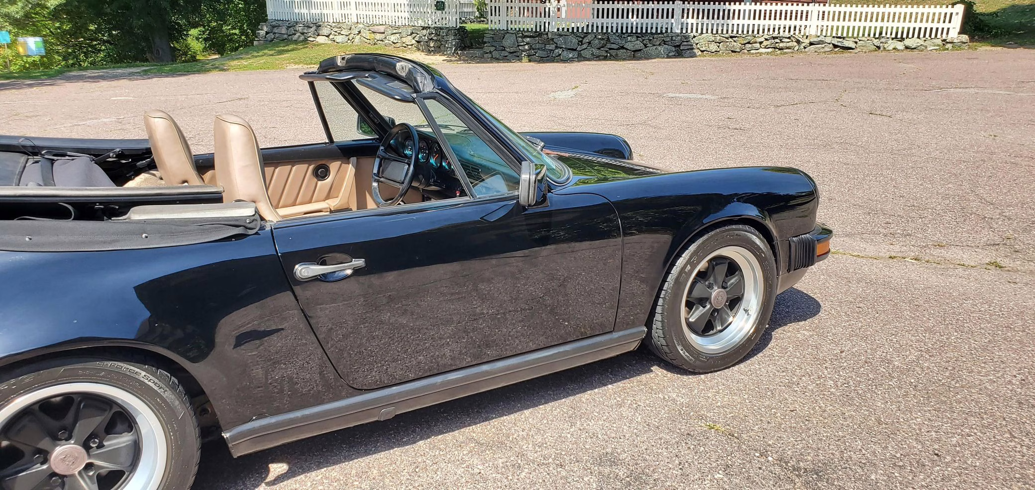 1986 Porsche 911 Carrera Cabriolet, finished in black with a tan interior.