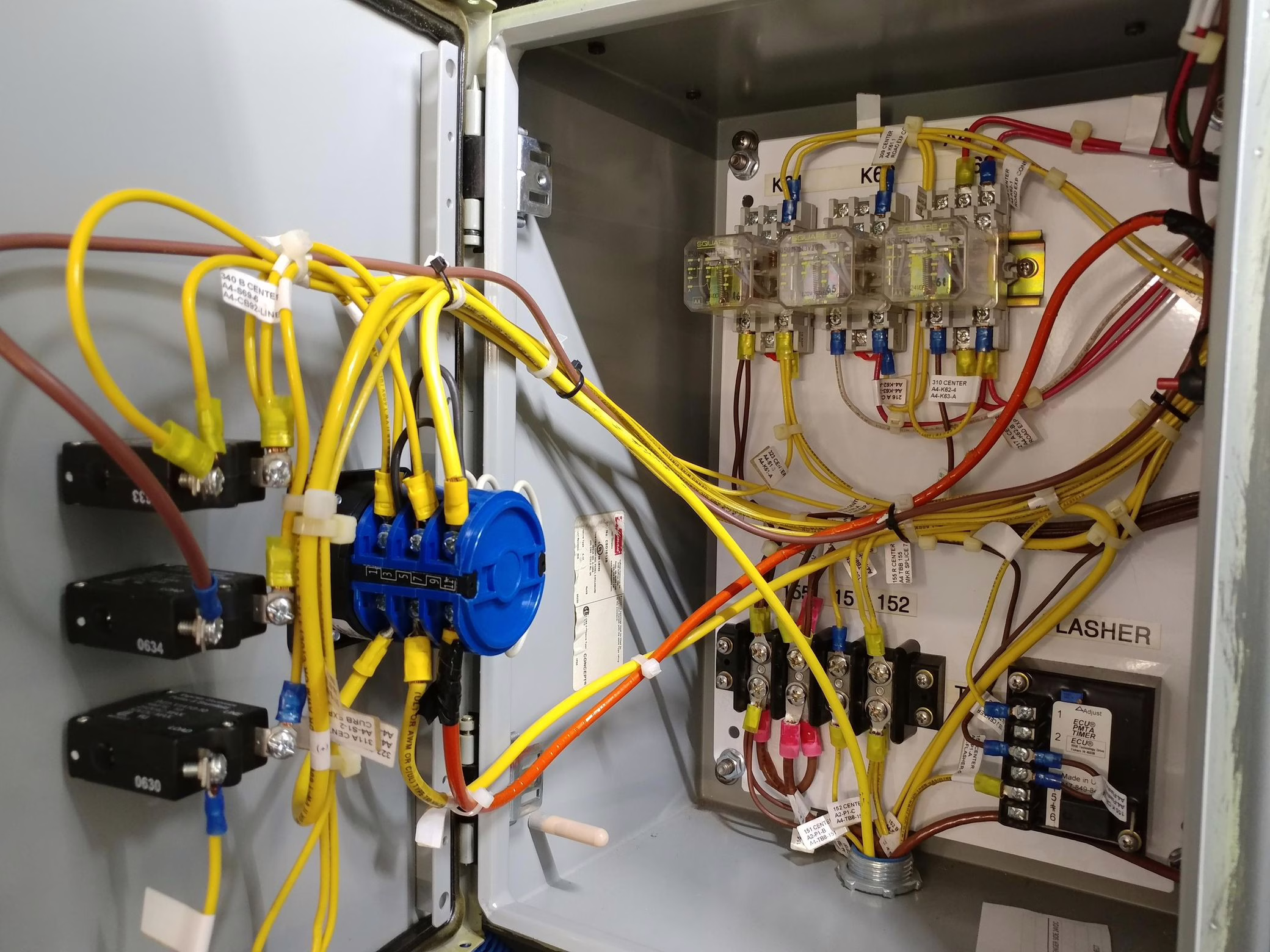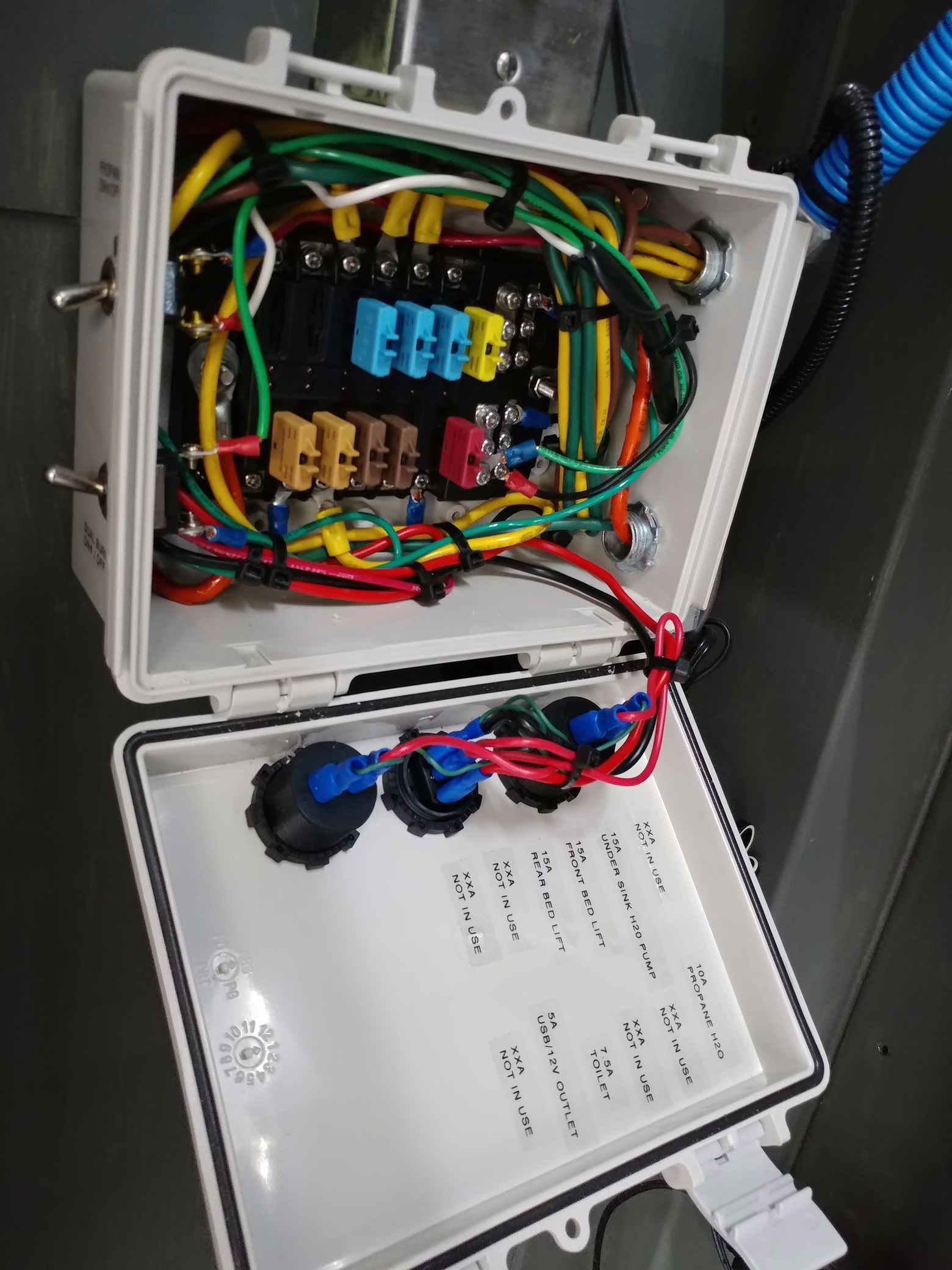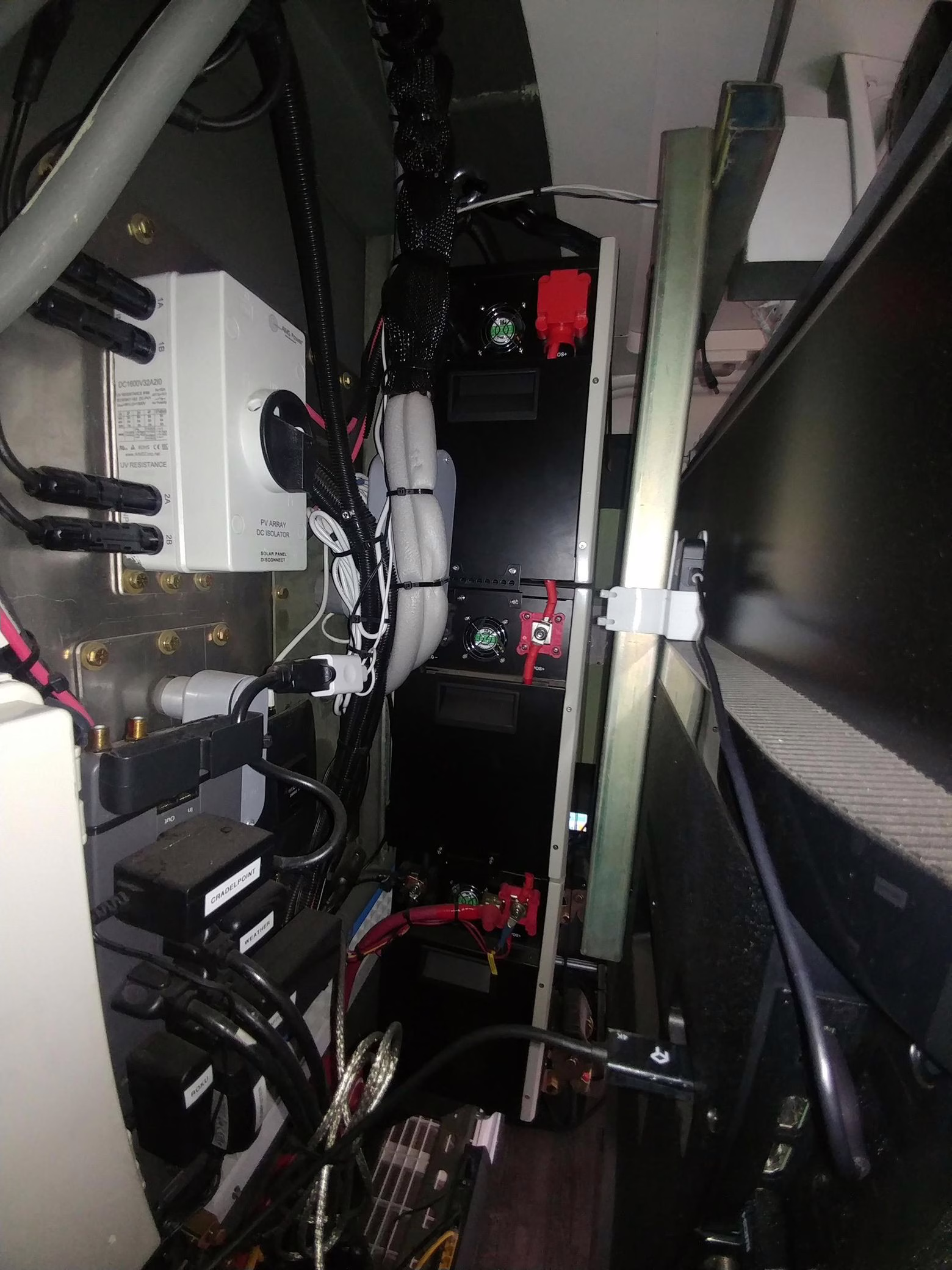 Originally configured as a command center with expandable side panels, this M1087 was converted into an RV with extra insulation, flooring, a 60-gallon fresh water tank, a stainless-steel shower, a Vitrifrigo DRW180 refrigerator and freezer unit, a Sony X750H 55-inch 4K Ultra HD LED television, a king-sized memory foam mattress on a lift system, a cassette toilet, roof-mounted solar panels, Guangzhou Felicity Solar Technology LiFePO4 battery packs, and a weBoost cell signal booster, among numerous other modifications. More details about the motorhome conversion are provided below.