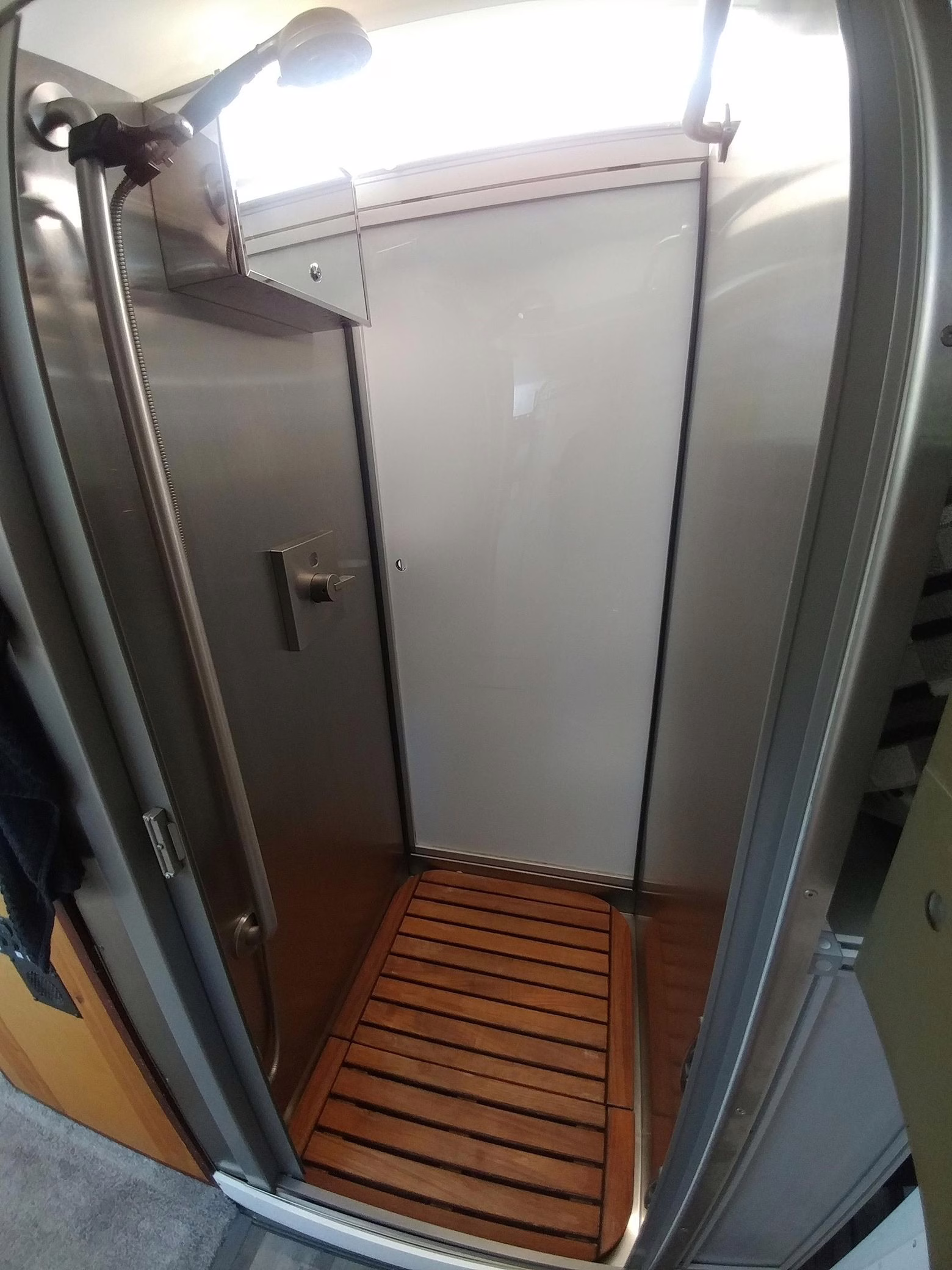 The former owner adds that the living space measures about 226 square feet with the slide-out side panels extended, and that the lowest part of the ceiling is around 6 feet high.