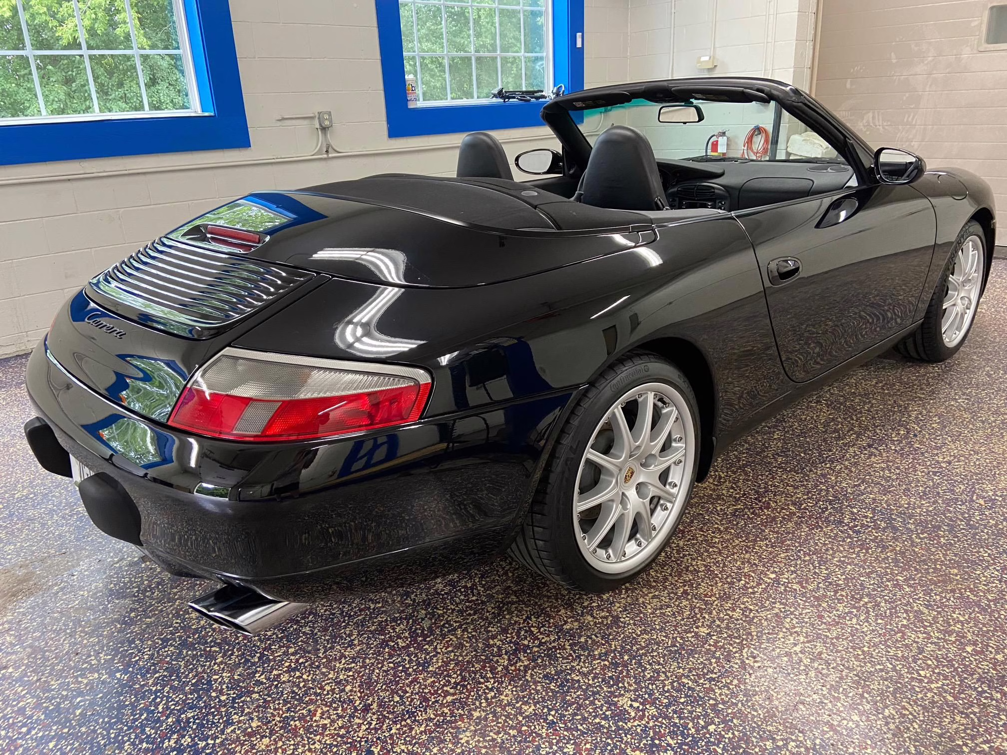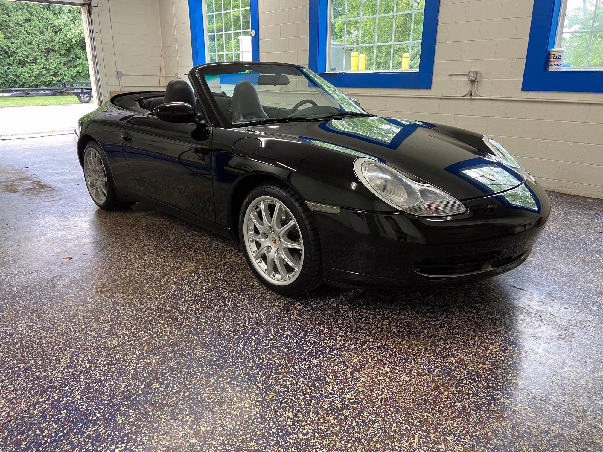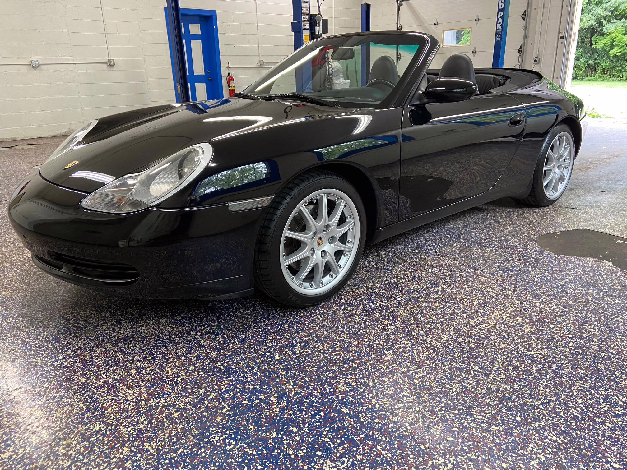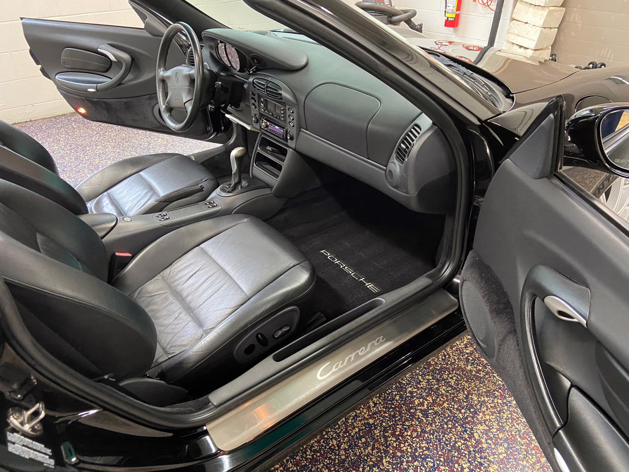 1999 Porsche 911 Carrera Cabriolet, finished in black with a black interior.
