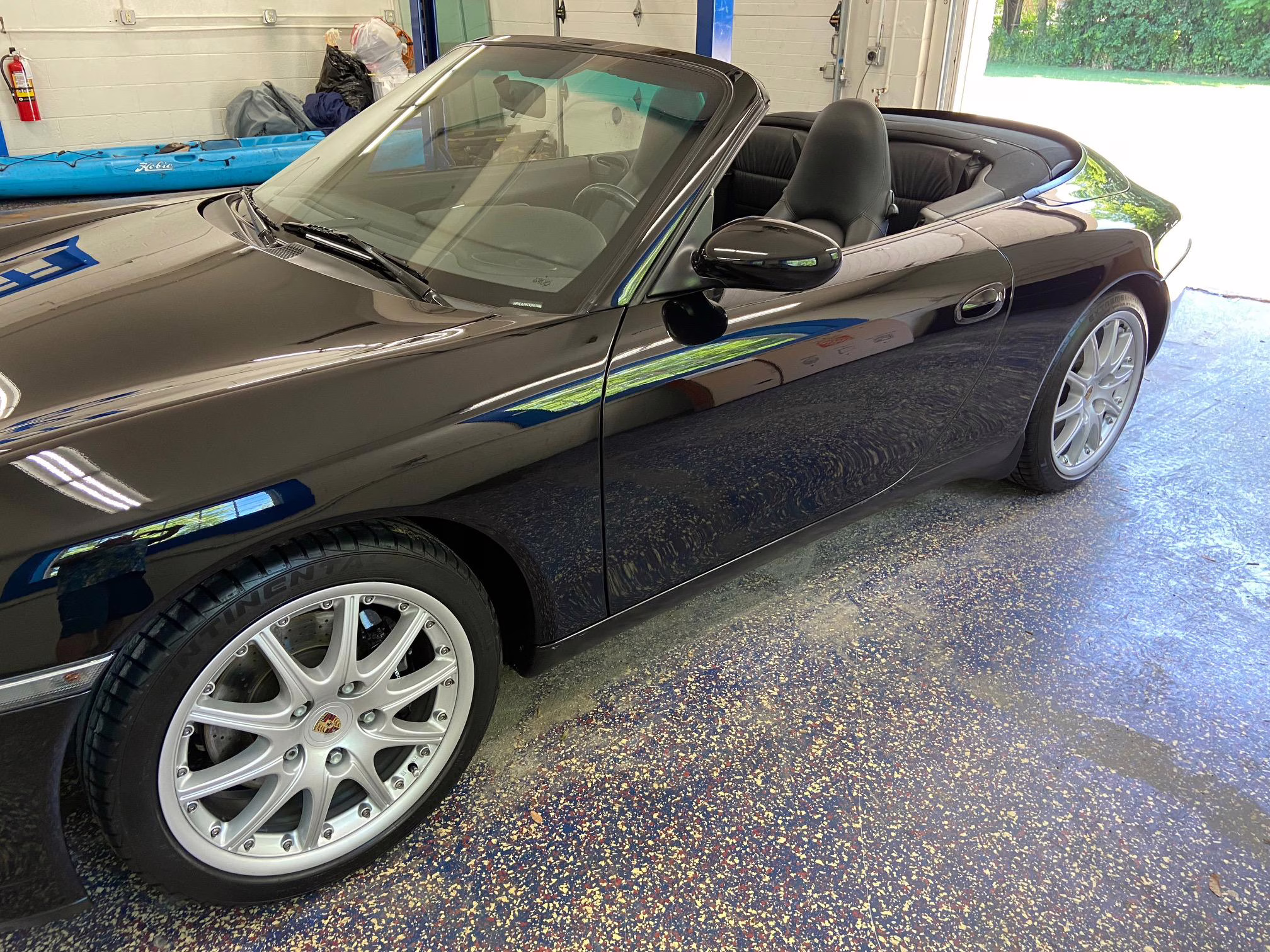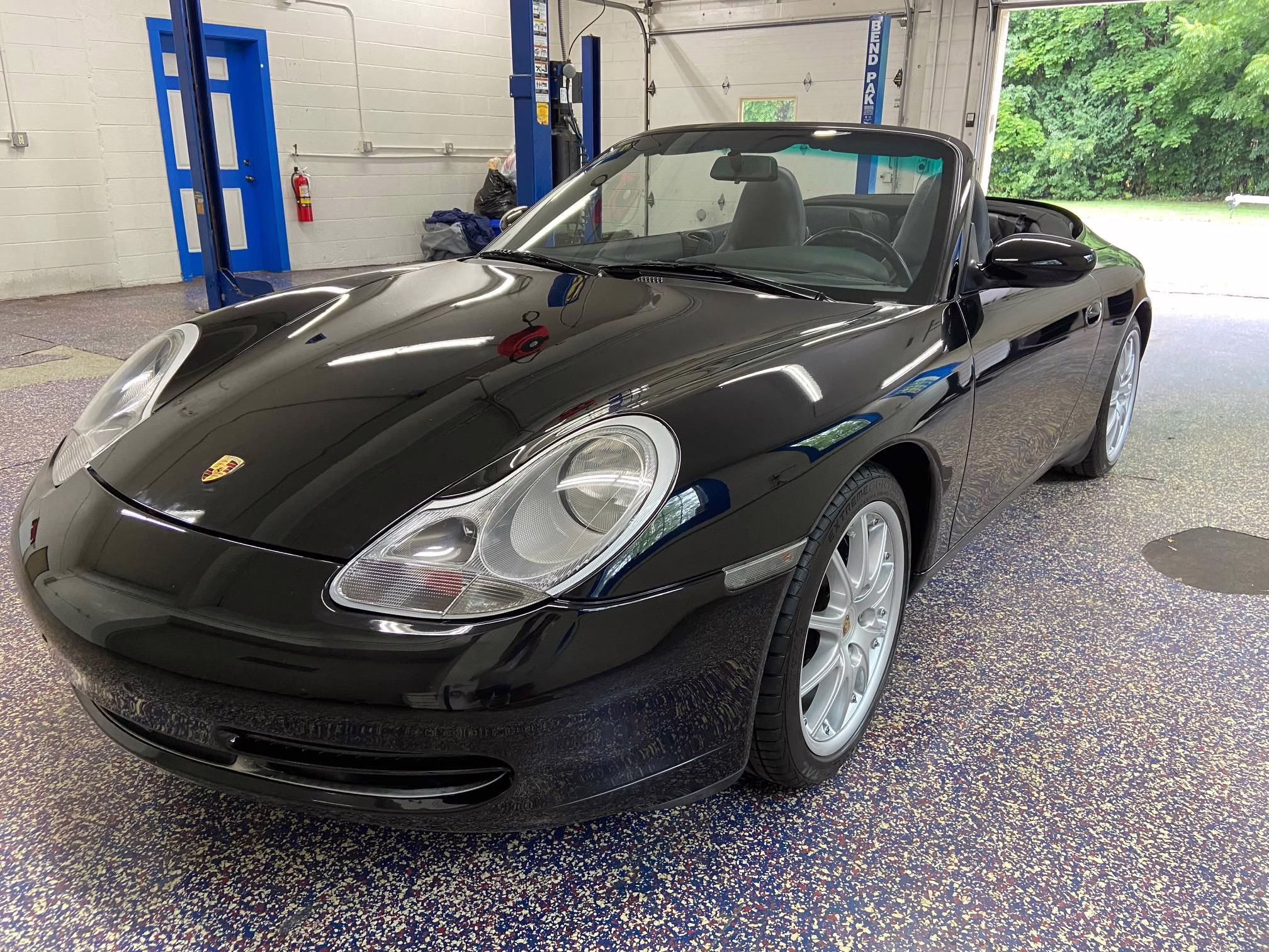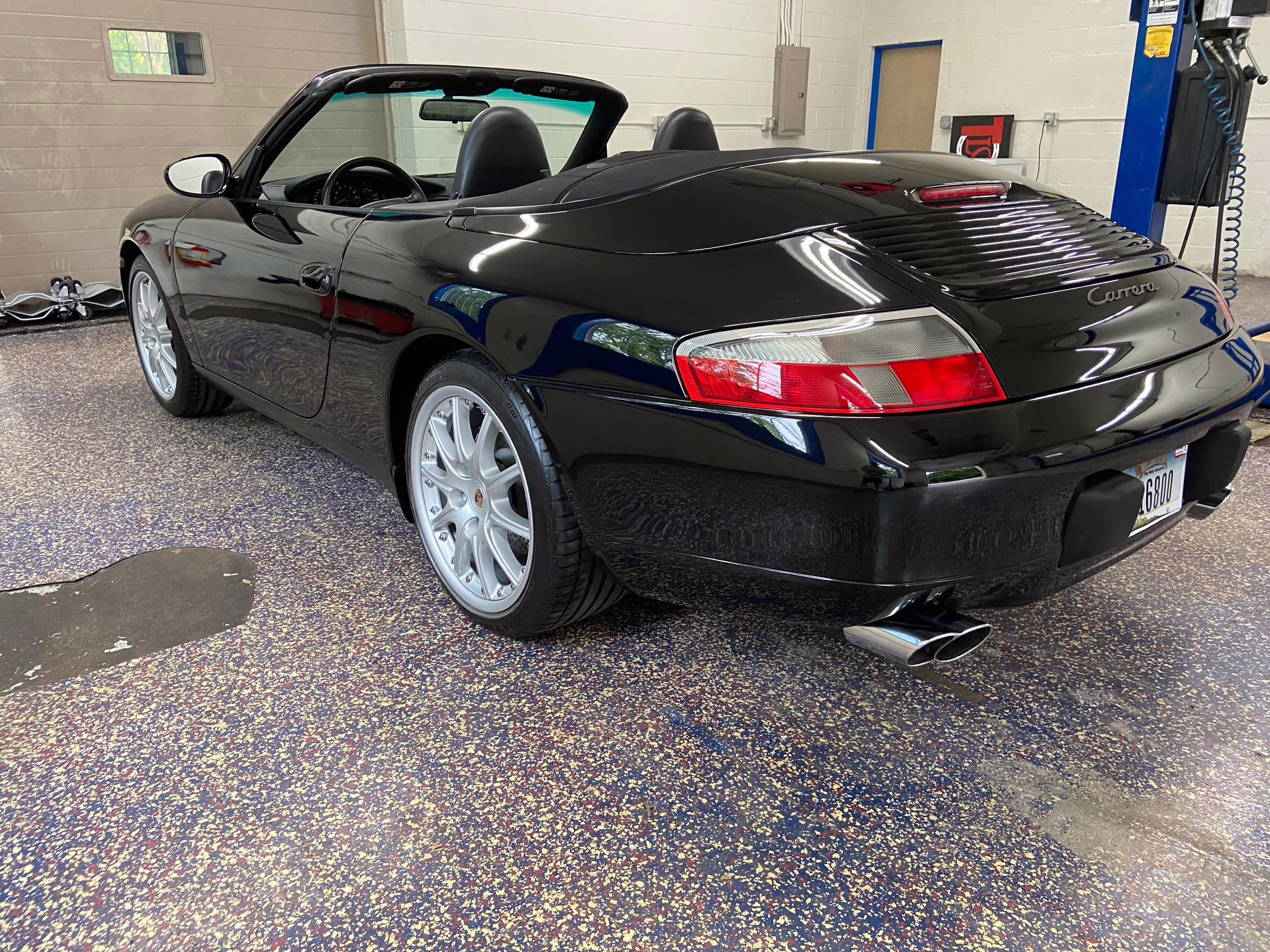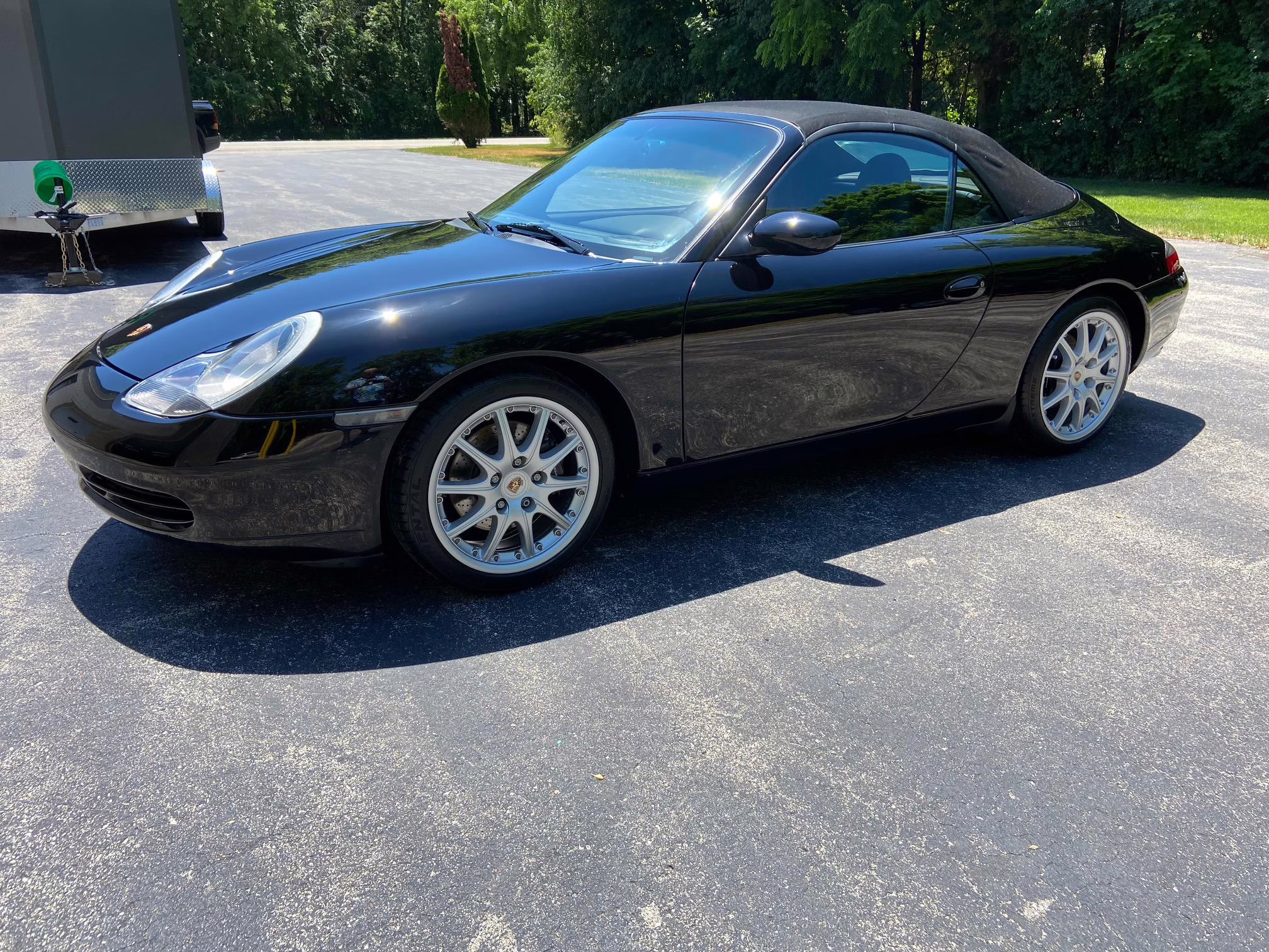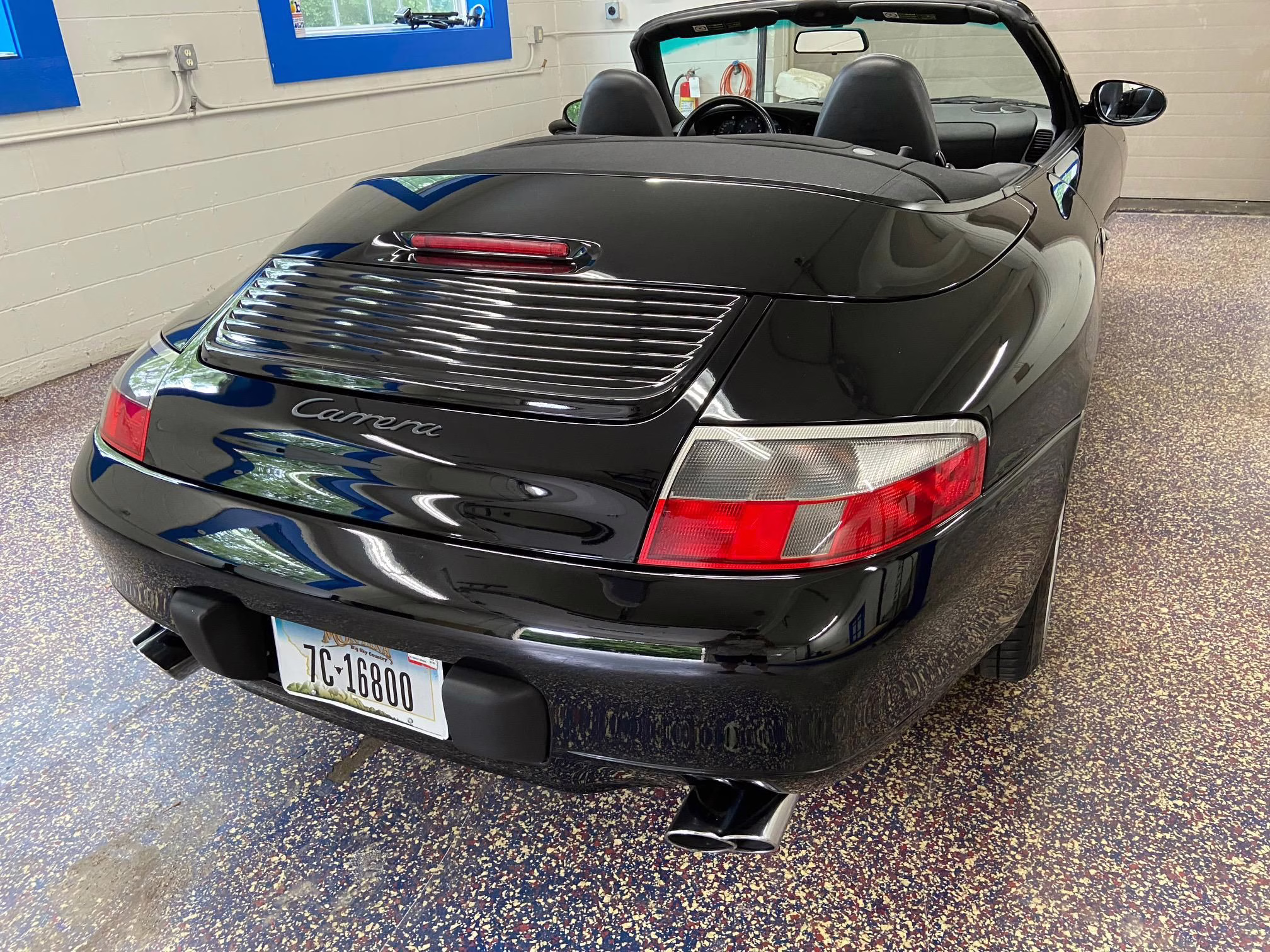 1999 Porsche 911 Carrera Cabriolet, finished in black with a black interior.
