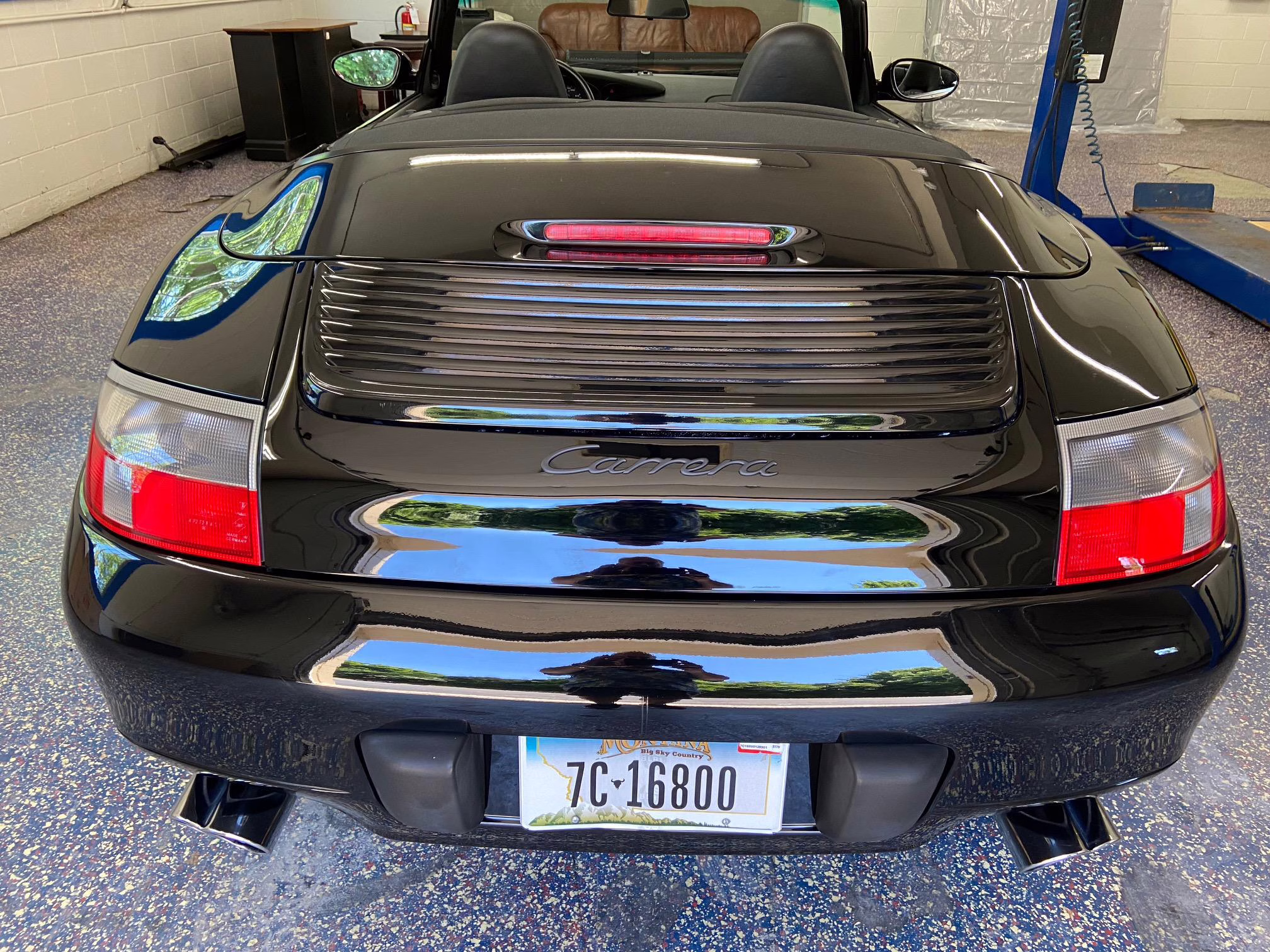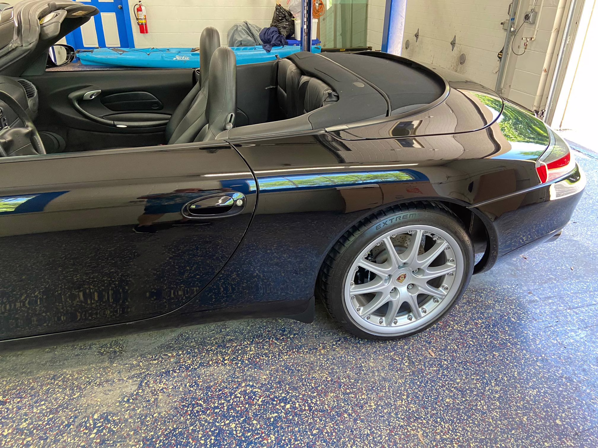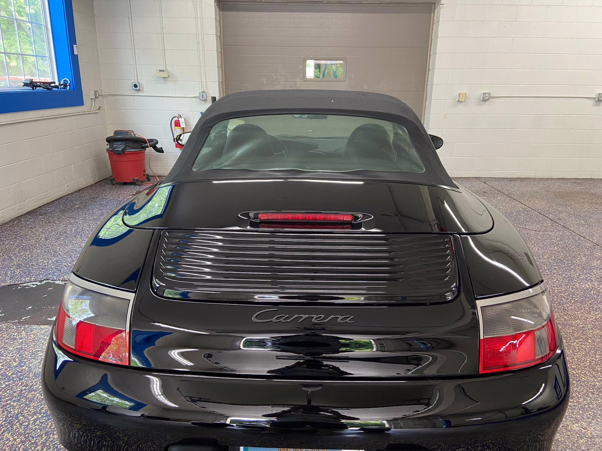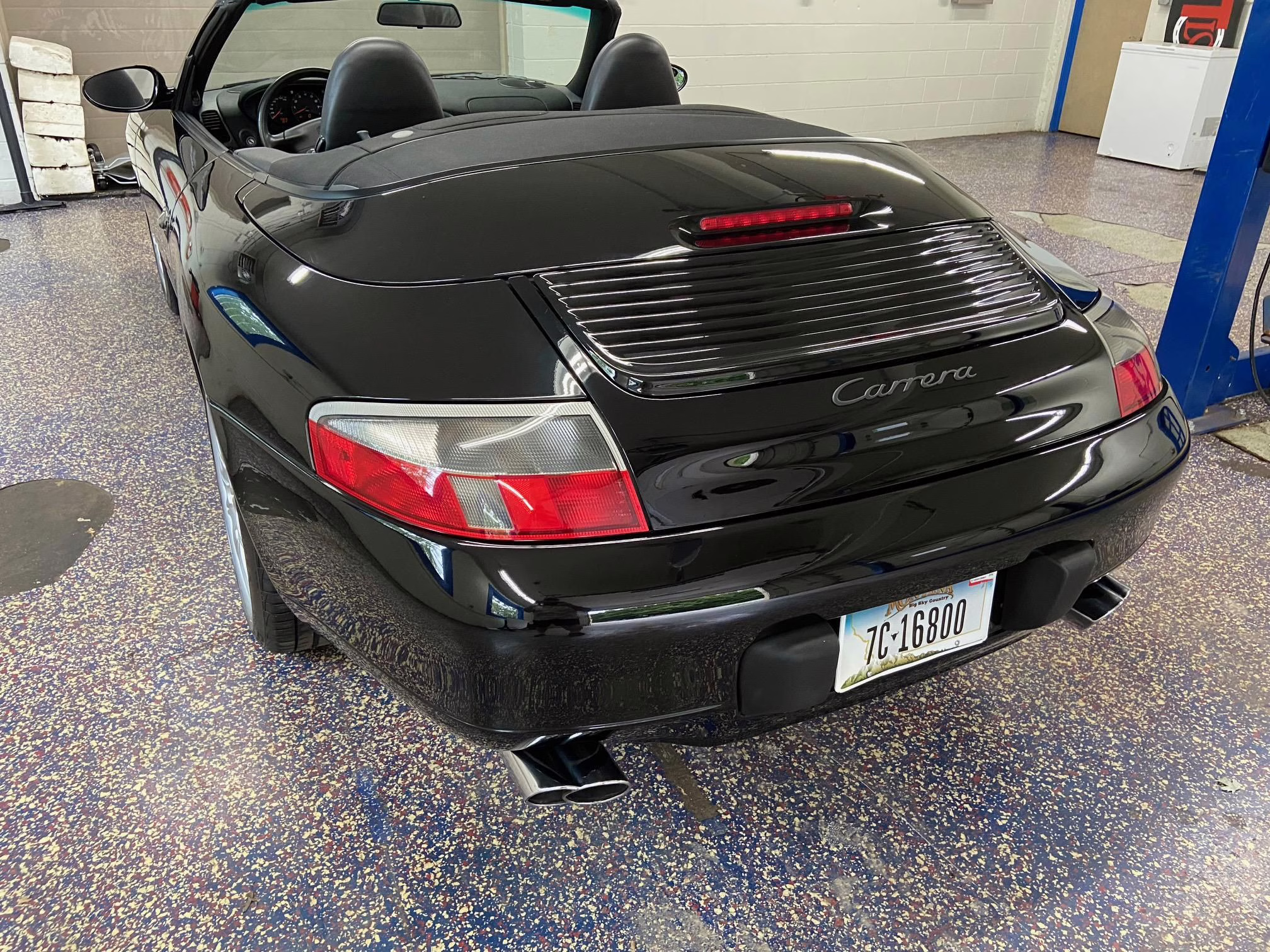 1999 Porsche 911 Carrera Cabriolet, finished in black with a black interior.