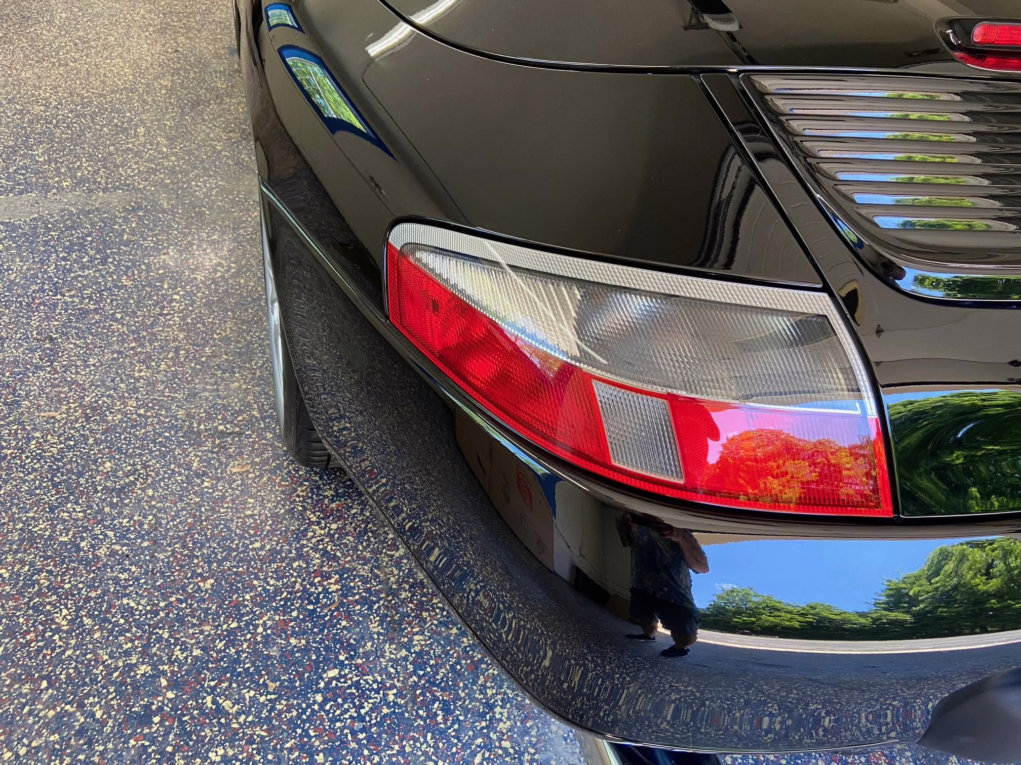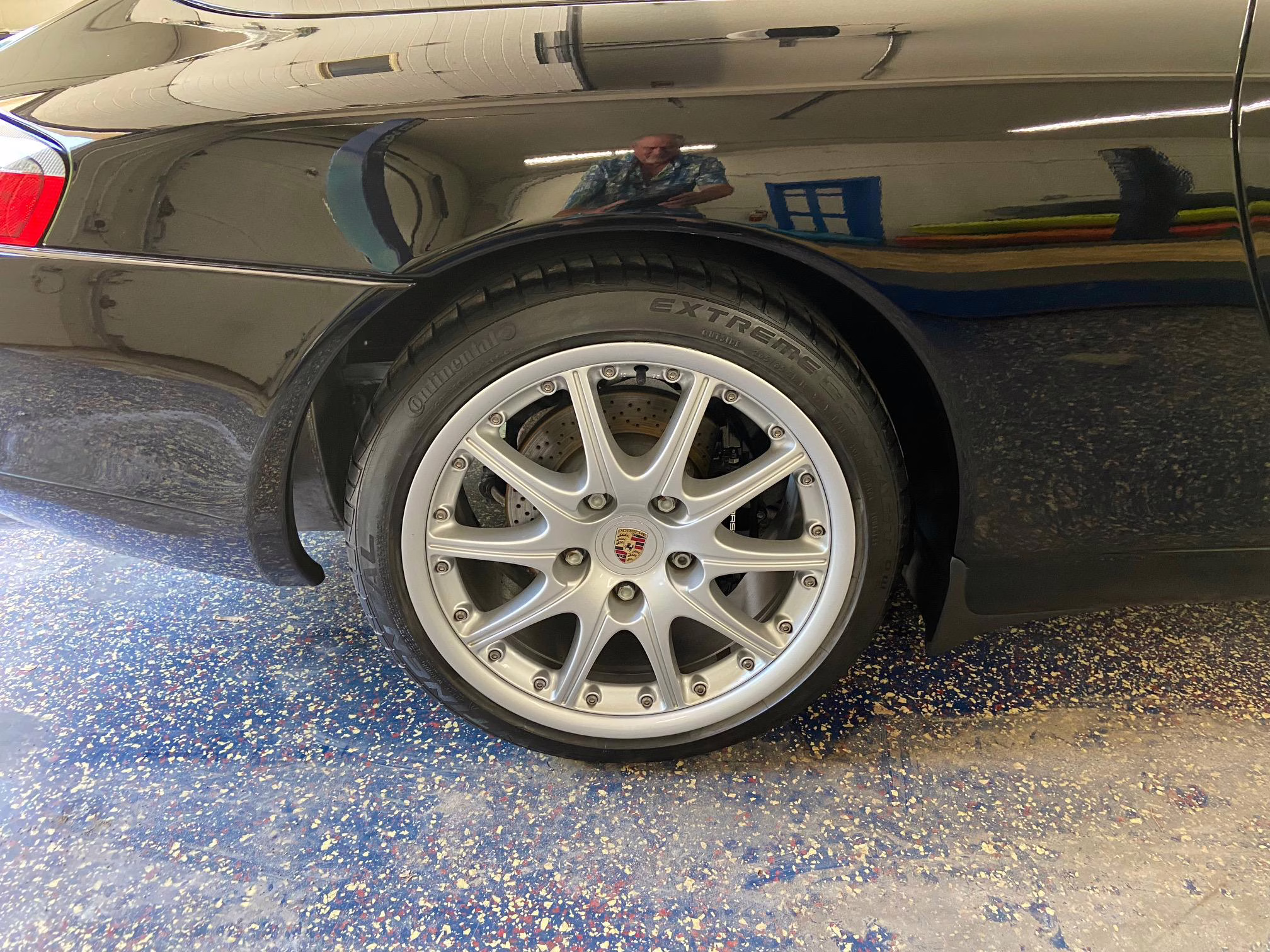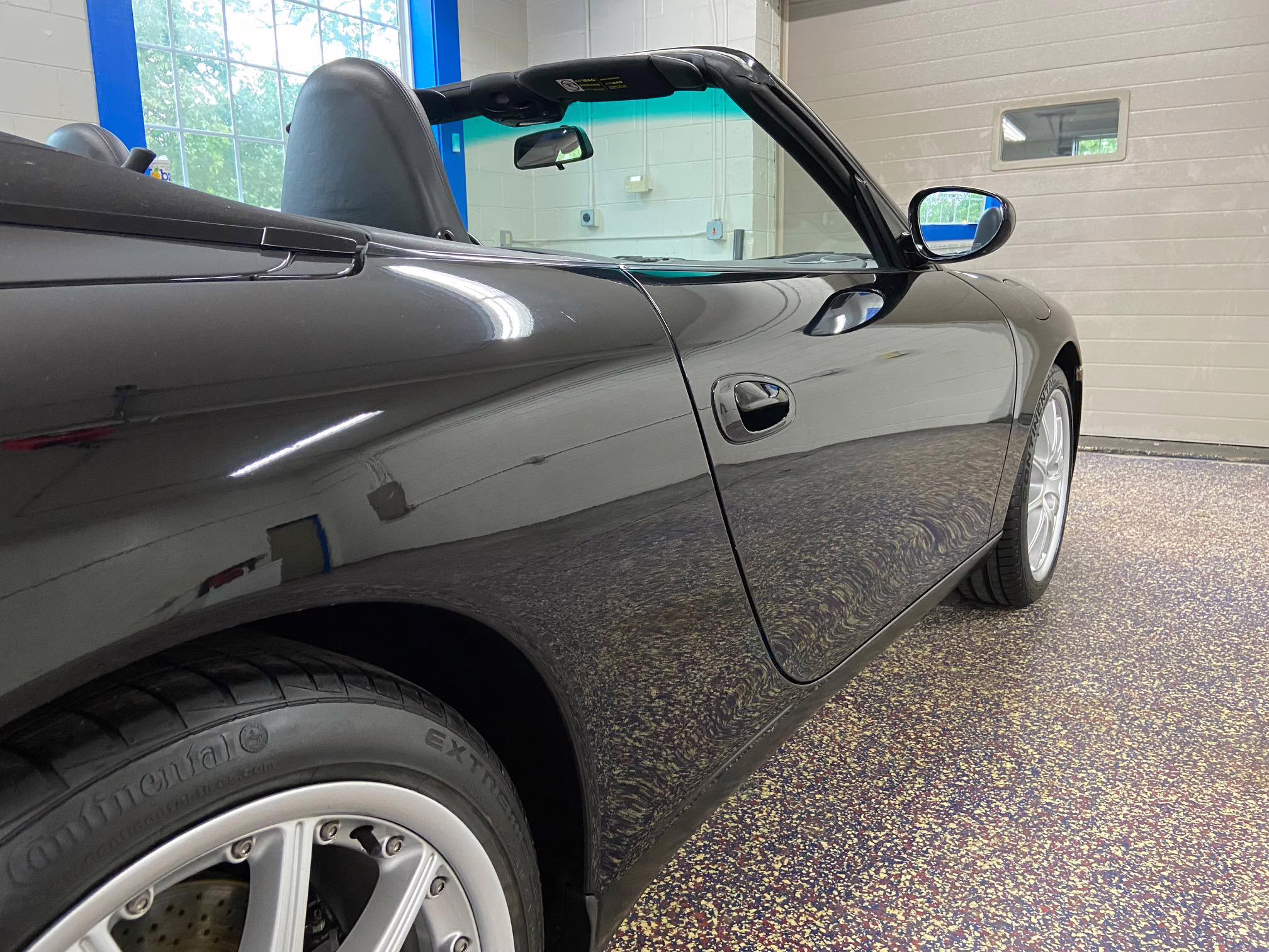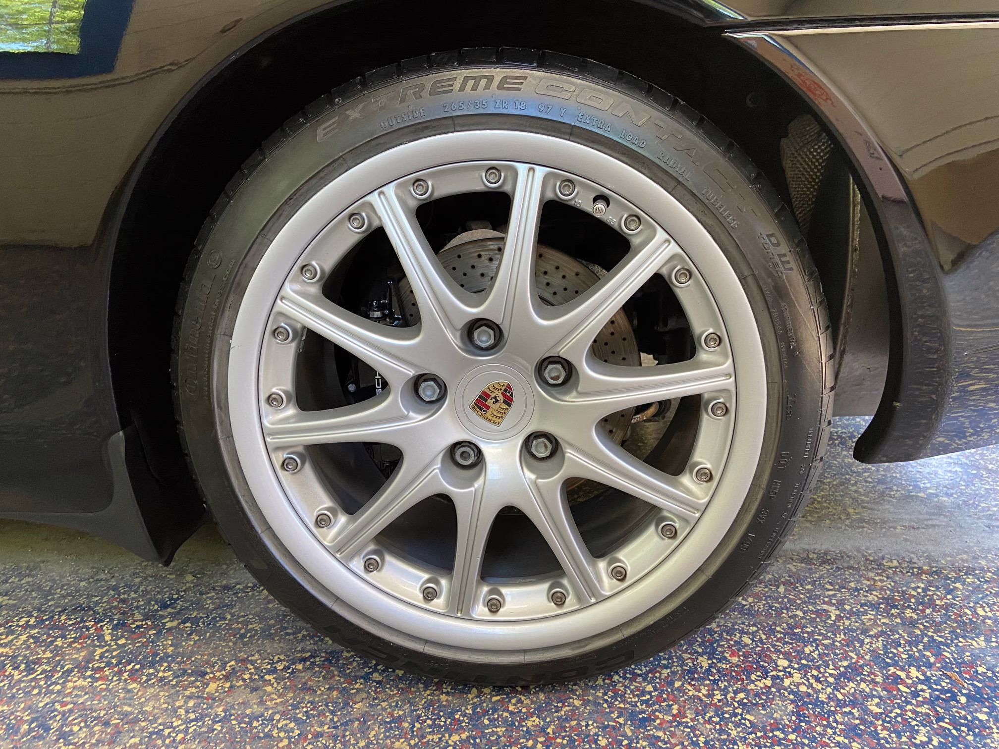 The former owner states that a scratch was touched up on the engine lid and that the wheels were refinished to address some curb rash.