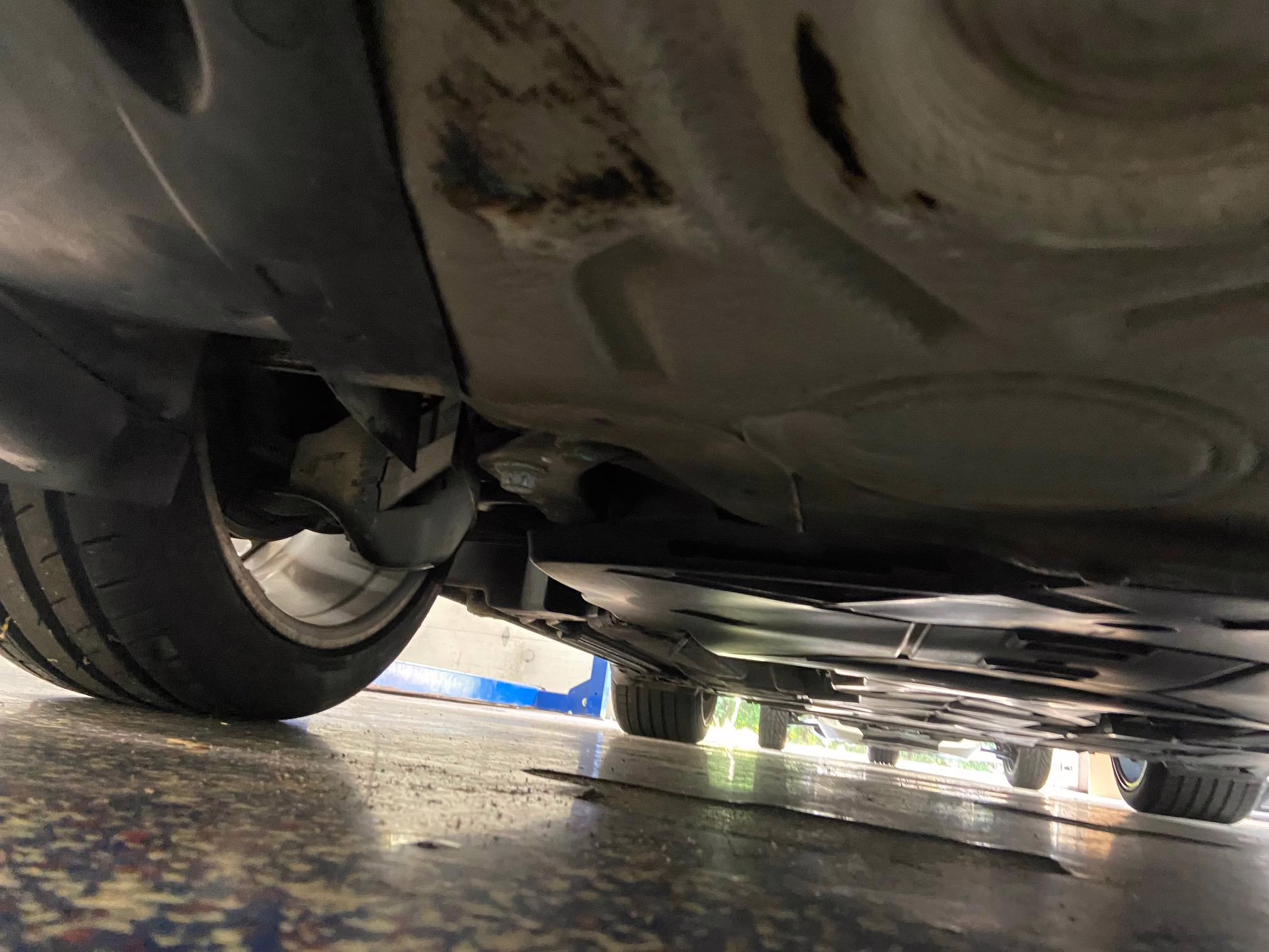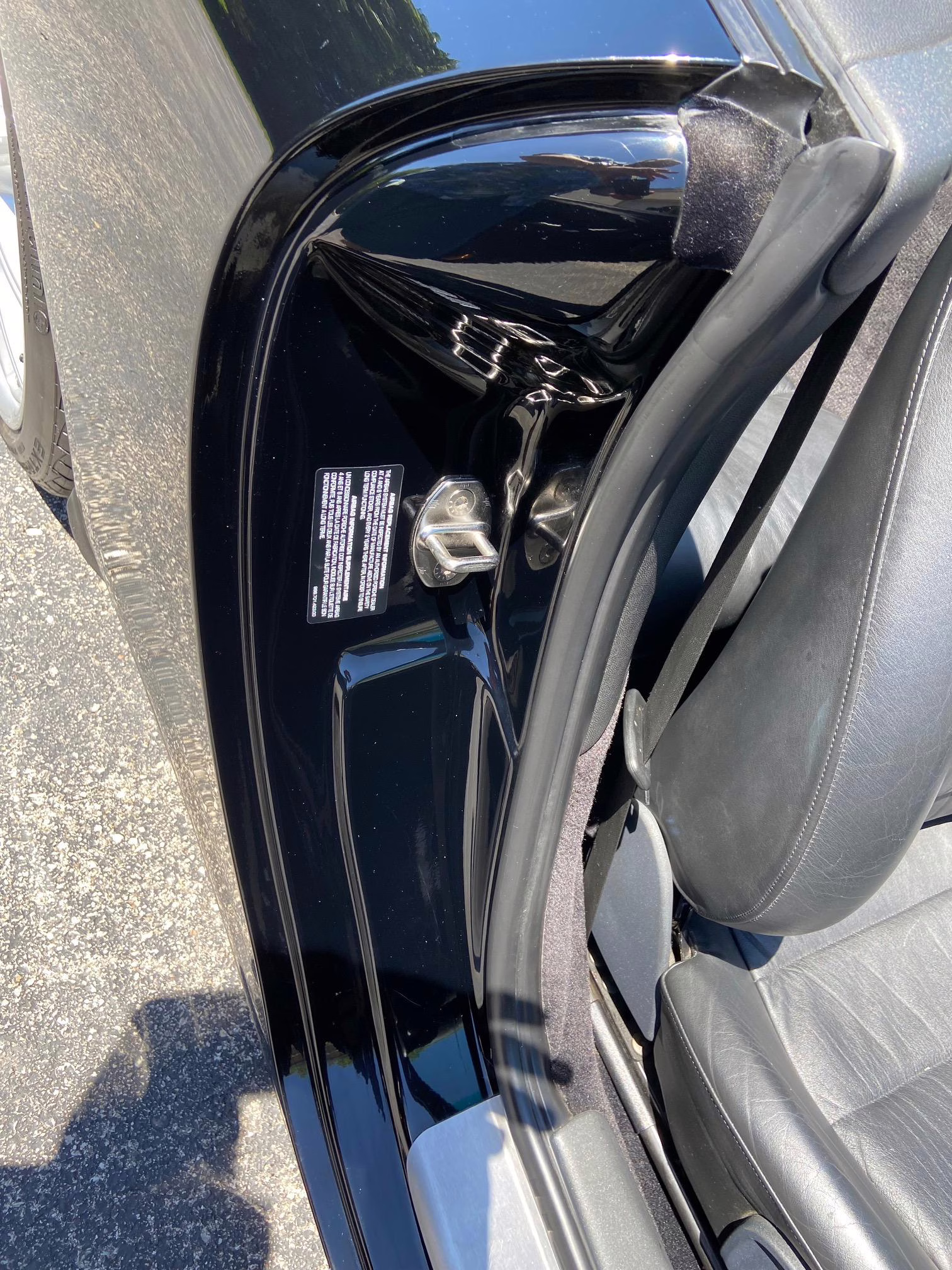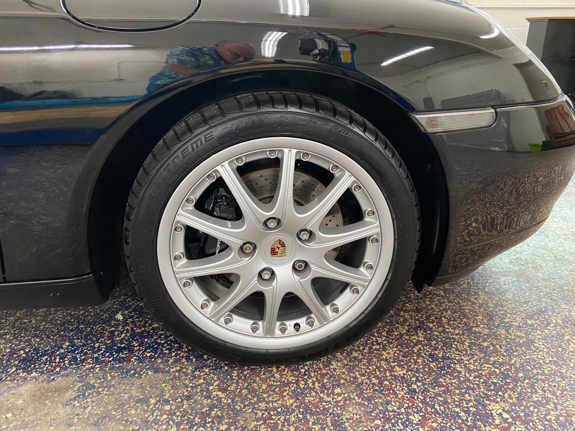 The former owner states that a scratch was touched up on the engine lid and that the wheels were refinished to address some curb rash.