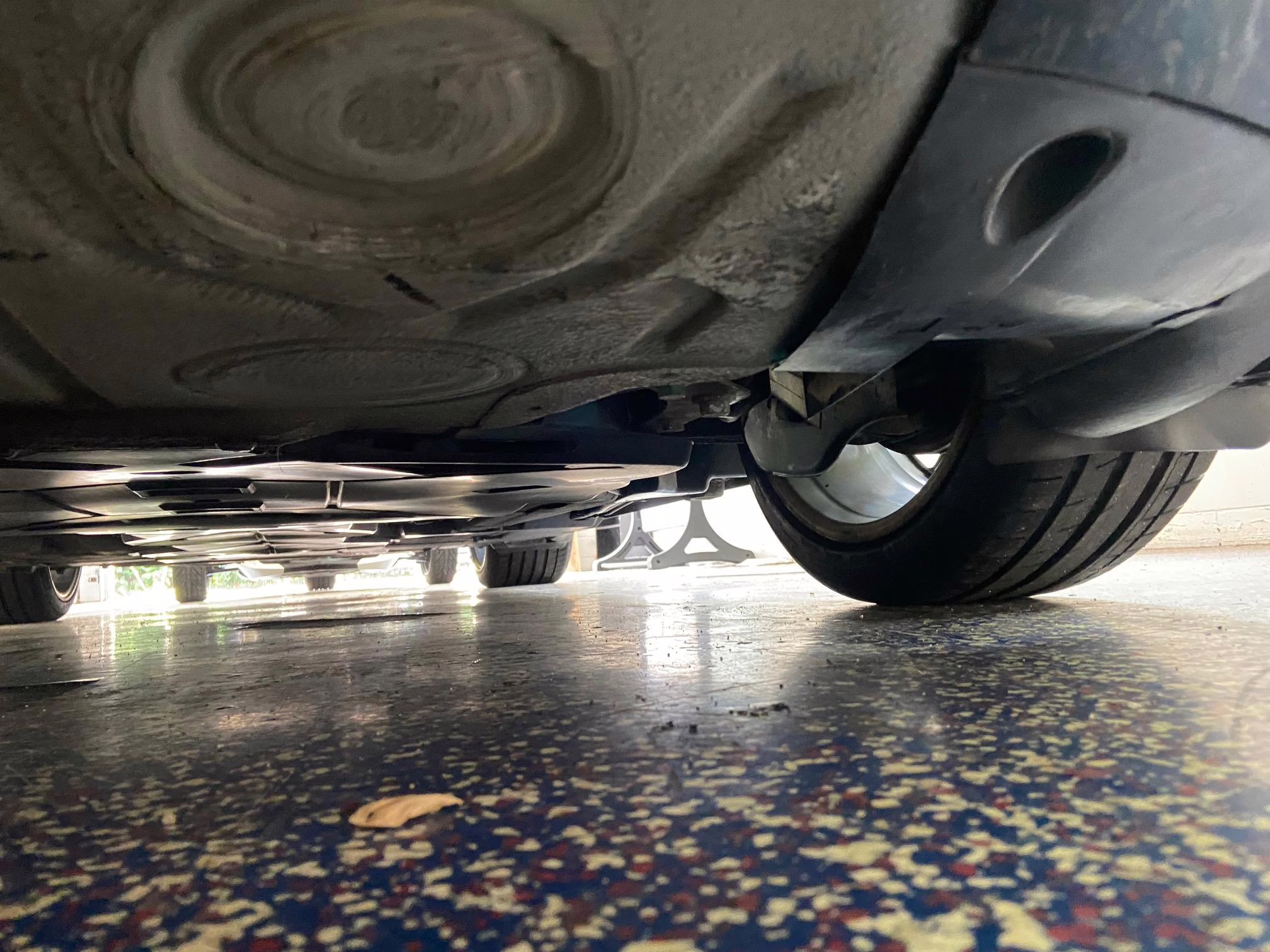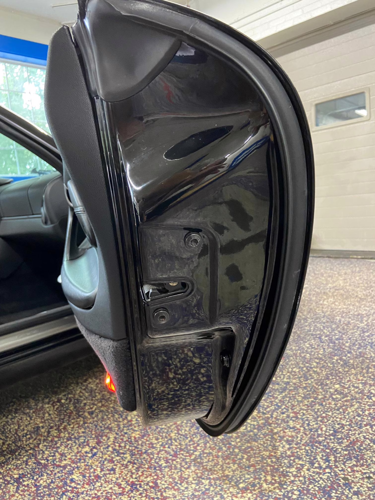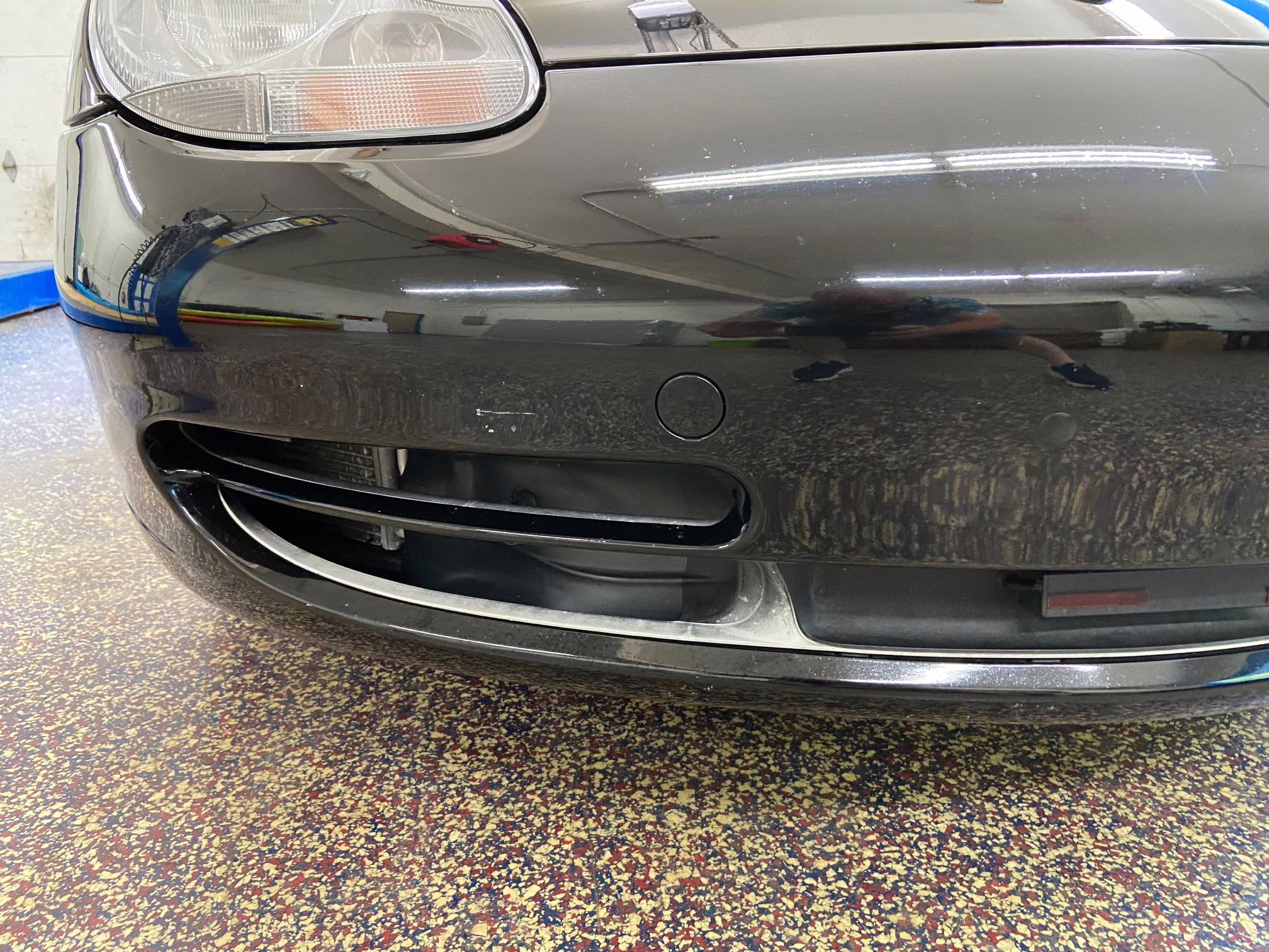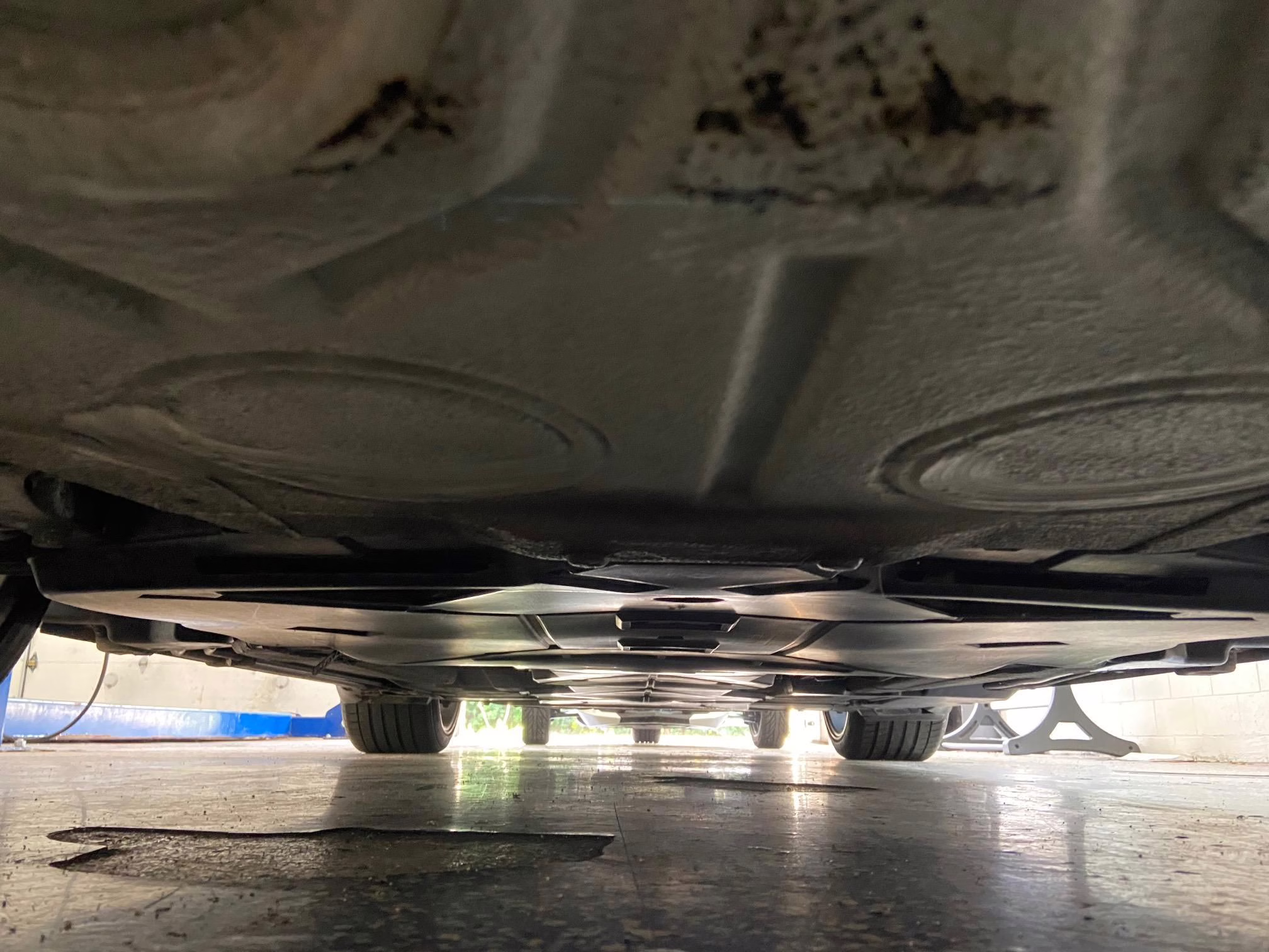 The former owner states that a scratch was touched up on the engine lid and that the wheels were refinished to address some curb rash.