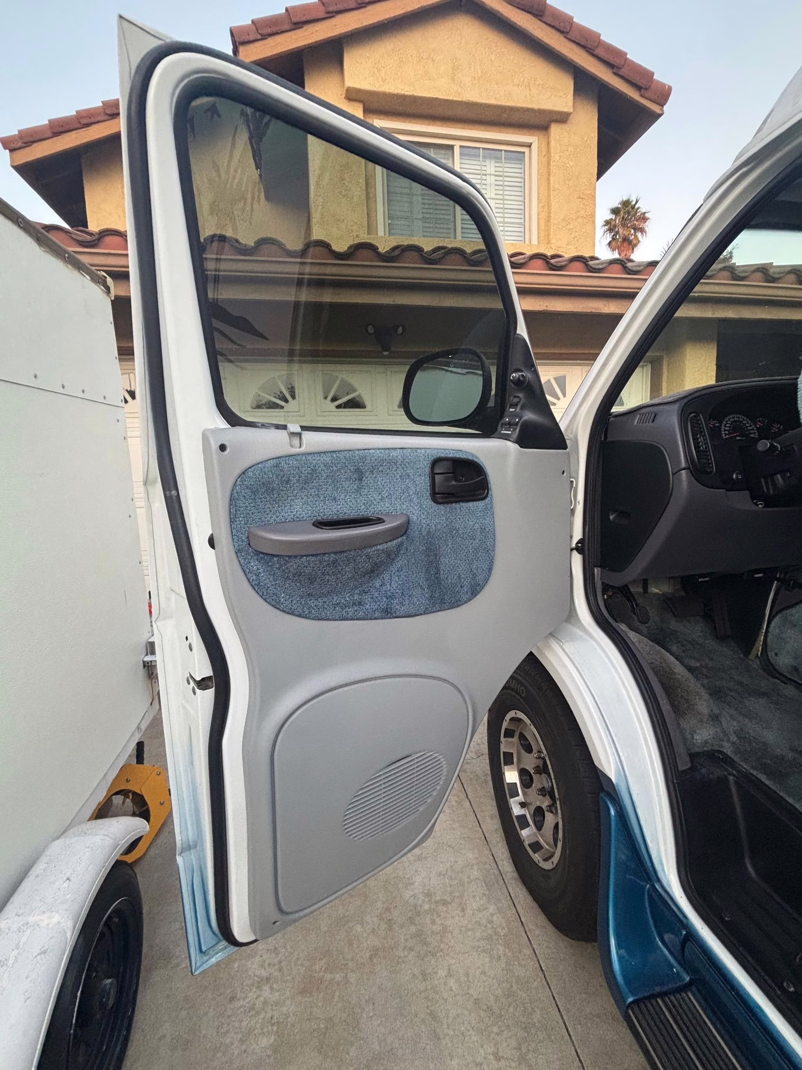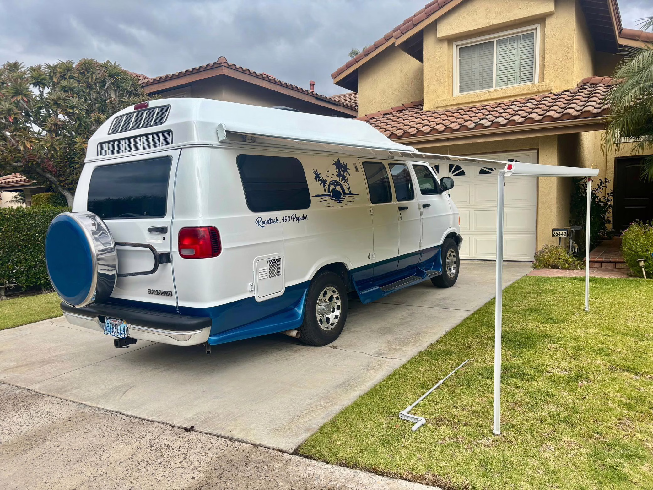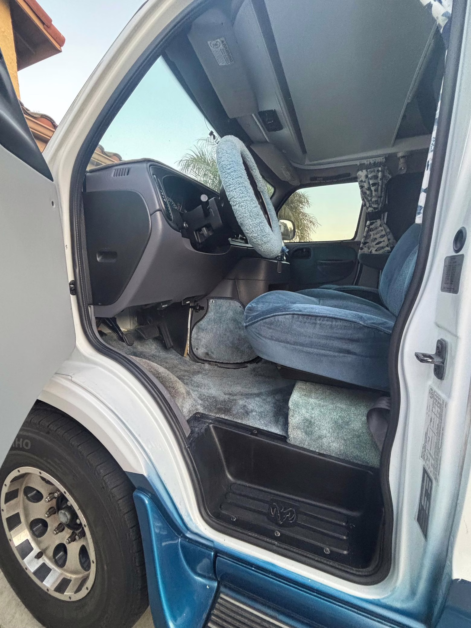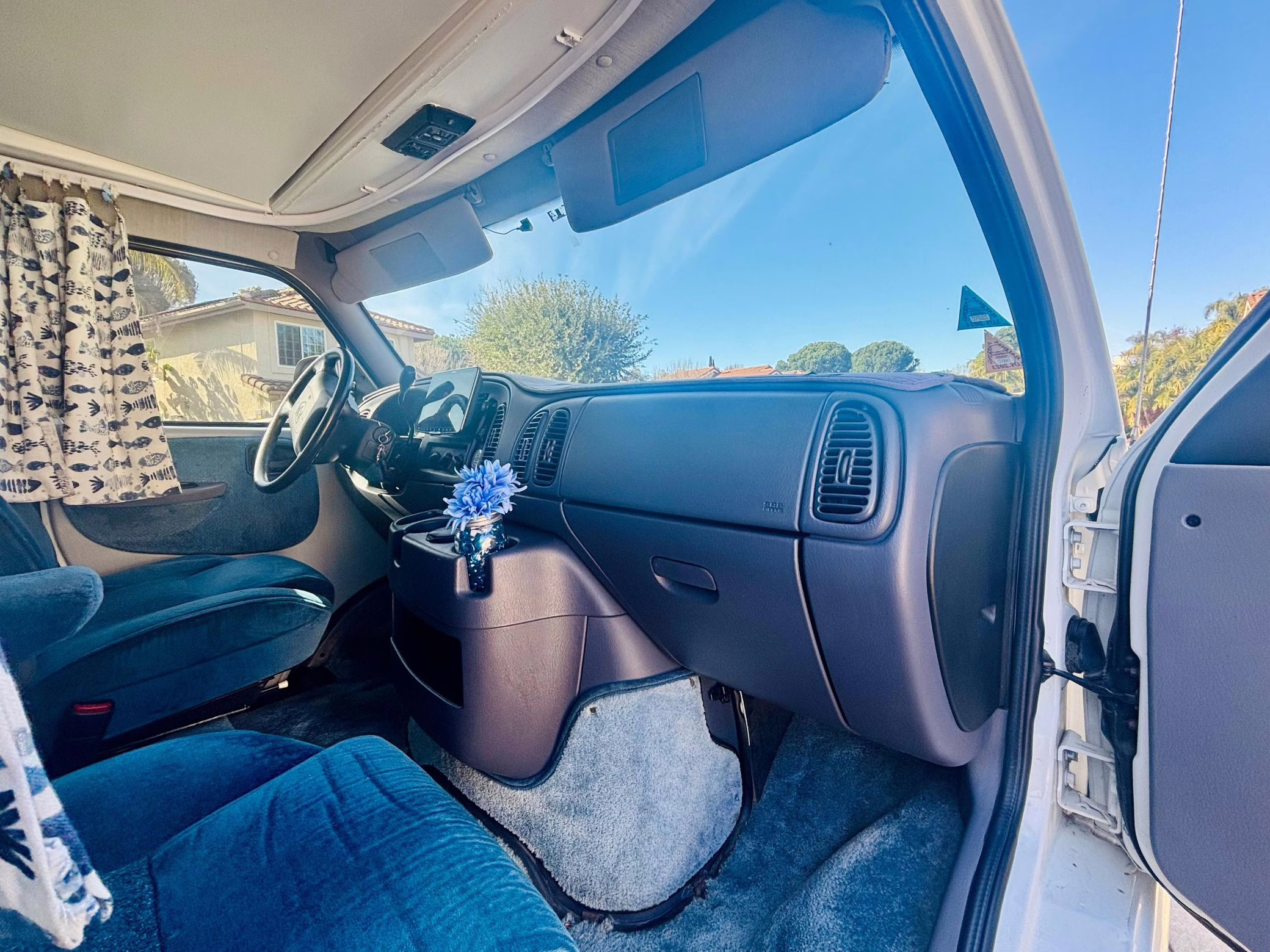 2000 Dodge Ram Van B3500, finished in white and blue with a white and blue interior.