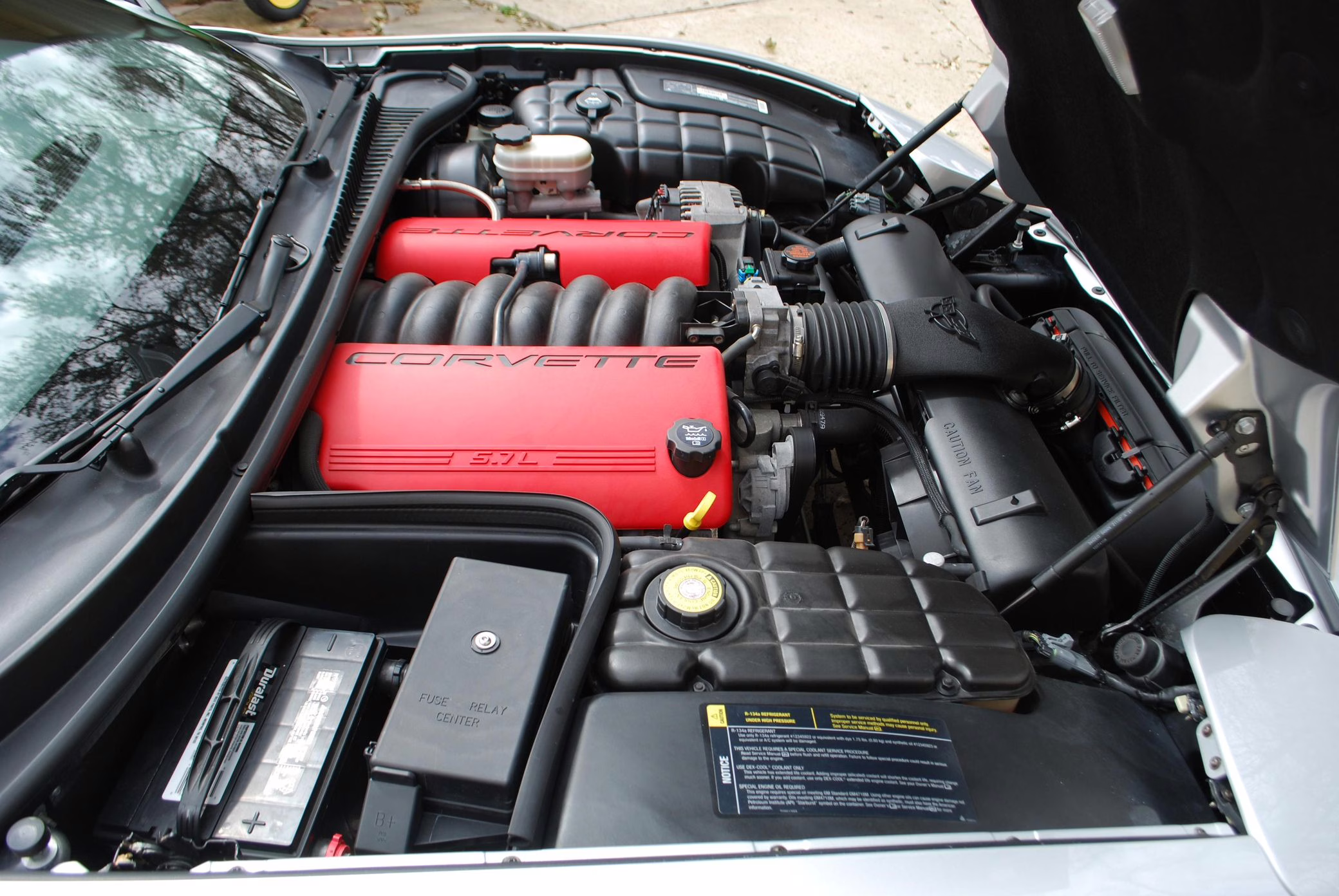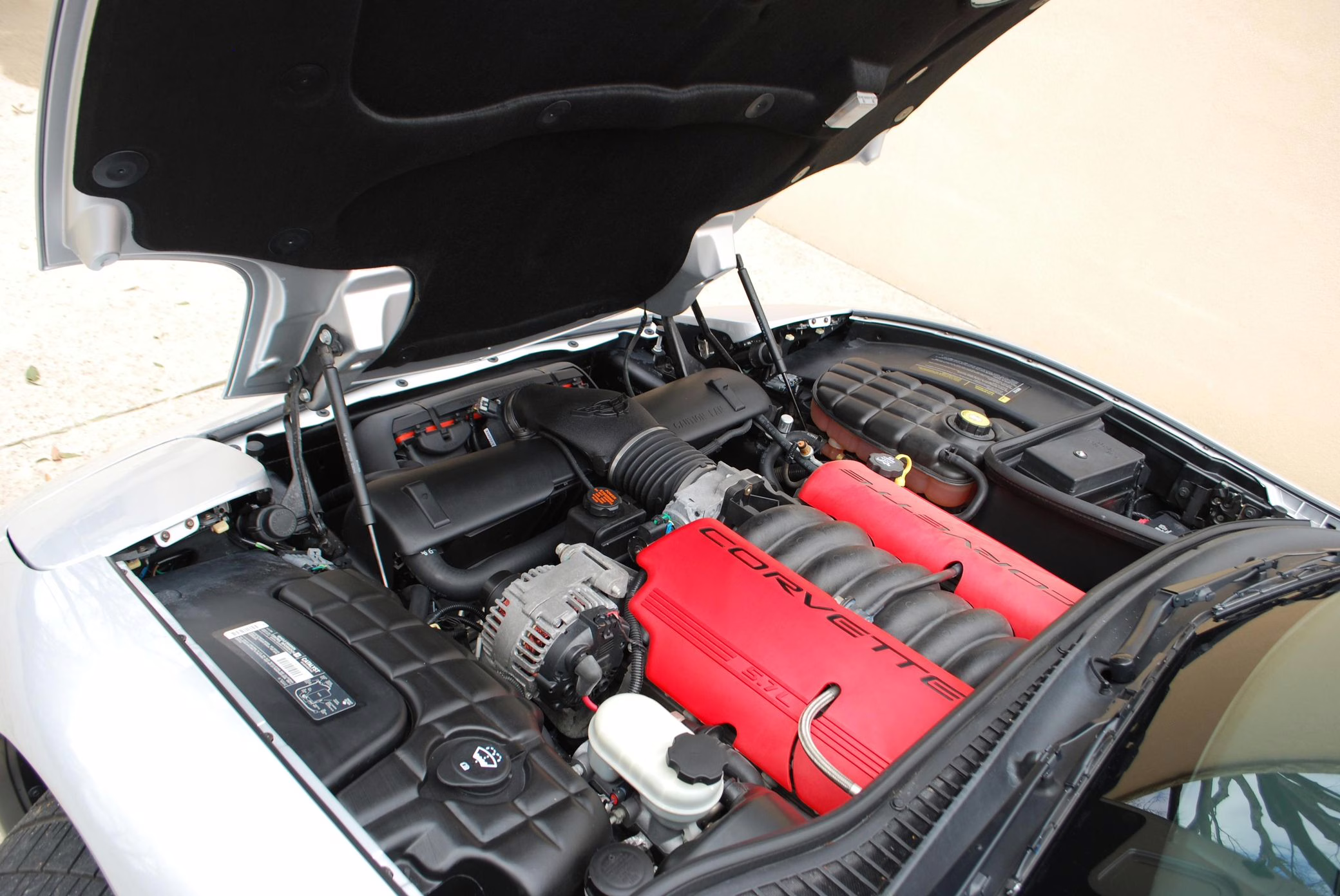 Power for this Z06 comes from an “LS6” 5.7-liter V8 engine, which produces 405 horsepower and 400 lb-ft of torque. It powers the rear wheels via a 6-speed manual transmission.