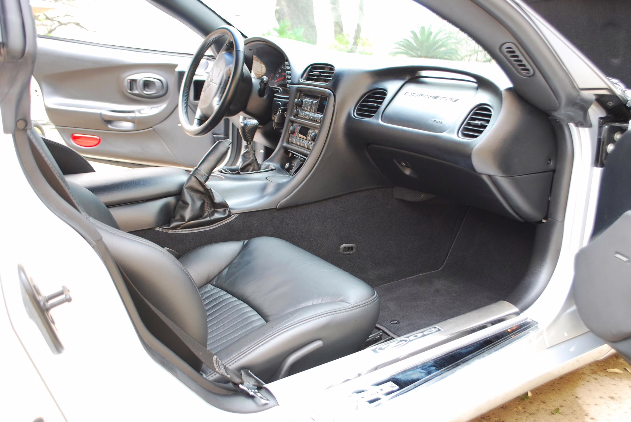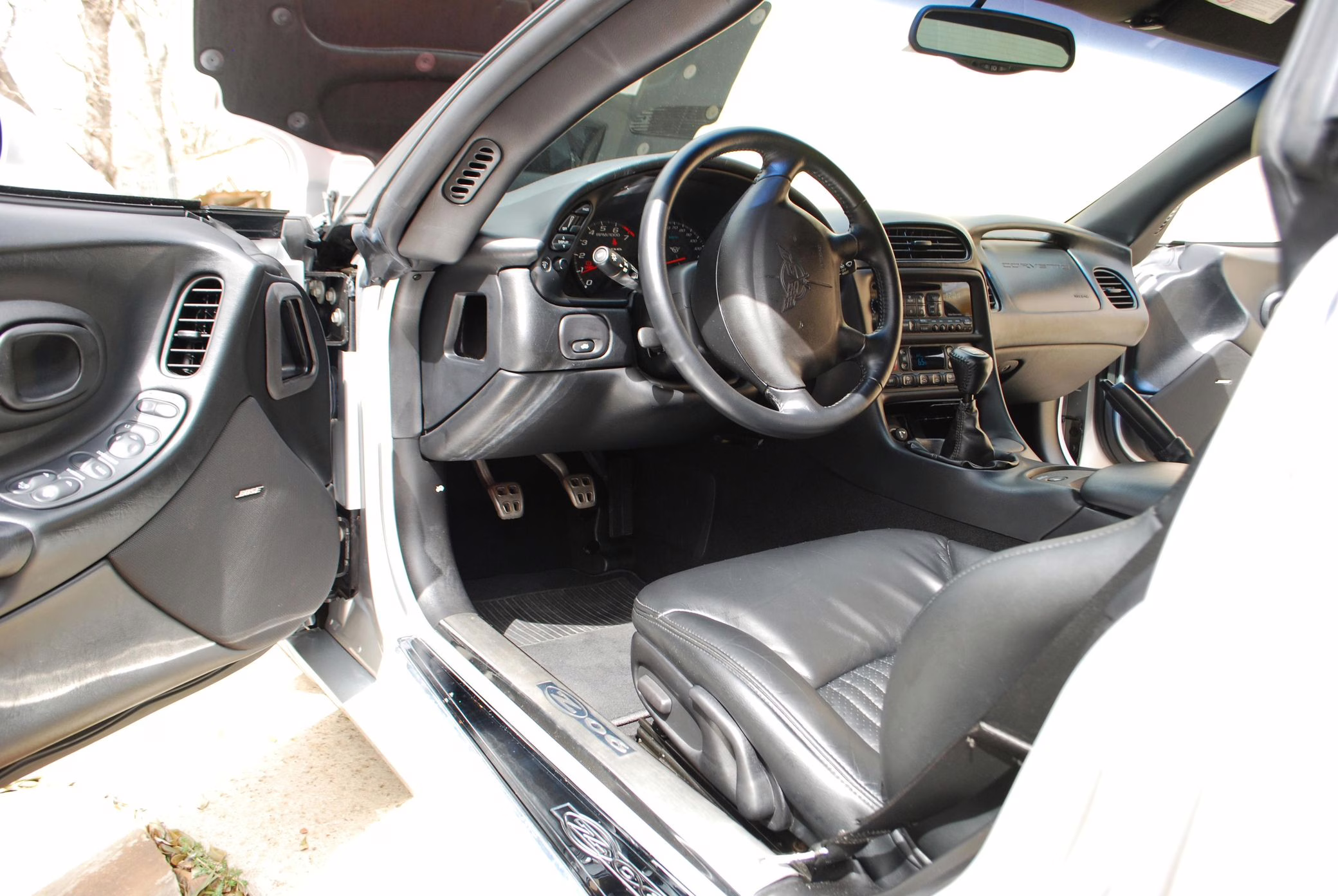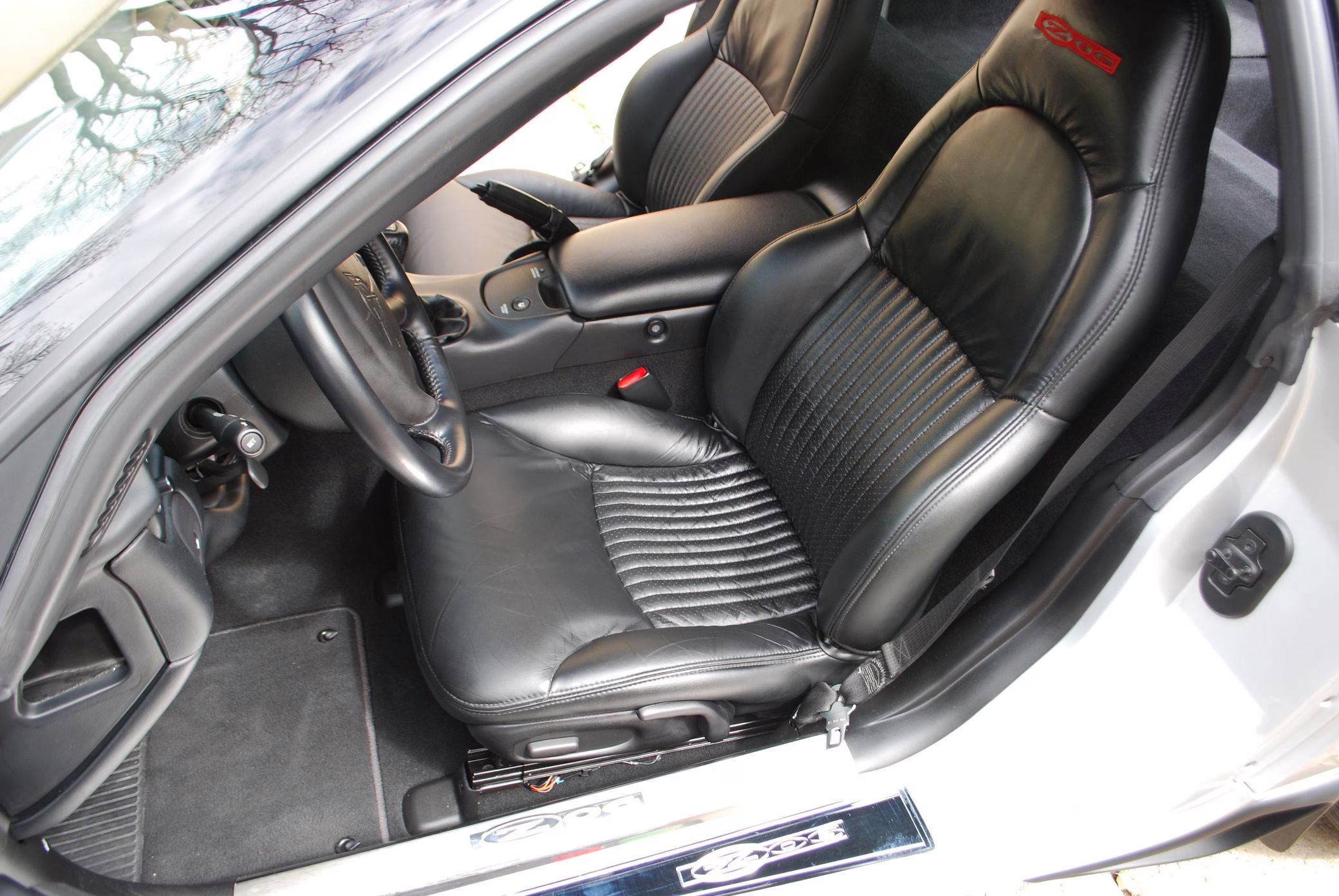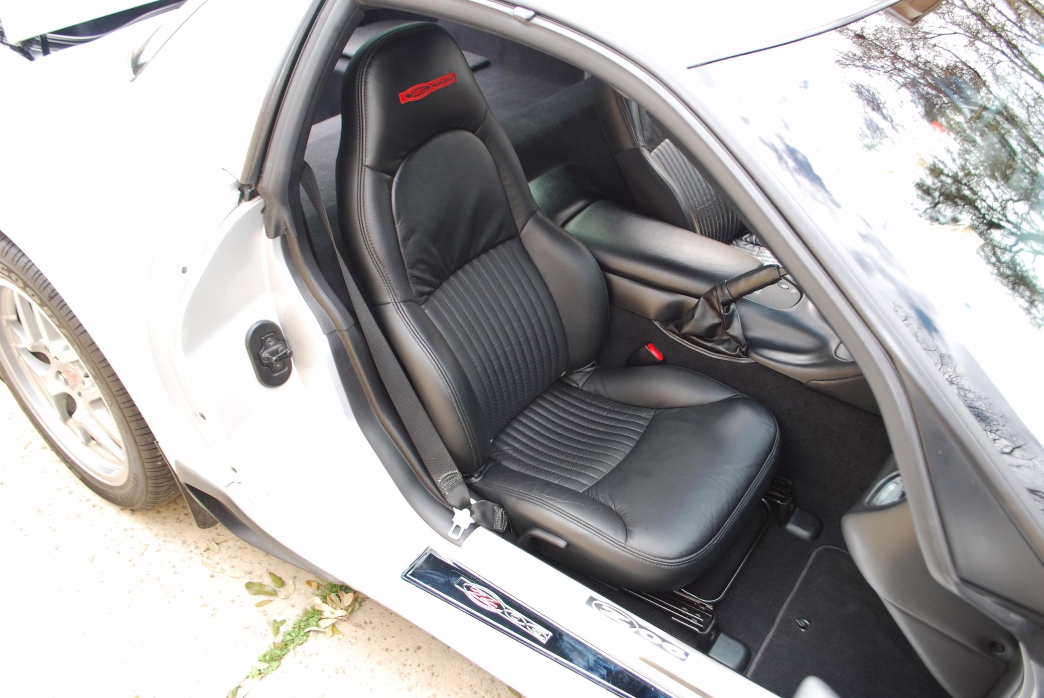 Modifications are limited to the addition of window tint, additional Z06 badging, and deer whistles mounted in the brake ducts. It’s also had a “CAGS defeat,” which disables the “skip-shift feature” that forces the driver to shift from first to fourth gear under certain conditions.