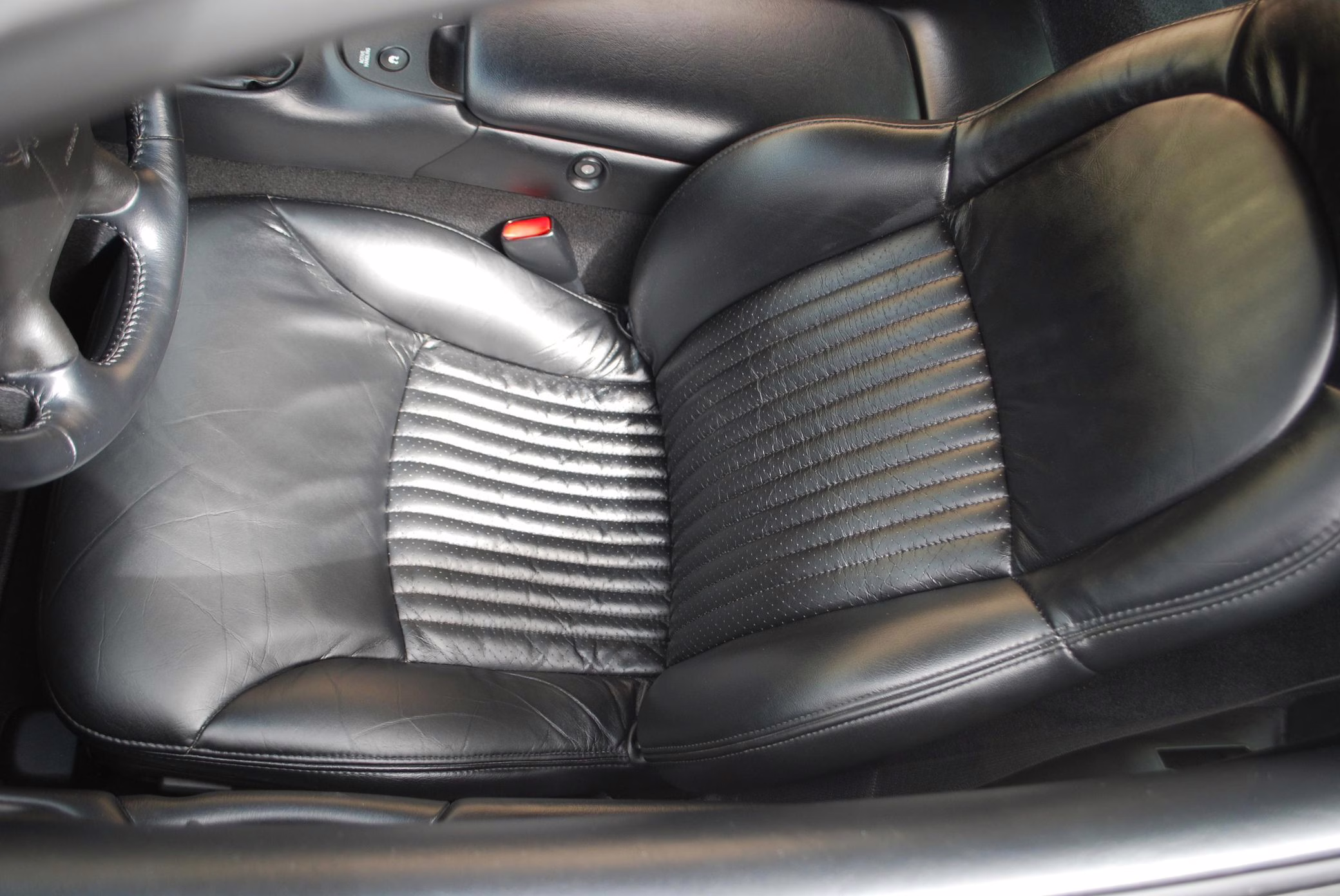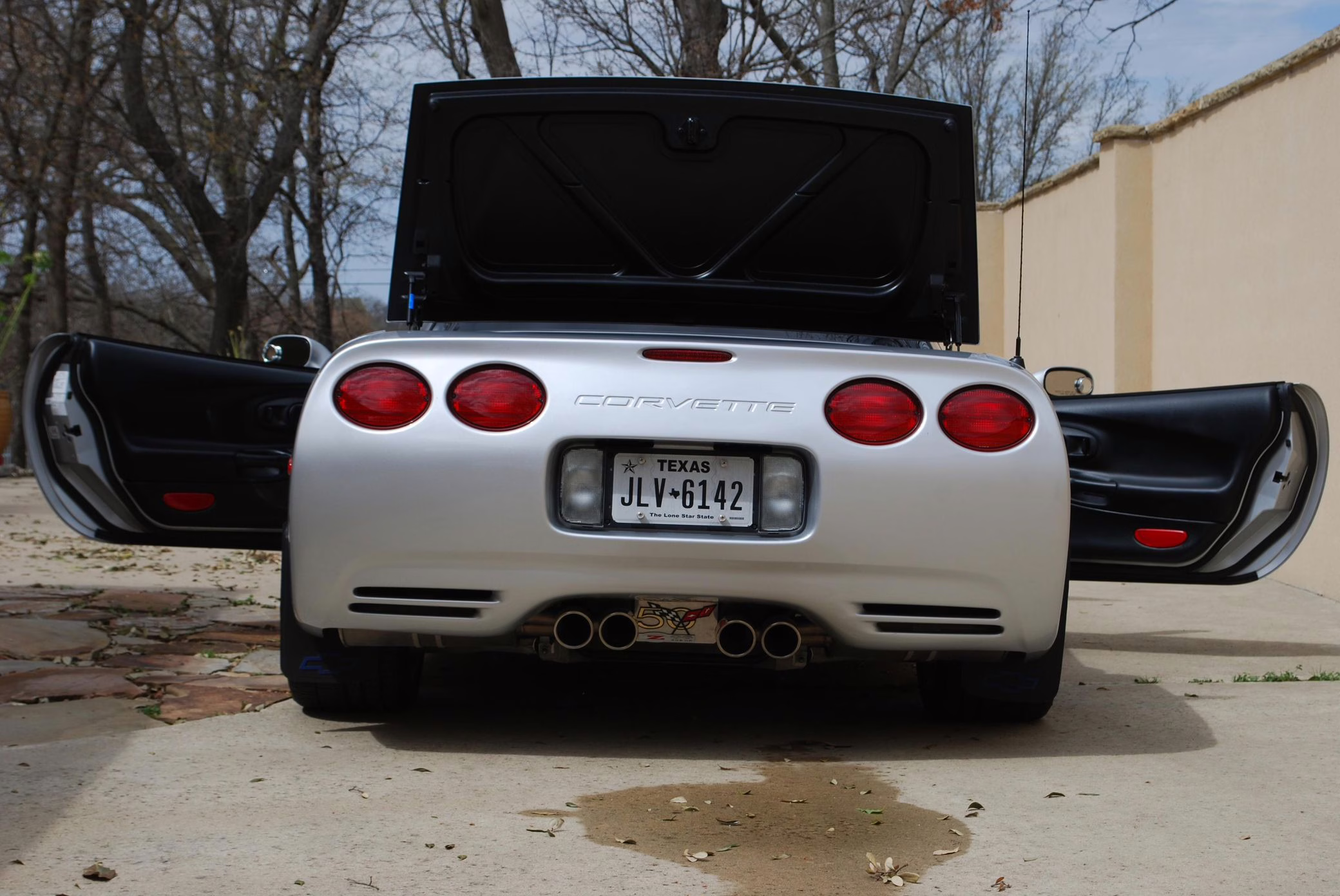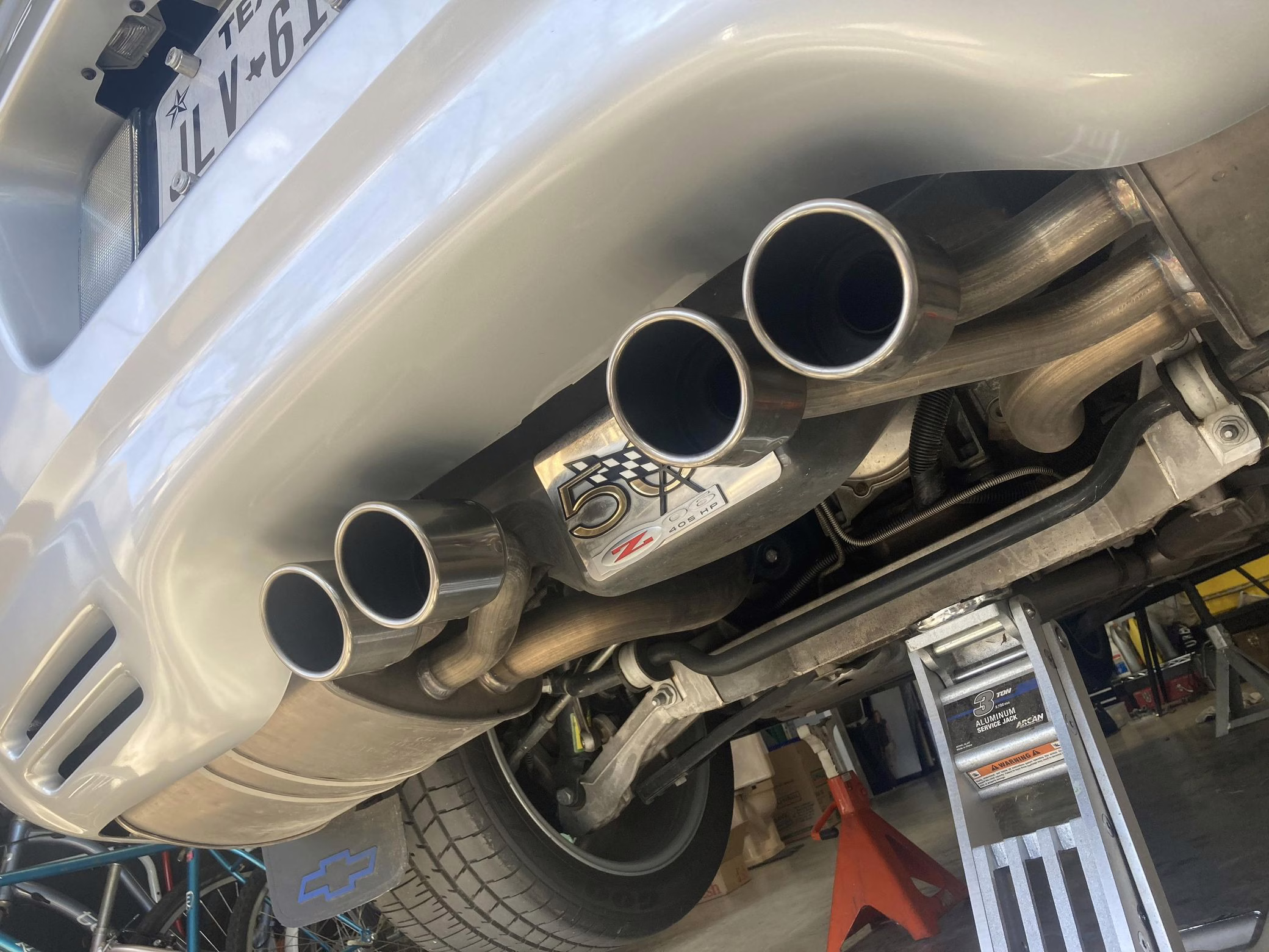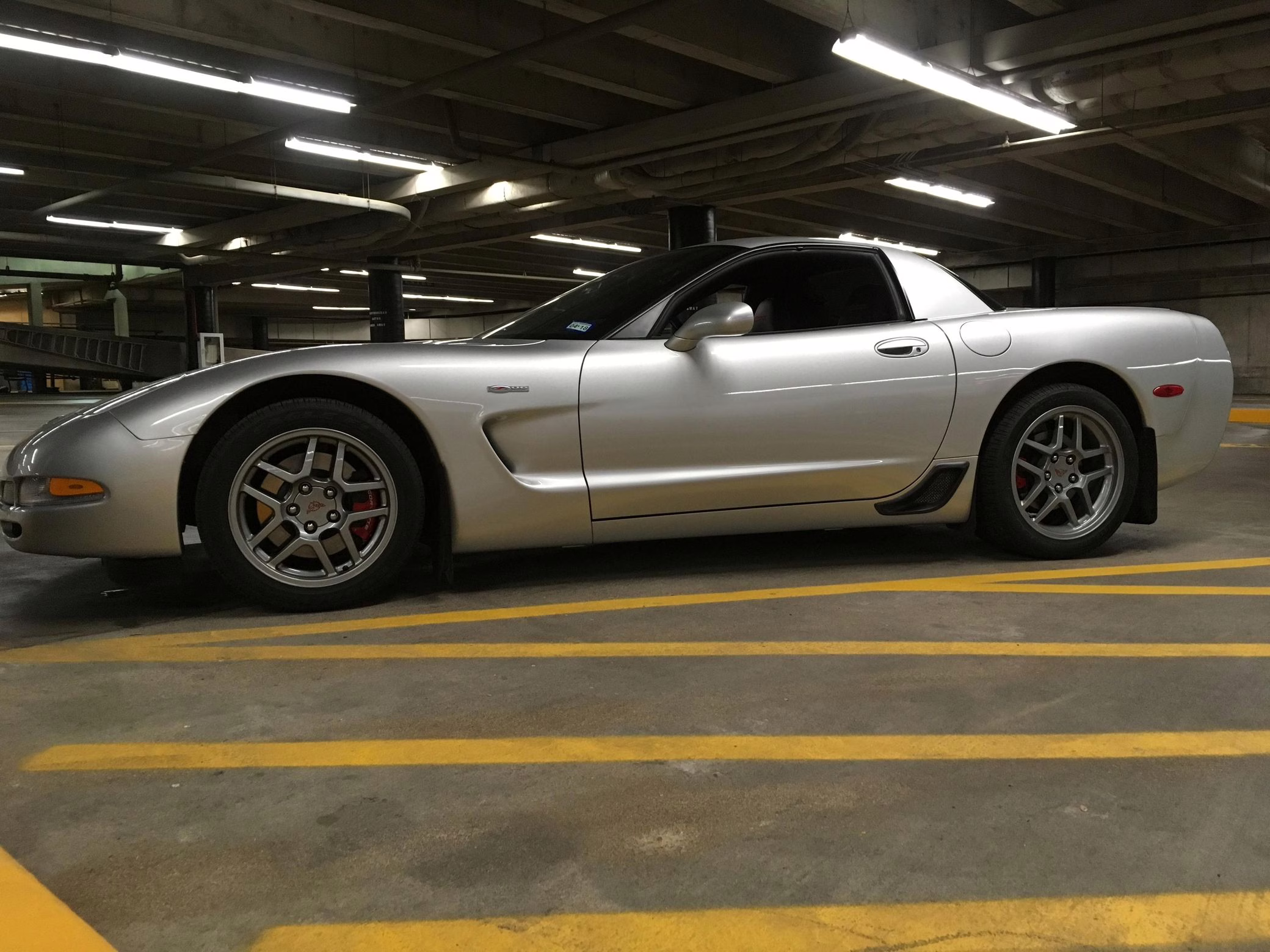 Modifications are limited to the addition of window tint, additional Z06 badging, and deer whistles mounted in the brake ducts. It’s also had a “CAGS defeat,” which disables the “skip-shift feature” that forces the driver to shift from first to fourth gear under certain conditions.