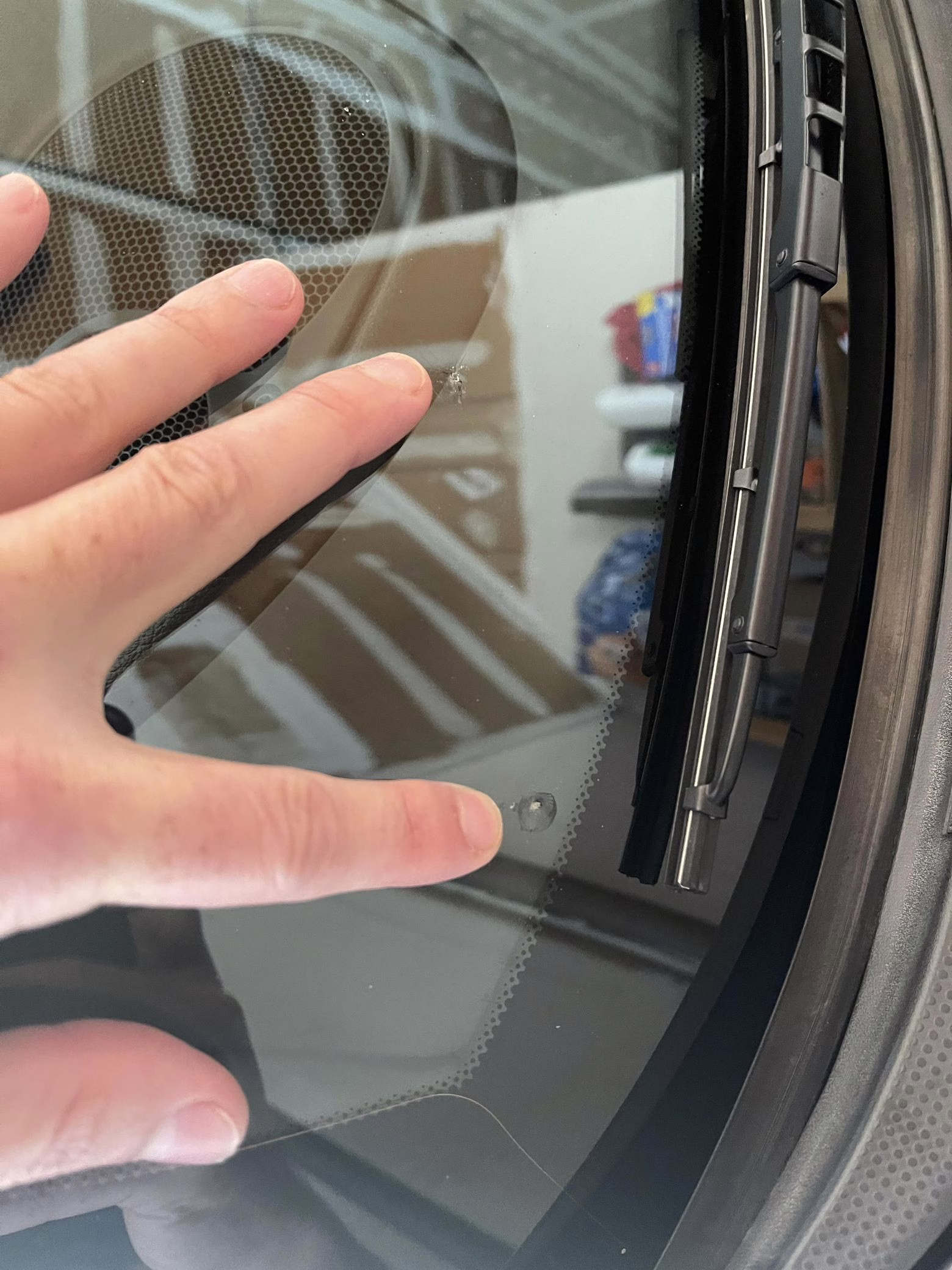 Chip and star in windshield on passenger’s side (pictured in the gallery)