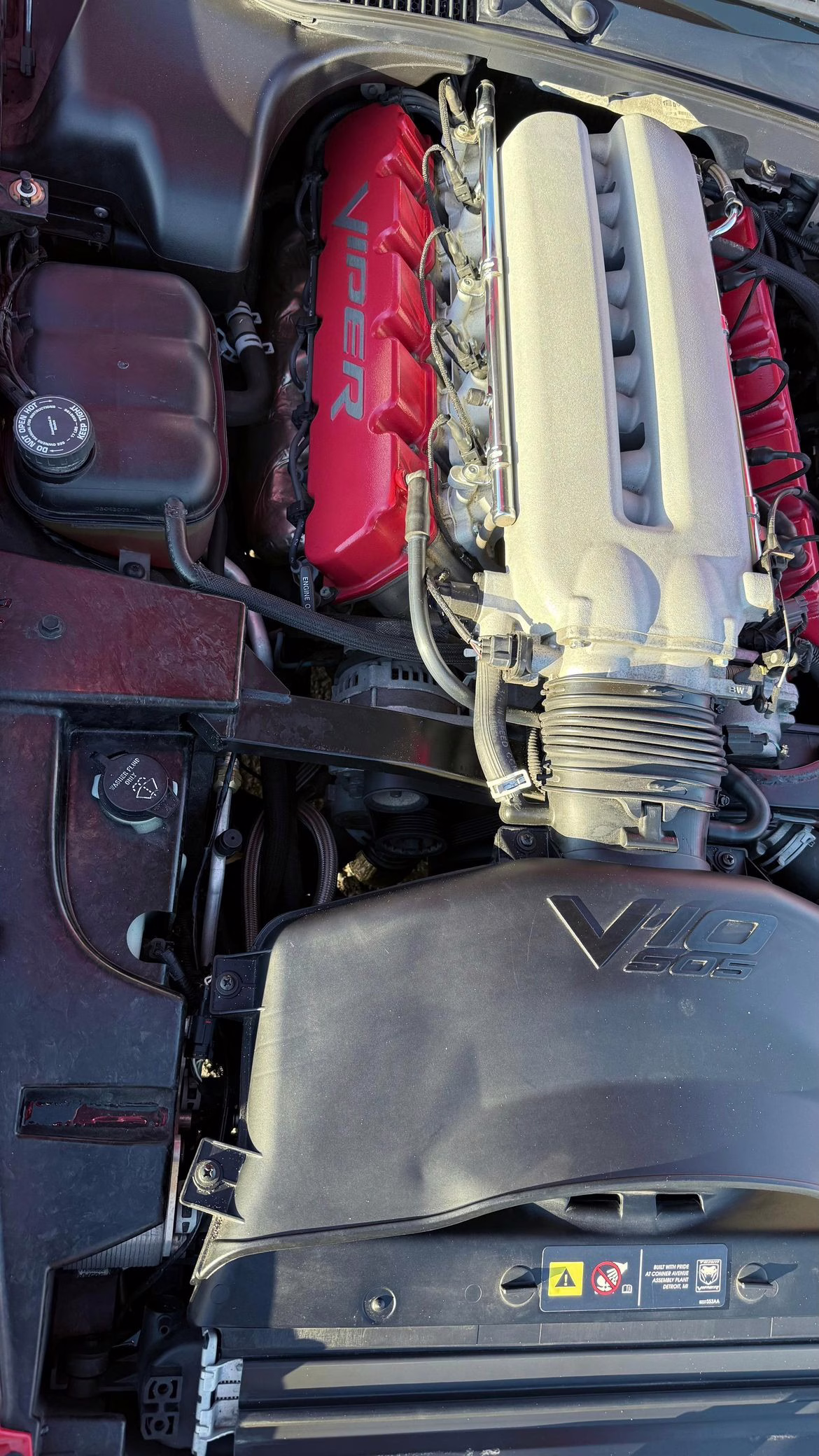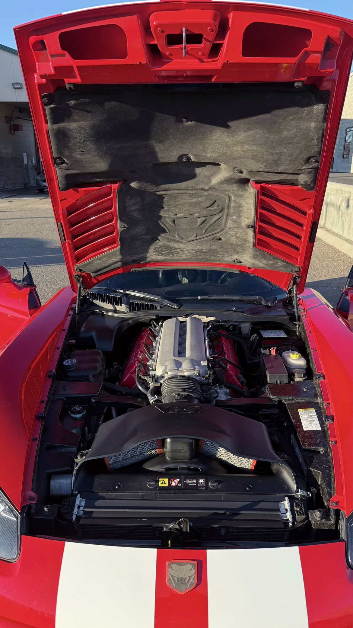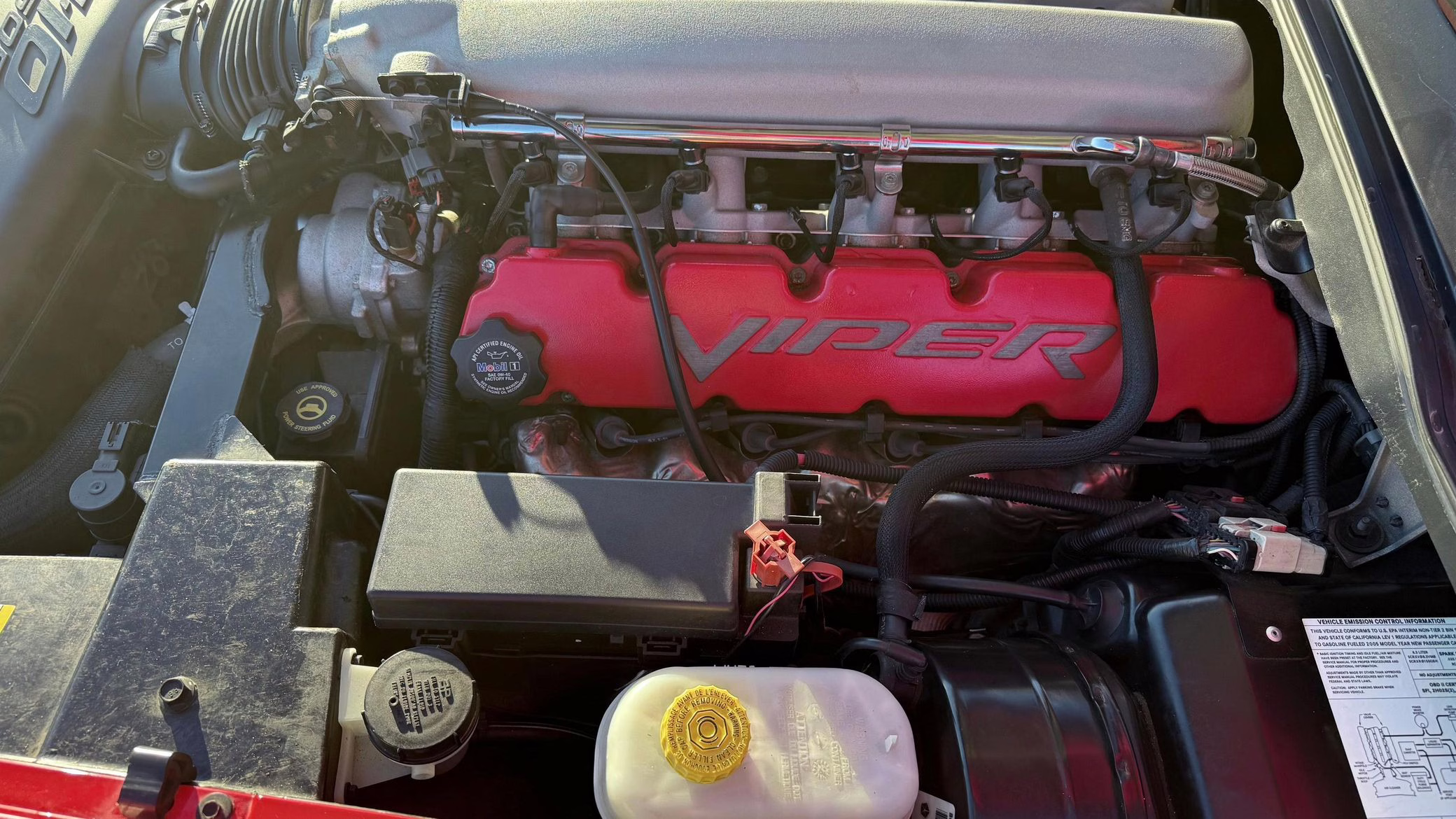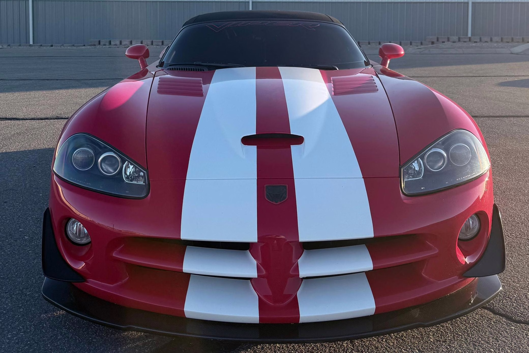 The third-generation Dodge Viper is a thrilling sports car, offering a monstrous 8.3-liter V10, a mandatory 6-speed manual transmission, and aggressive styling. This particular Viper touts relatively low mileage and some nice factory equipment, like dual side exhaust, leather and suede upholstery, and air conditioning. It also boasts a few tasteful upgrades, including a carbon fiber front lip and white vinyl racing stripes.