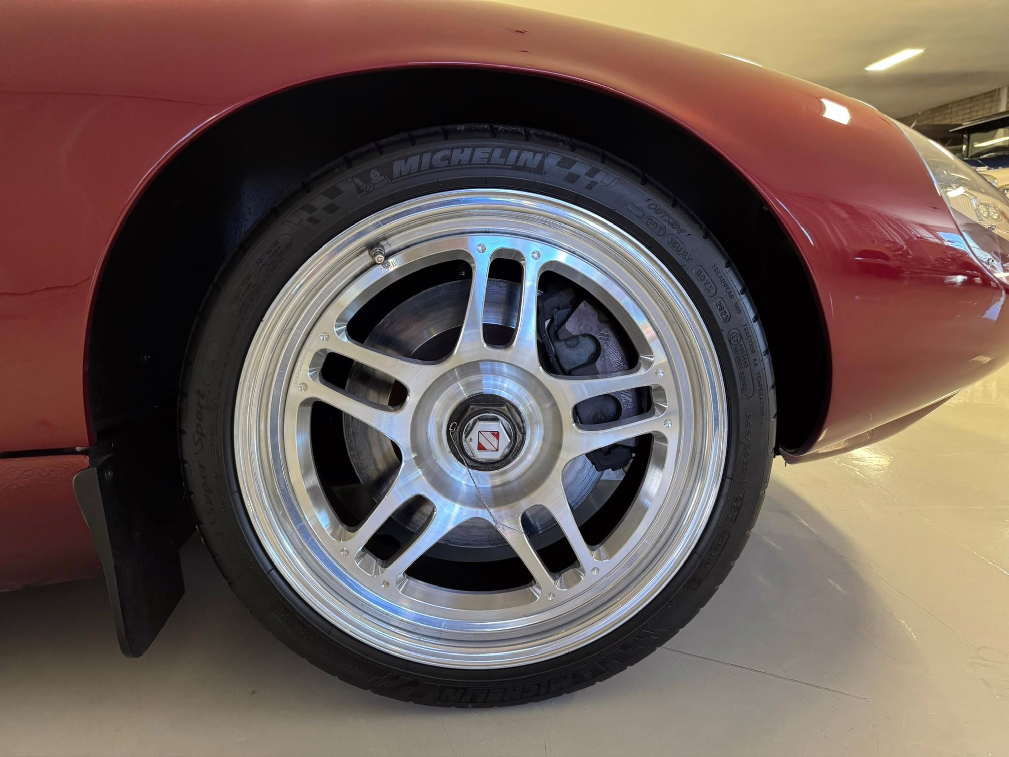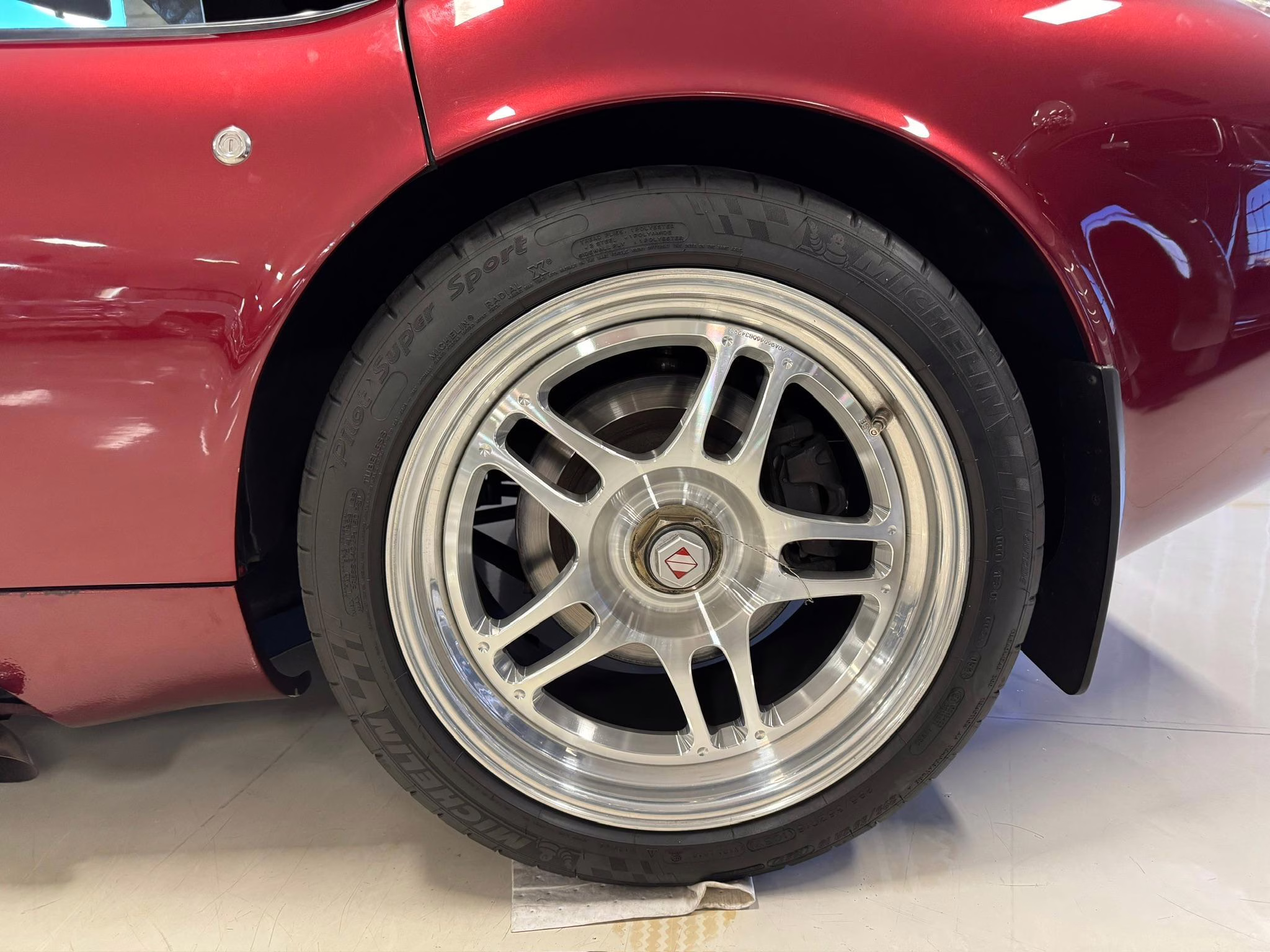 The Superformance Daytona Coupe is a thrilling sports car, boasting an analog driving character, beautiful classic styling, and a big and burly V8 – a revived classic in all the right ways. This particular Daytona Coupe is fitted with a 427-cubic-inch Windsor V8 paired with a 6-speed manual transmission. It also boasts a few desirable BRE upgrades, including a rear window, headlights and driving lights, and a set of 18-inch wheels. Plus, it’s finished in gorgeous Sunset Red, and it shows just 2,800 miles from new, further adding to the appeal.