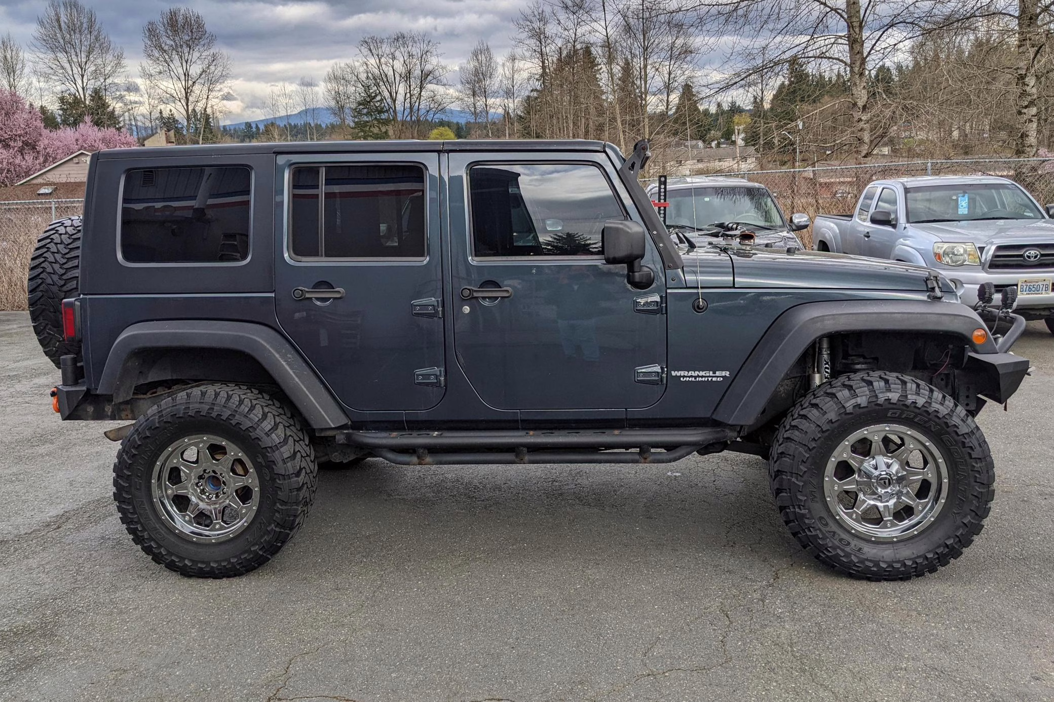 2008 Jeep Wrangler Unlimited X 4×4, finished in Steel Blue Metallic with a black hardtop and a Medium Slate Gray interior.