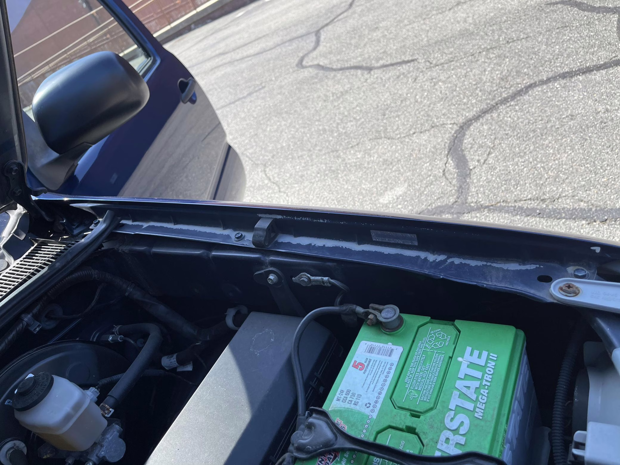 Peeling paint on the inside of the fenders (visible in the engine bay)