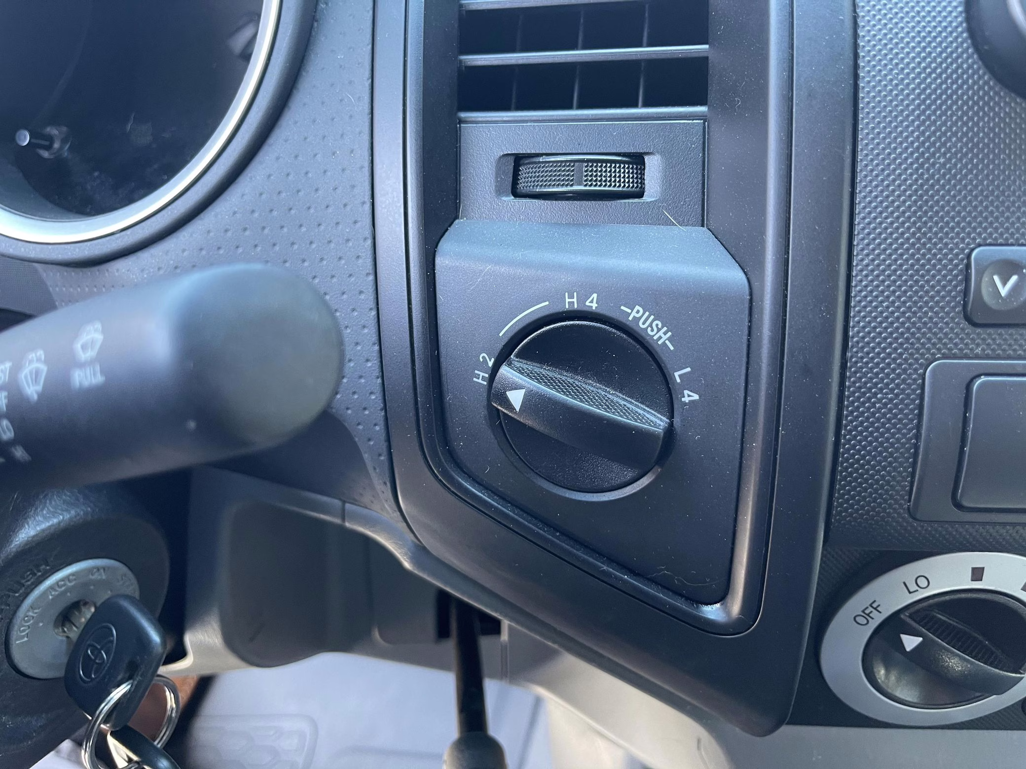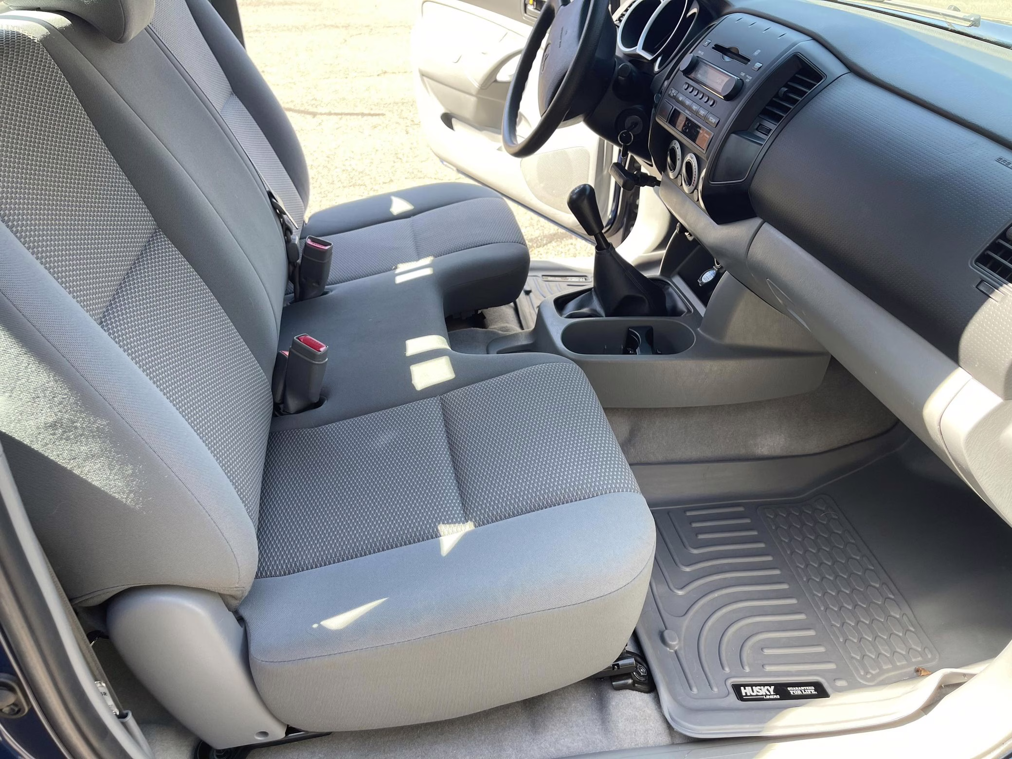 This Tacoma features a desirable 5-speed manual transmission, and its digital odometer shows approximately 33,500 miles.