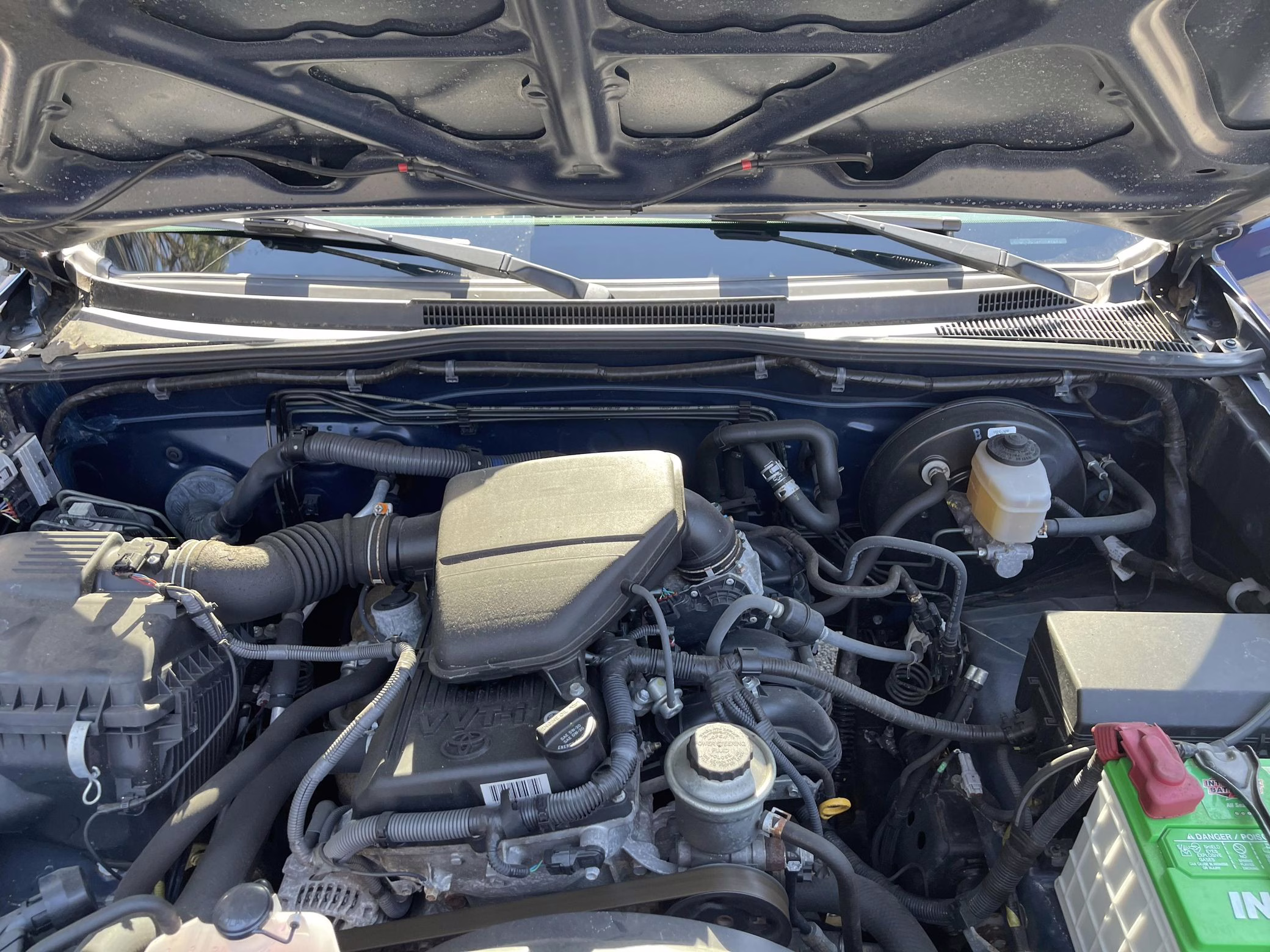 Factory equipment on this Tacoma includes 16-inch steel wheels, cloth upholstery, an AM/FM/CD stereo, air conditioning, and more as detailed below. Modifications are limited to the installation of an OEM front skid plate and aftermarket trailer hitch.