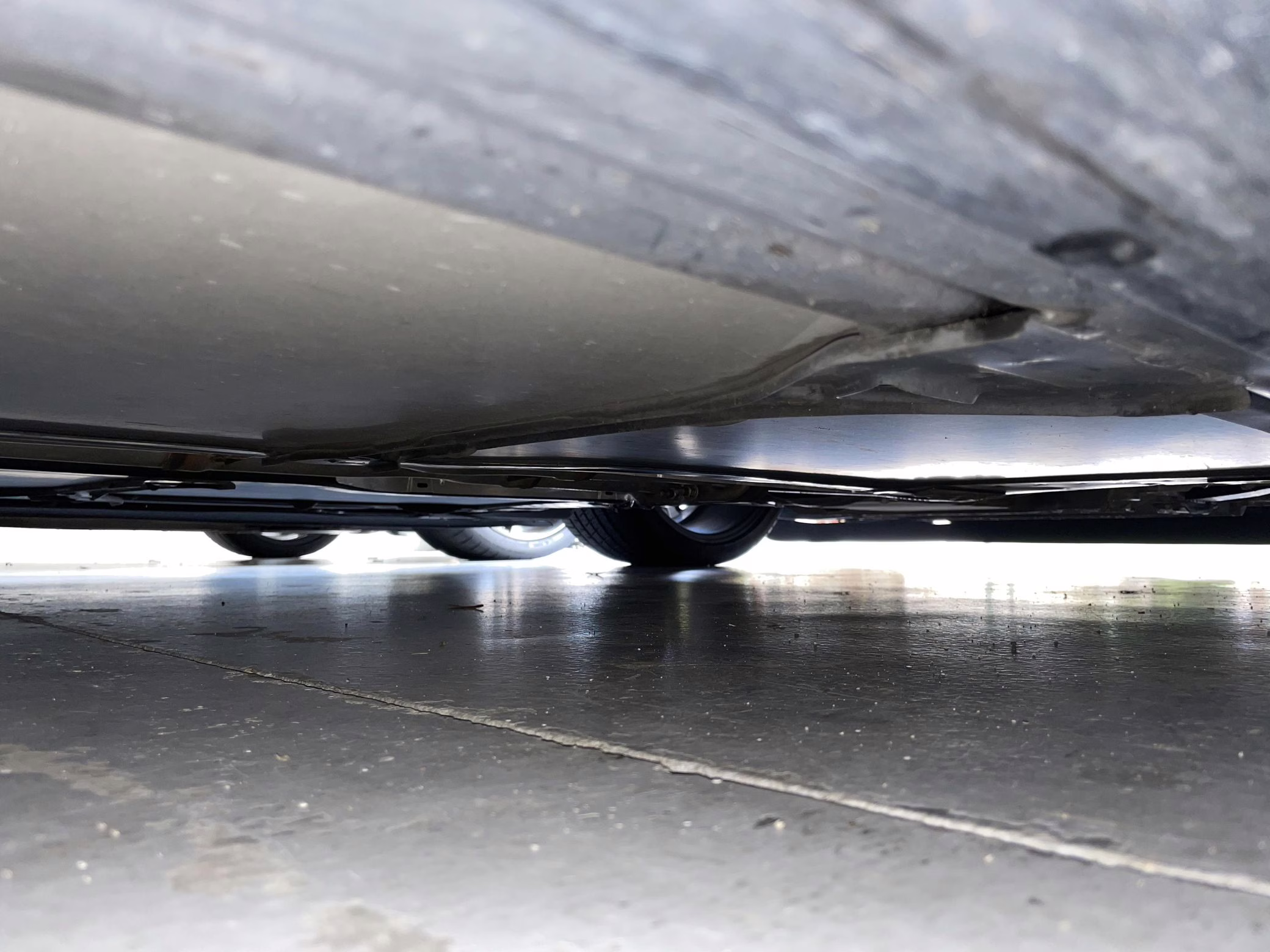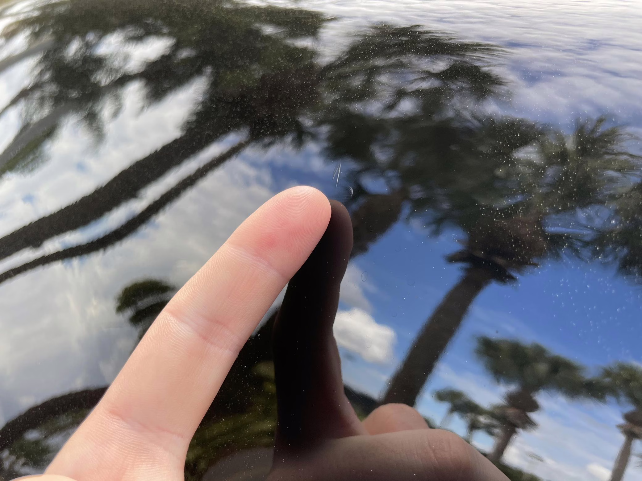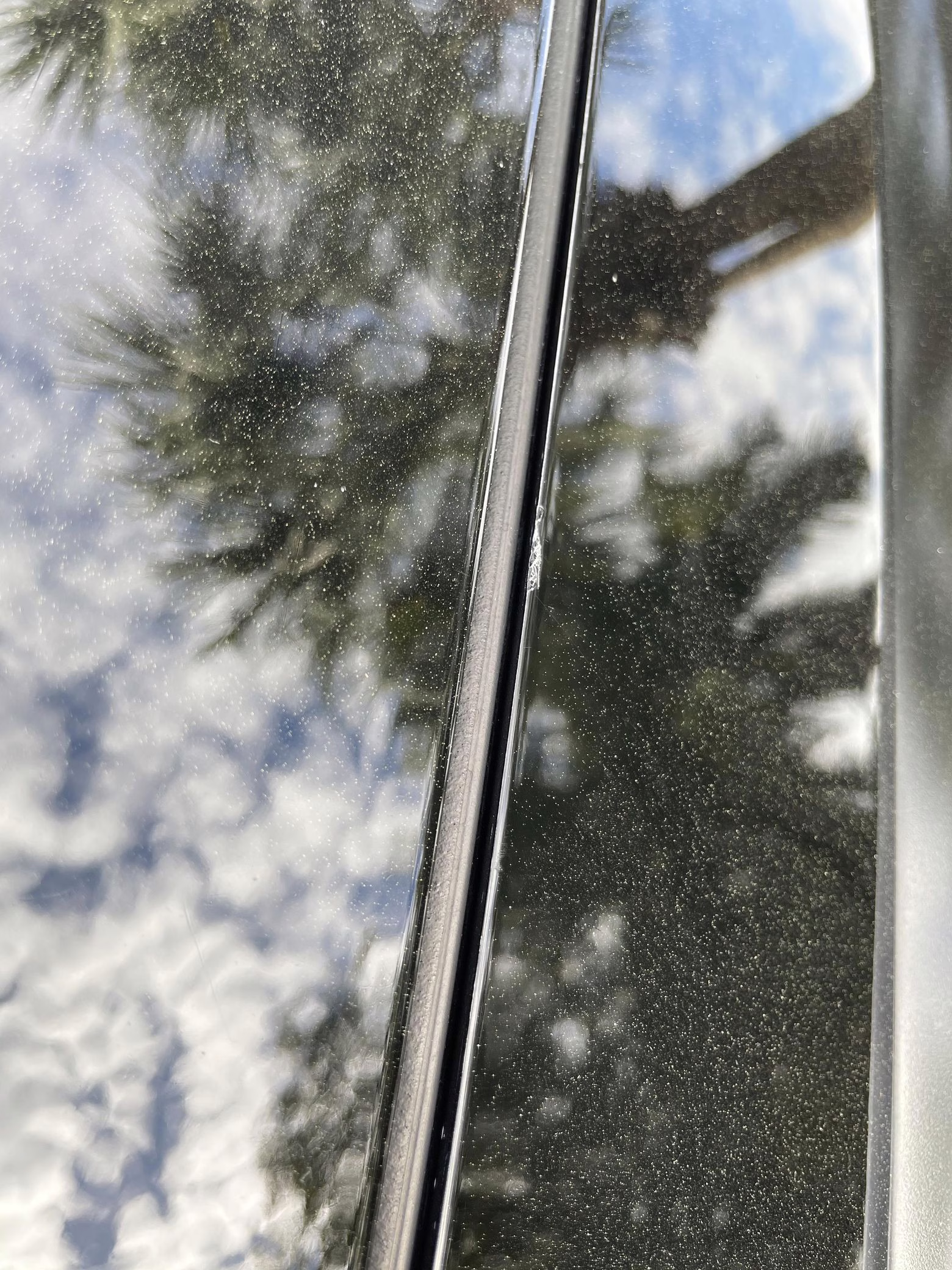 Scratch on passenger-side rear quarter panel, near rear spoiler, and on transparent roof panel