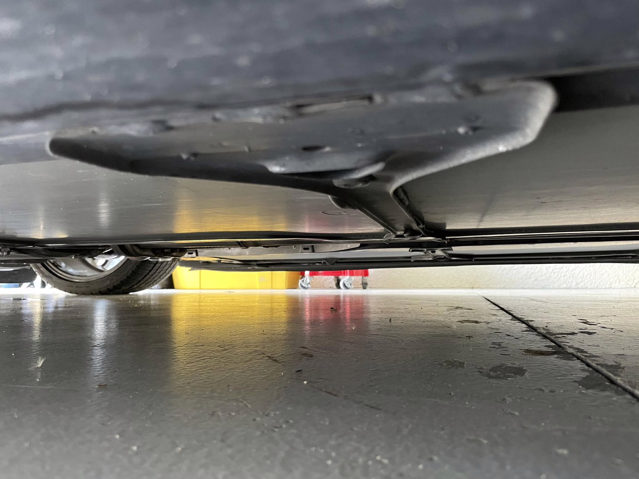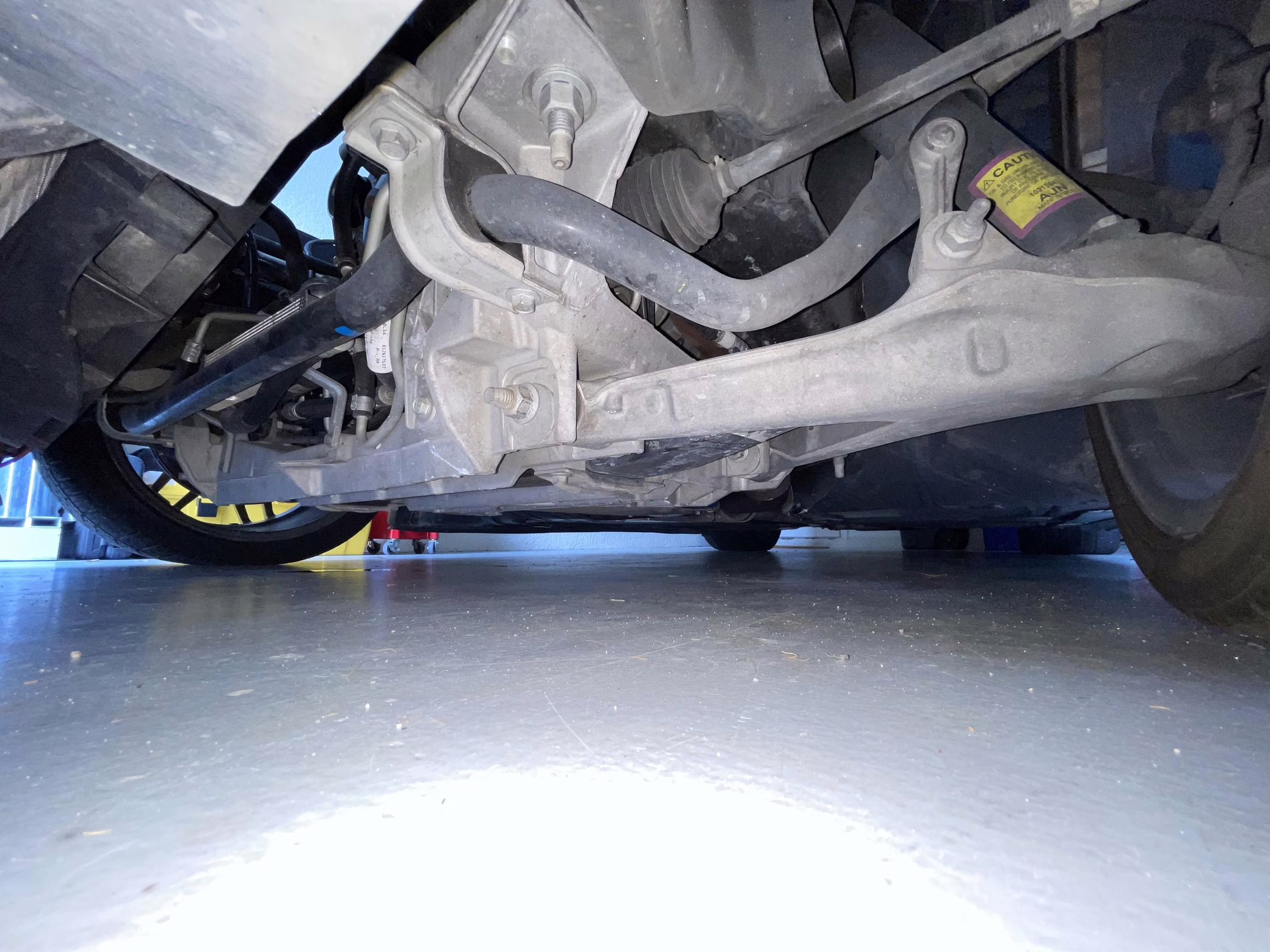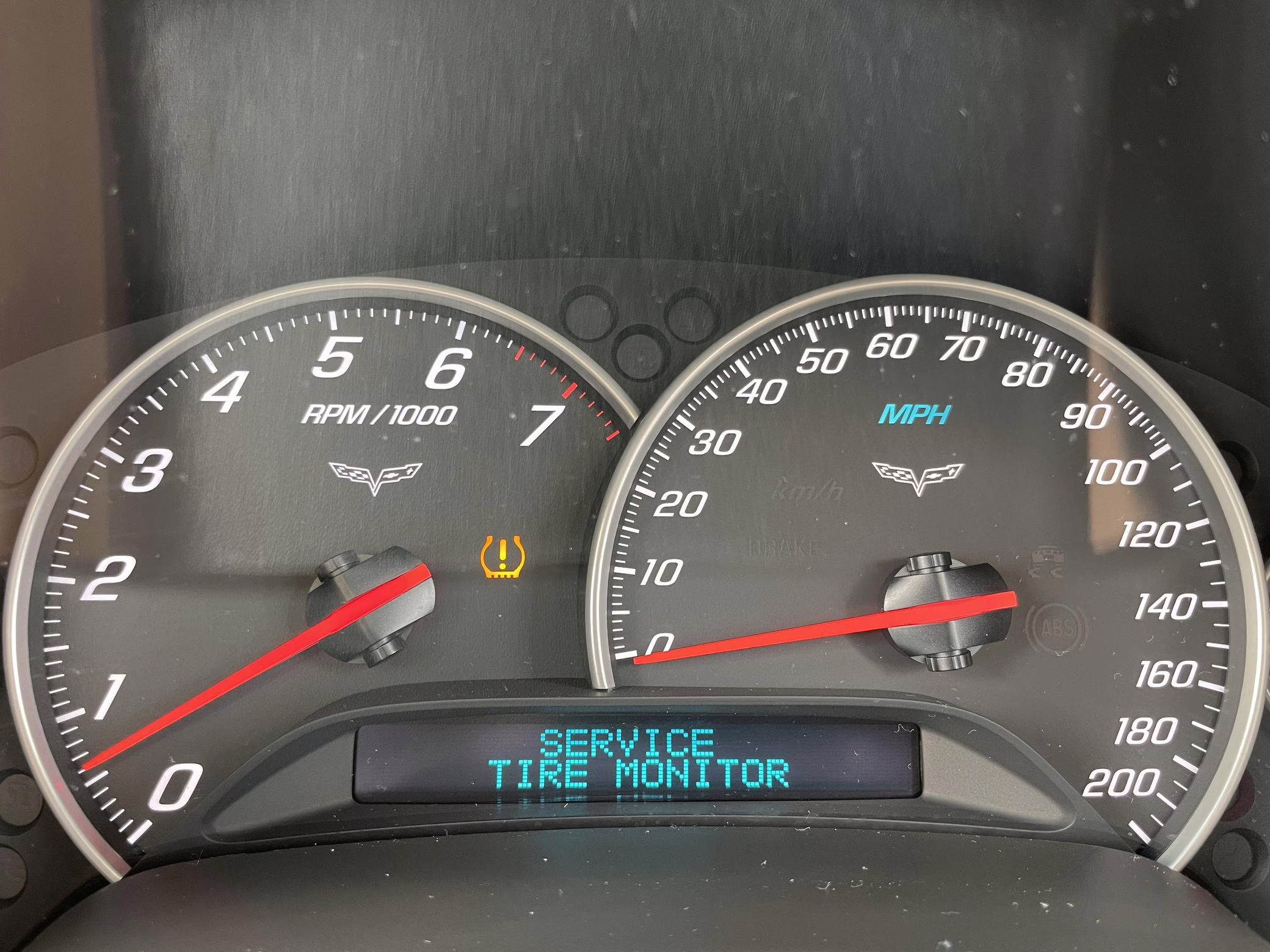 TPMS warning light on dash; the seller states that this is due to the tire pressure sensors on the aftermarket wheels having not been synced to the car.