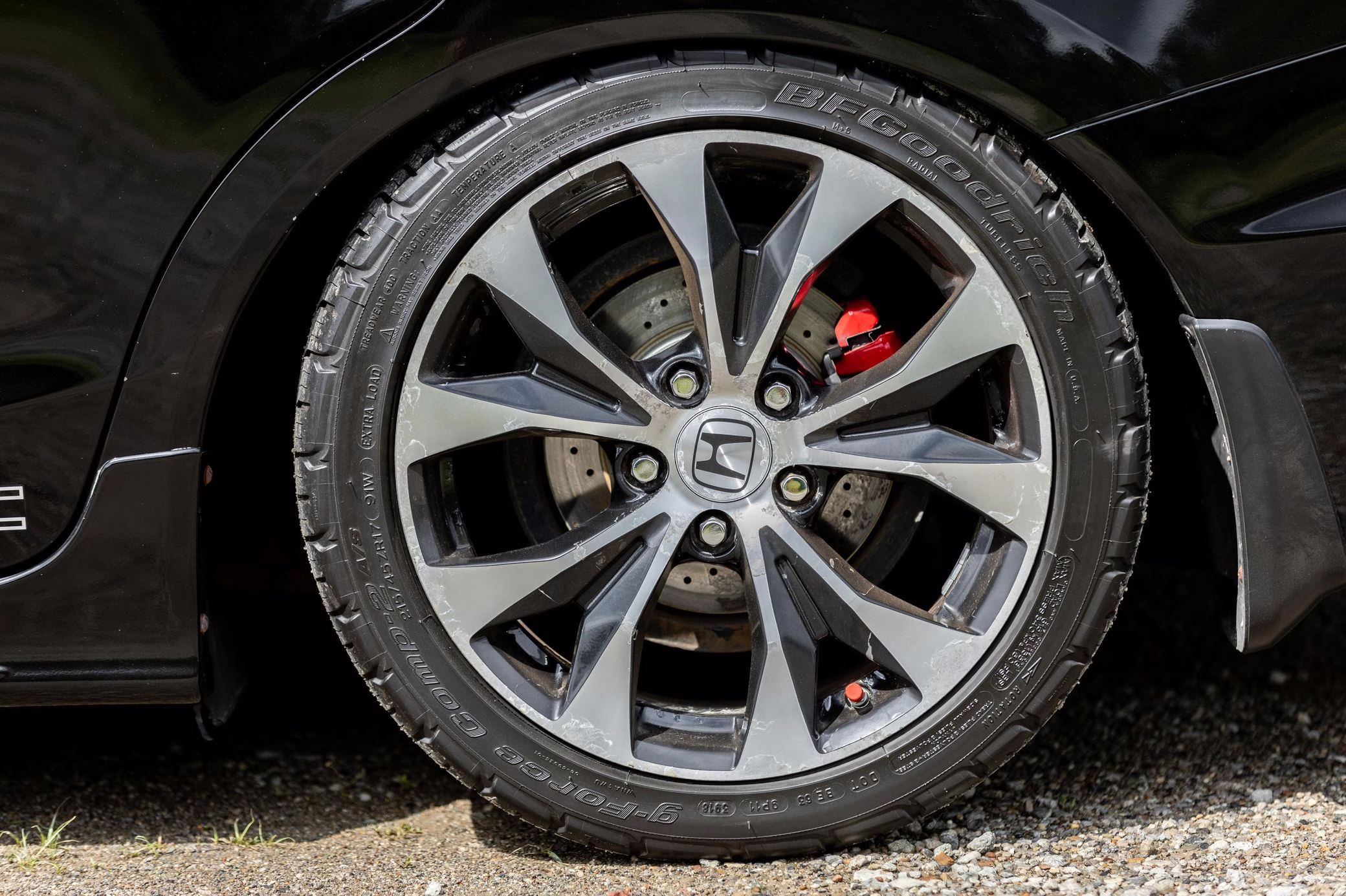 Factory equipment on this Civic includes 17-inch wheels, a helical limited-slip differential, fog lights, a power sunroof, cloth upholstery, aluminum pedals, a rearview camera, and more as detailed below.