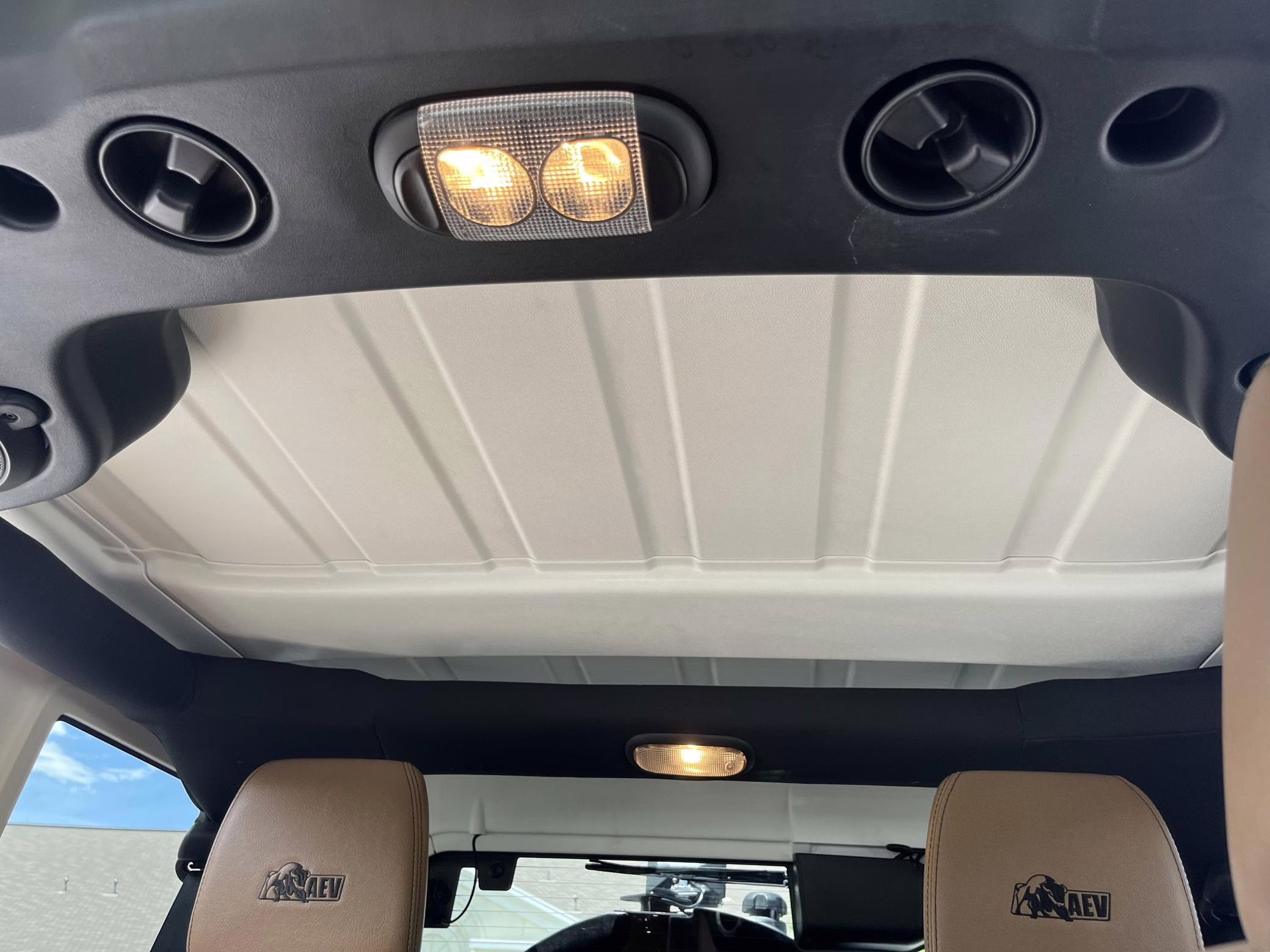 The attached window sticker highlights the Jeep factory equipment list, while a partial list of notable AEV equipment includes: