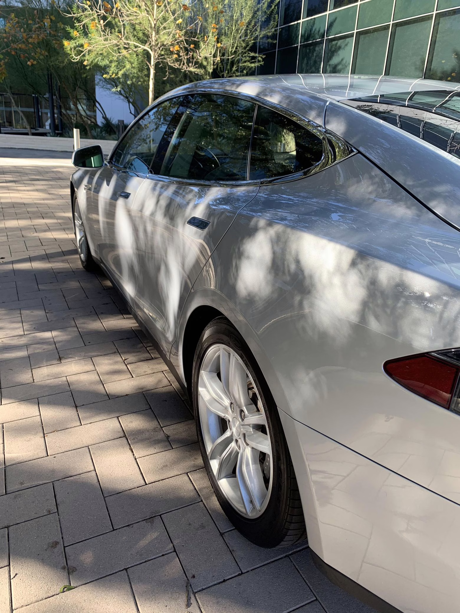 2013 Tesla Model S 85, finished in silver with a gray leather interior.