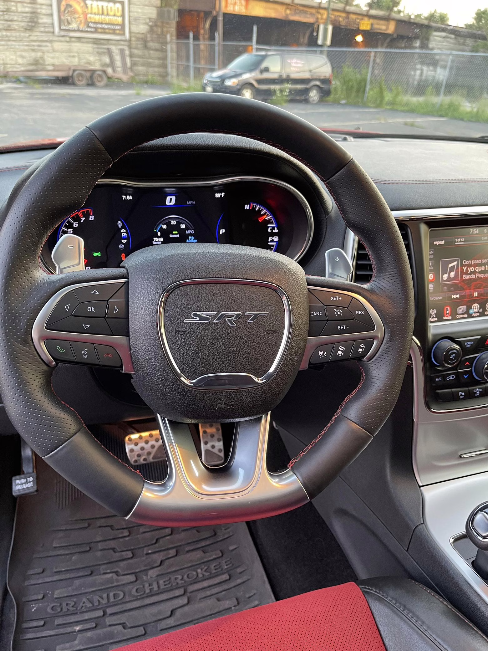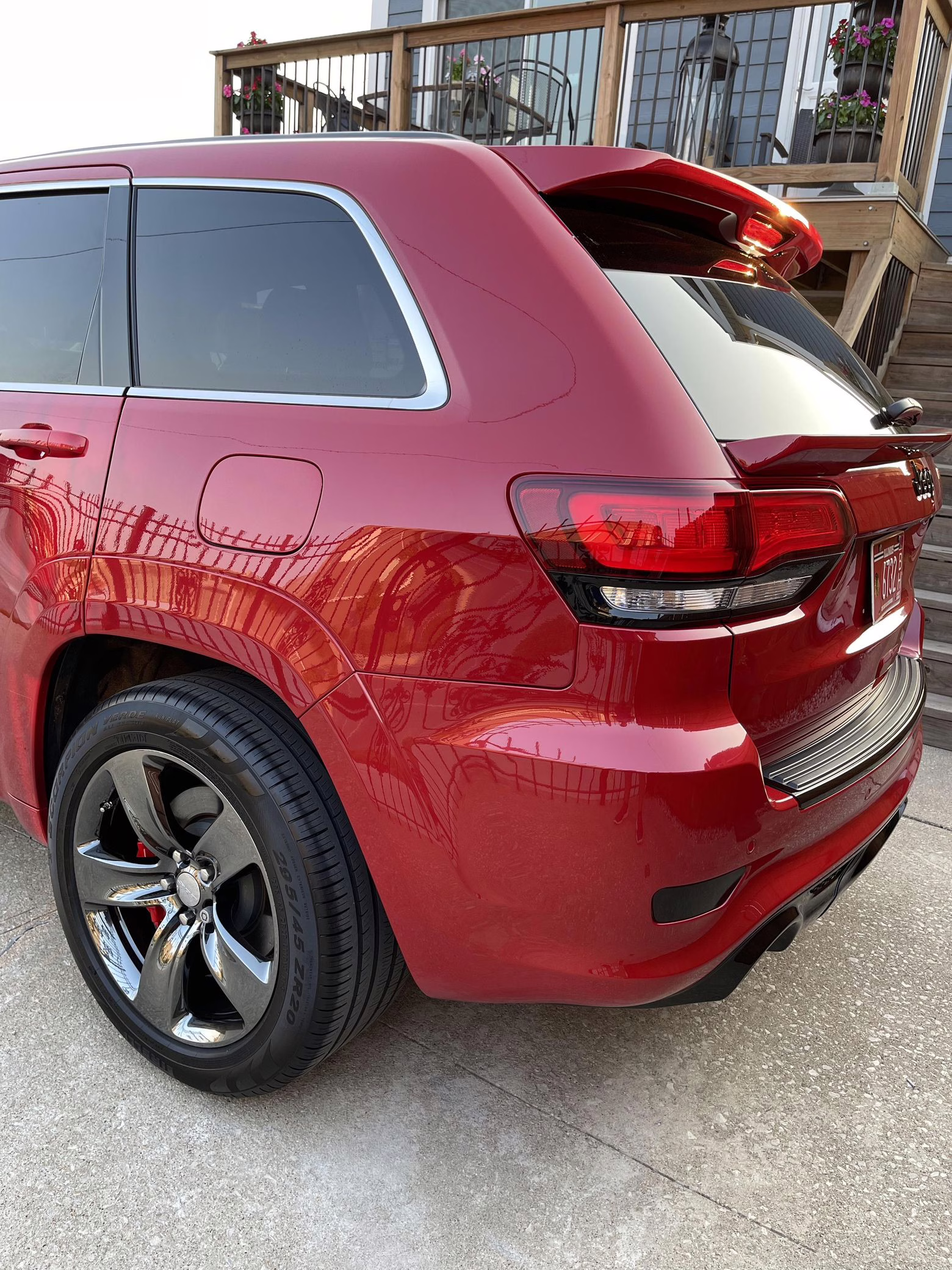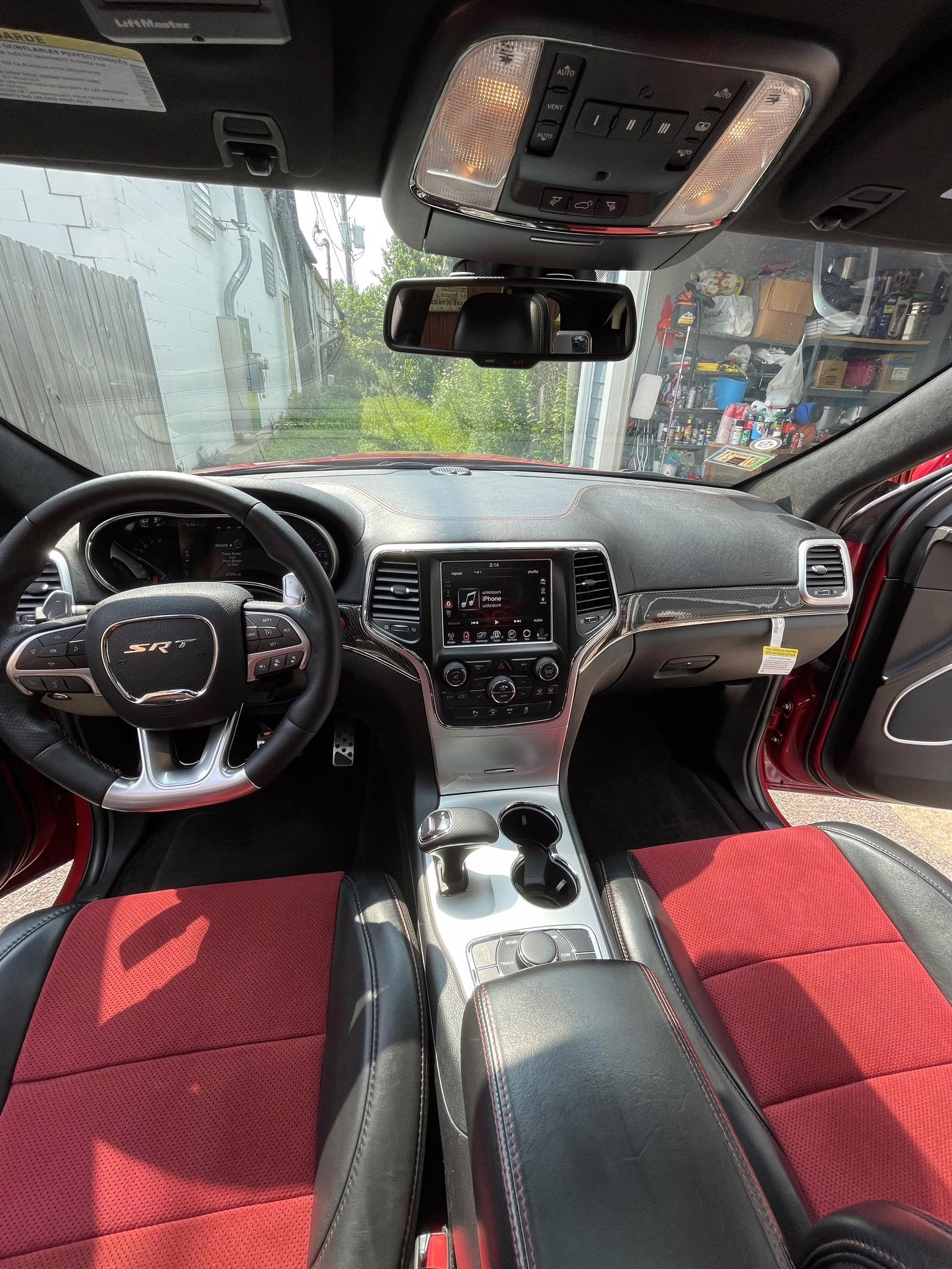 2015 Jeep Grand Cherokee SRT, finished in Redline Red Pearl with a red and black interior.