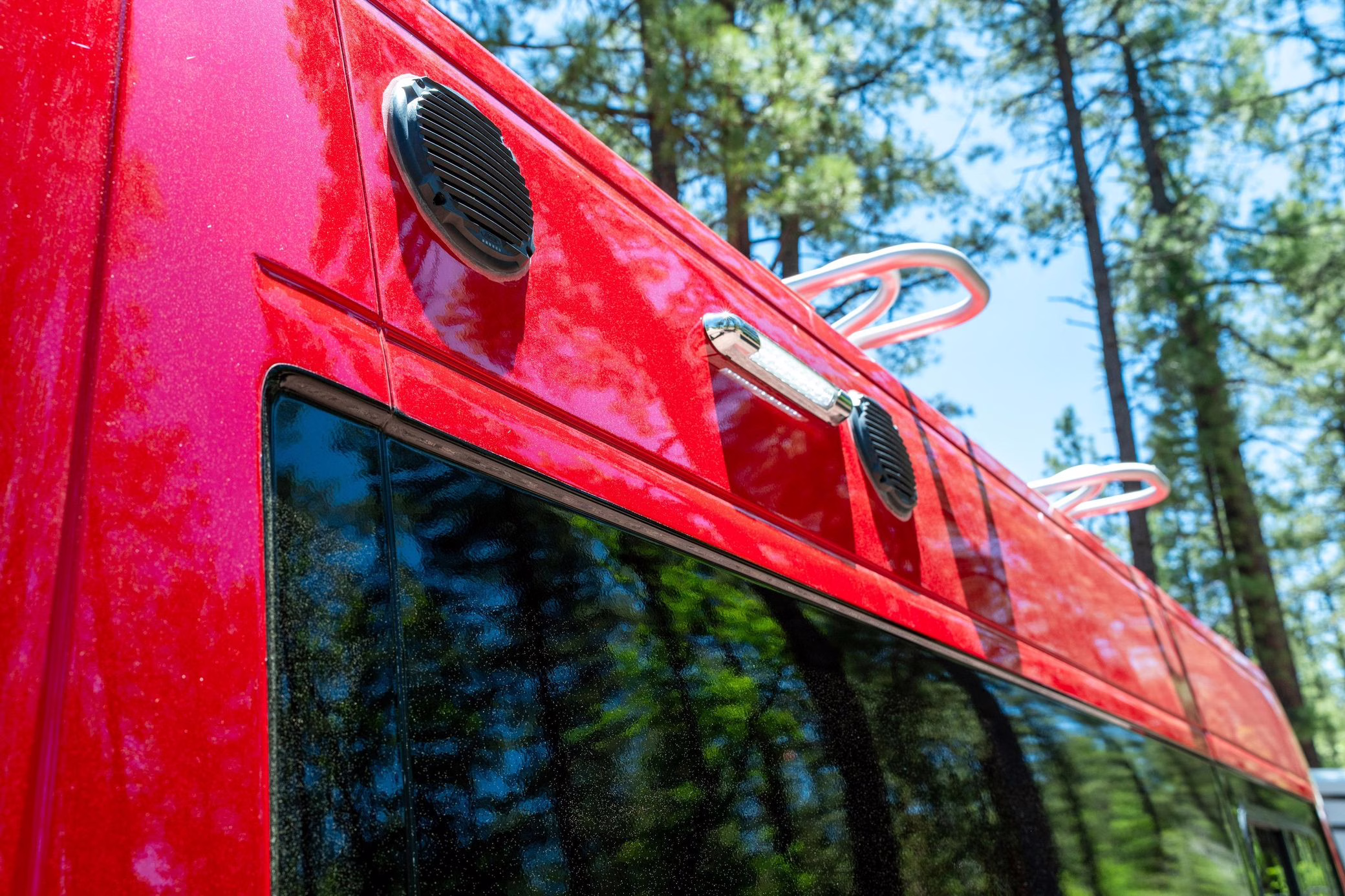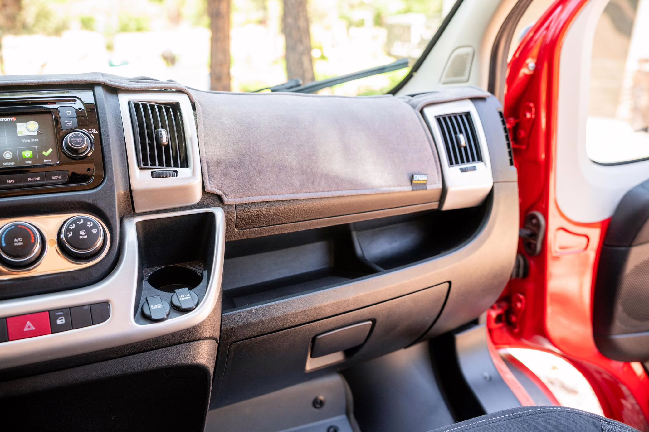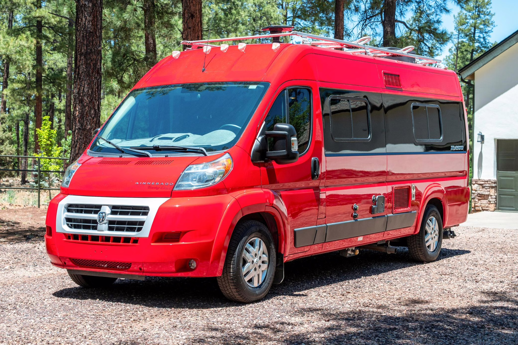 2015 Ram ProMaster 3500 Winnebago Travato, finished in Flame Red with a gray interior.
