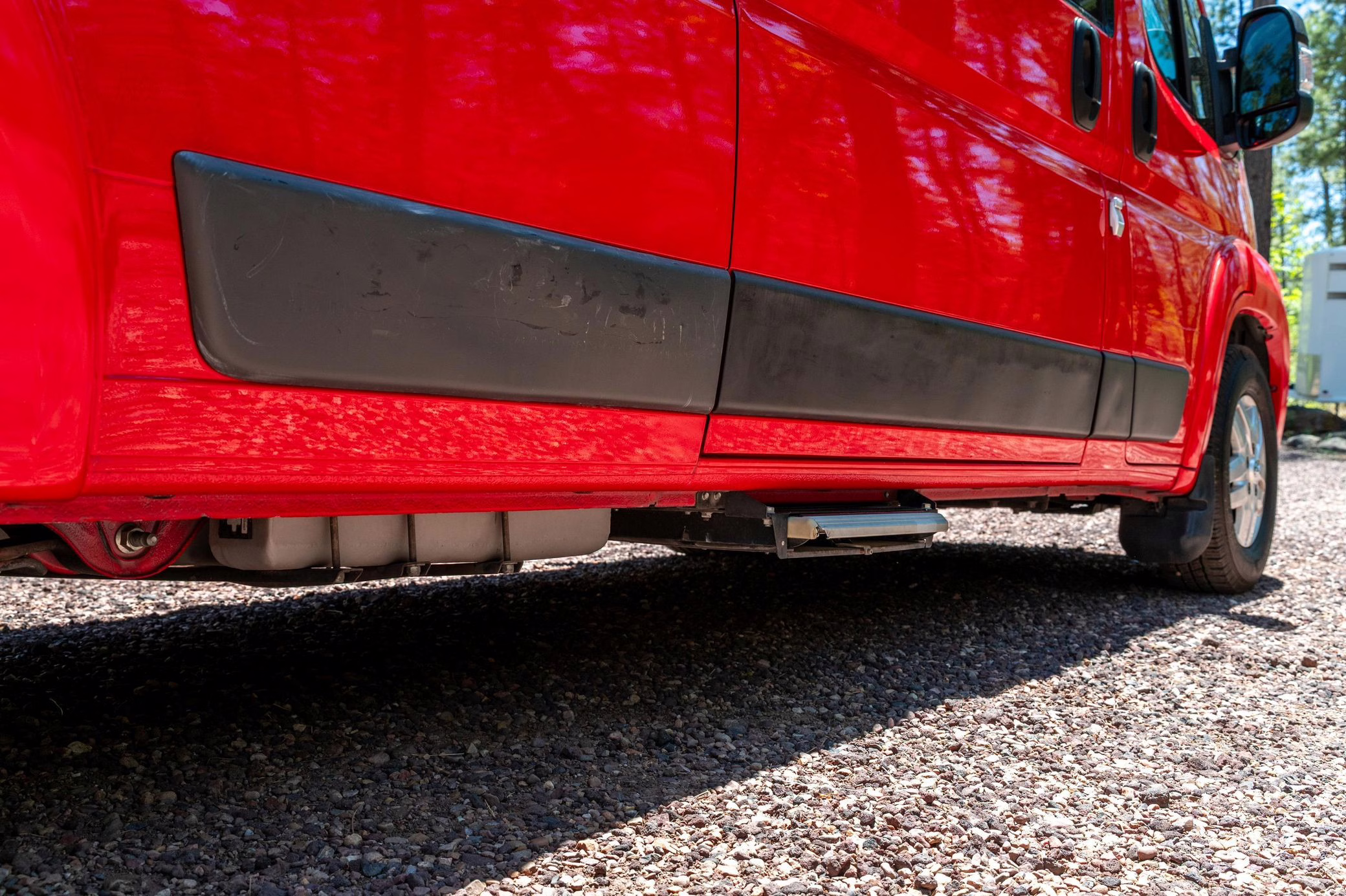 Awning and passenger-side rear mudflap missing