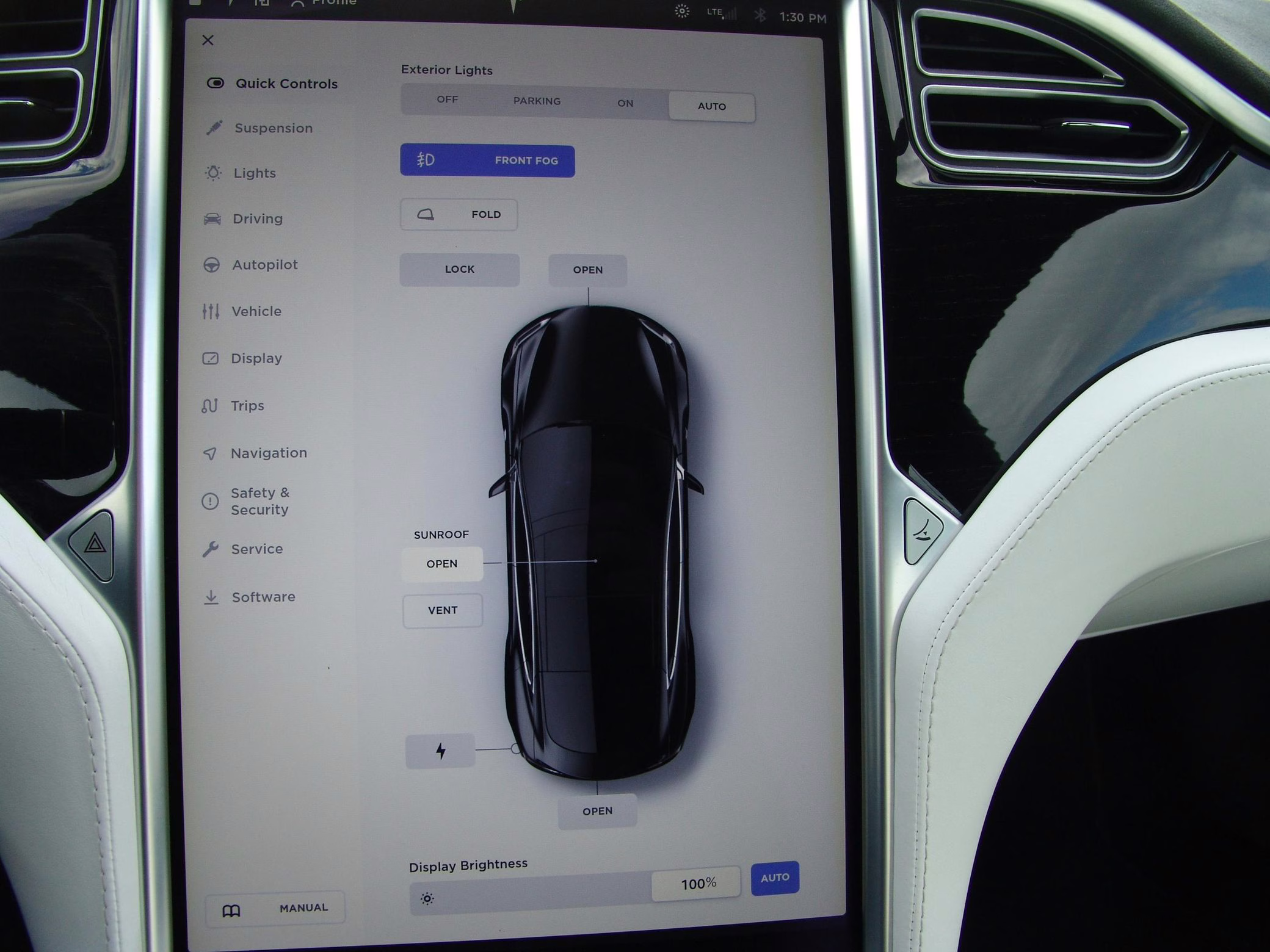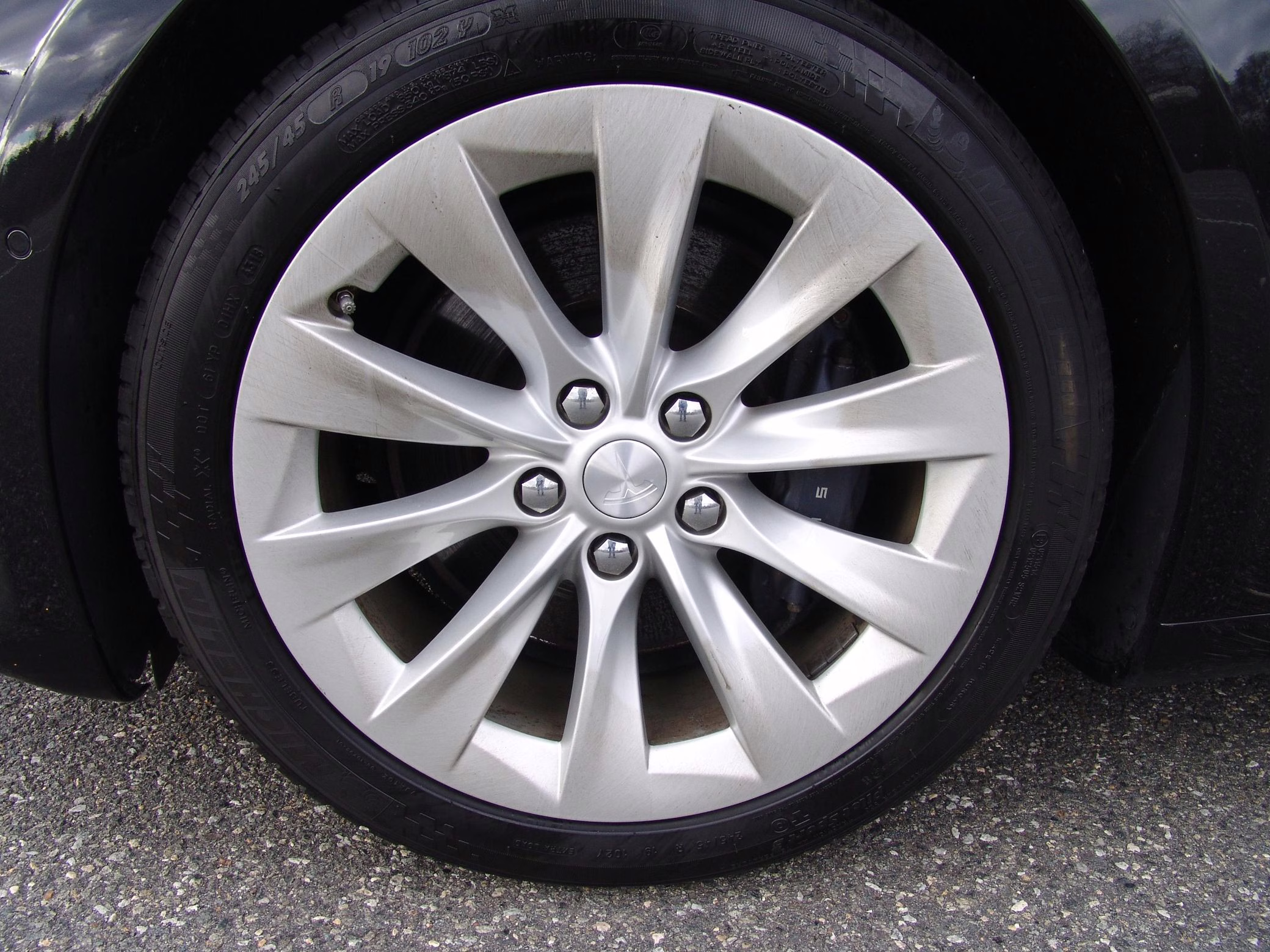 This Model S is a 90D model, meaning it has a 90kWh battery and all-wheel drive via a pair of 3-phase, 4-pole AC induction motors. It has an EPA-estimated range of 303.2 miles.