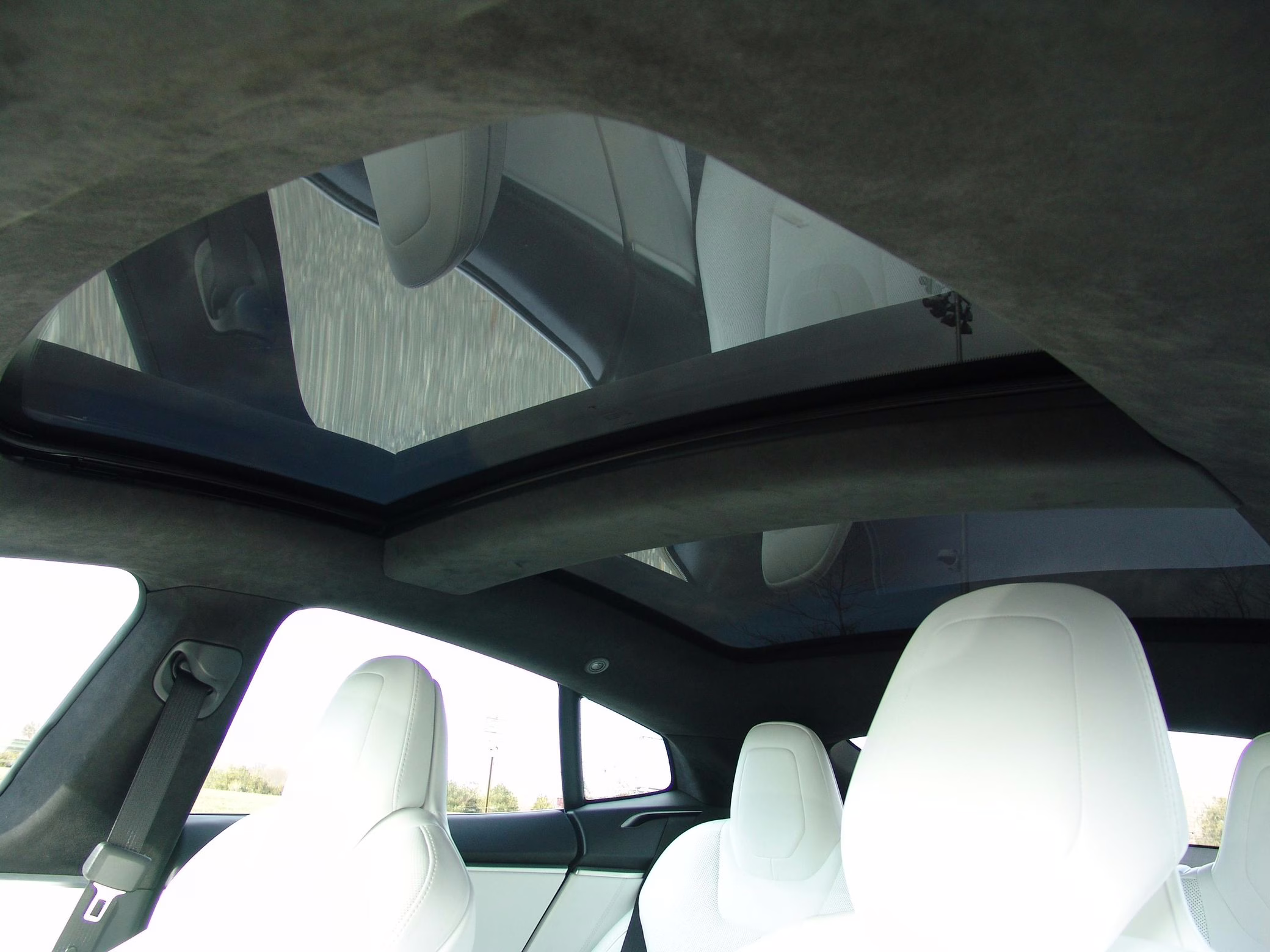 Power for this Model S comes from dual electric motors (one per axle) and a lithium-ion battery pack, which produce a combined 417 total horsepower and 485 lb-ft of torque.