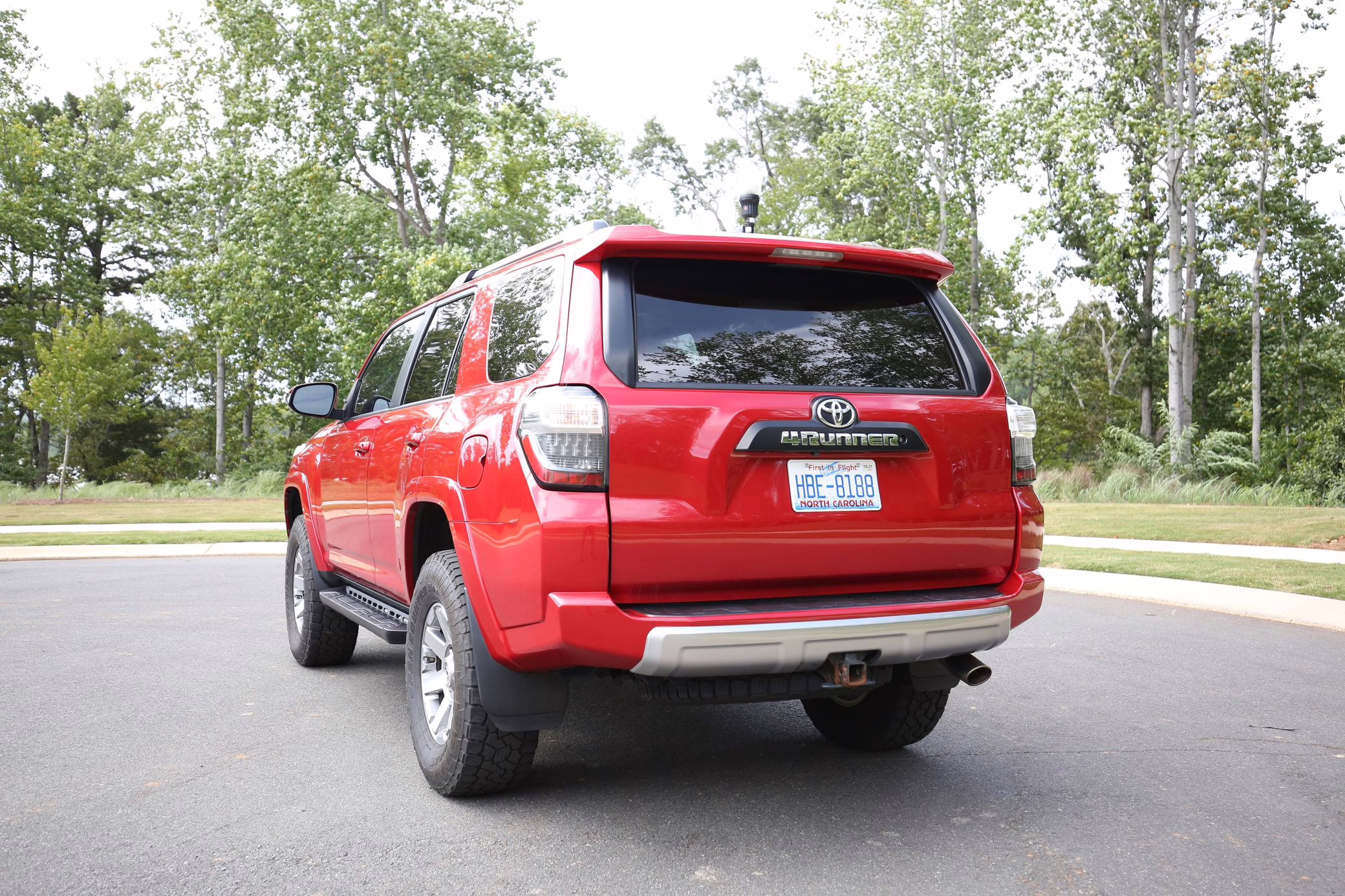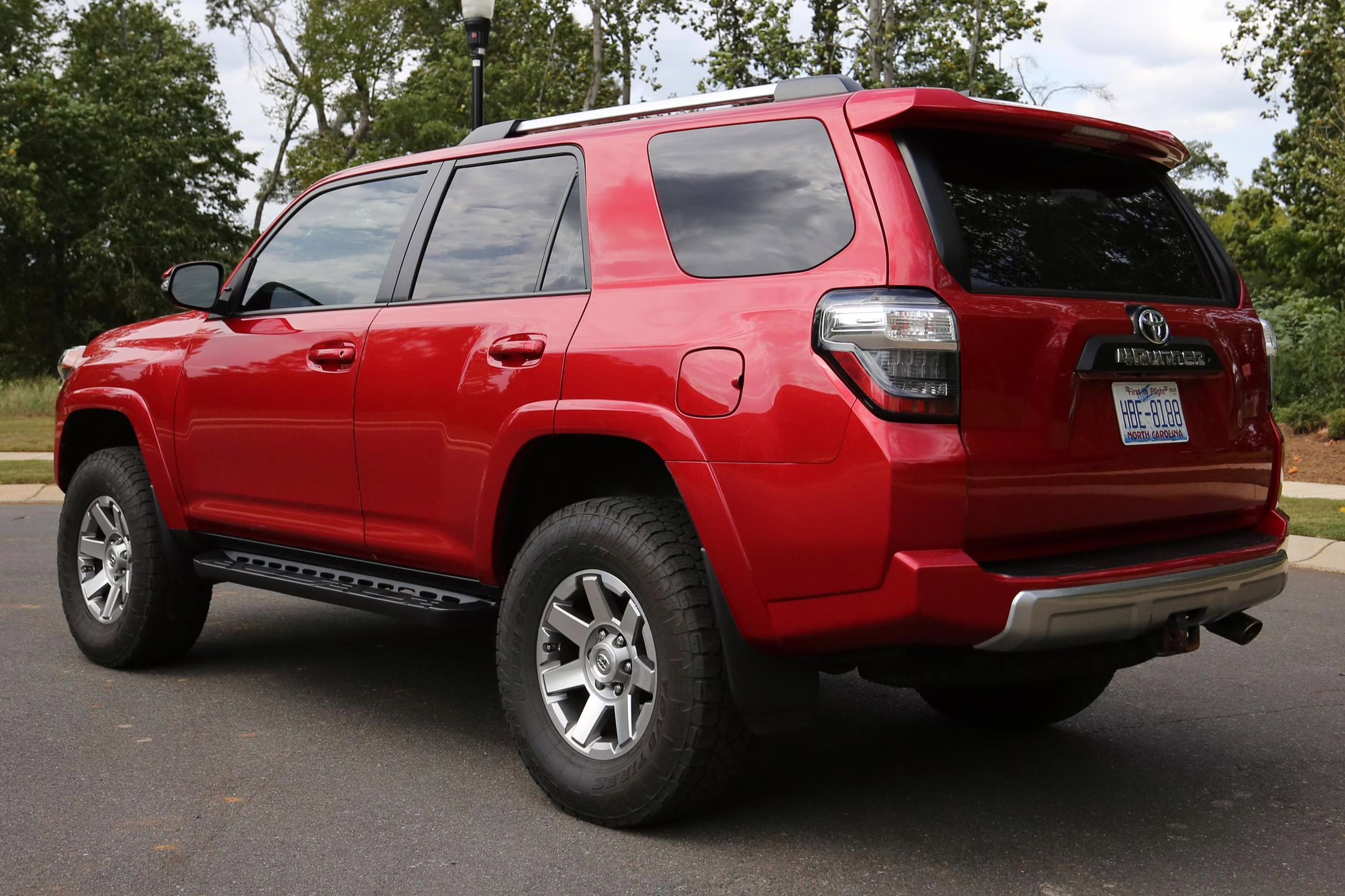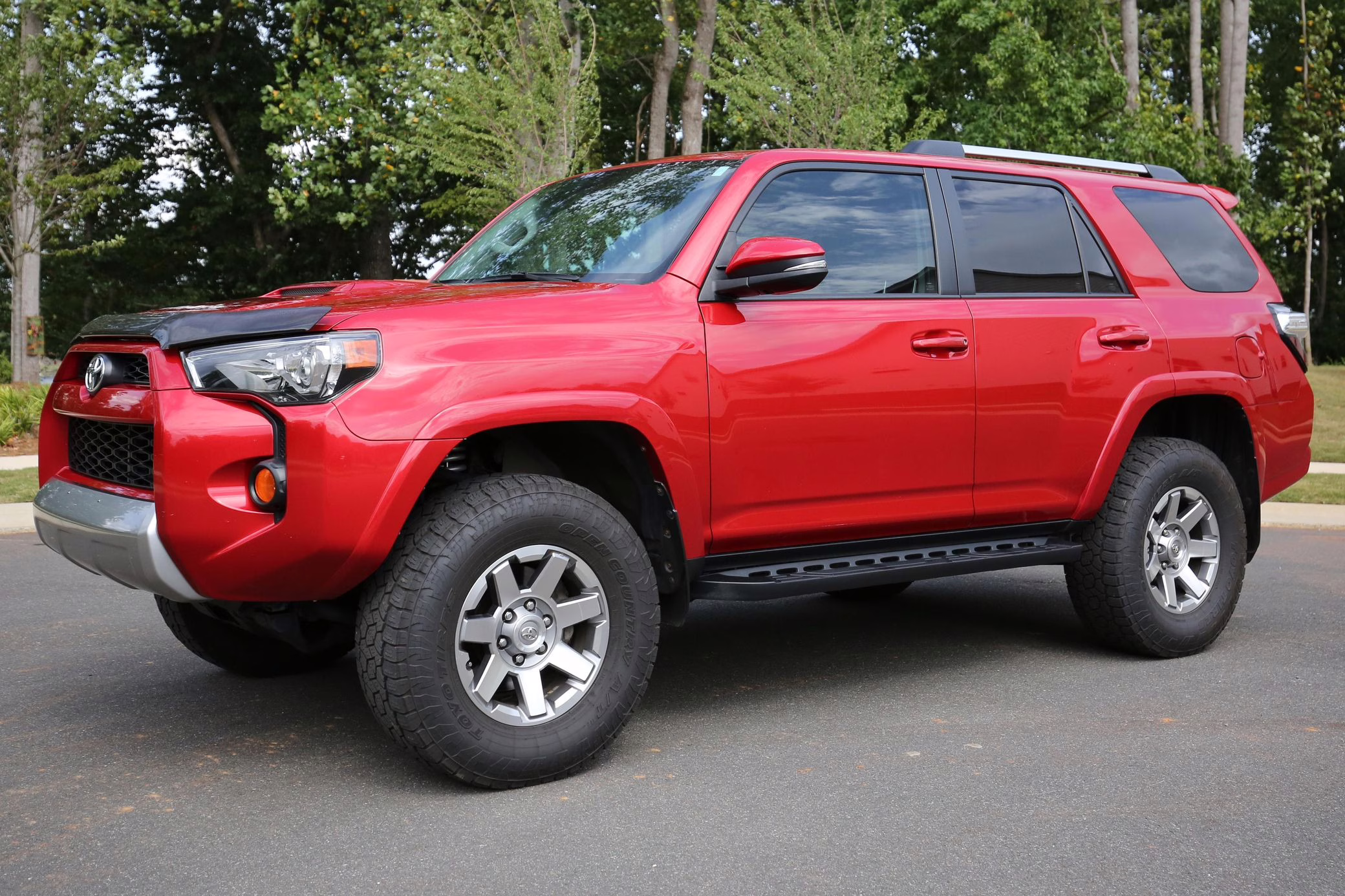 2016 Toyota 4Runner Trail Premium, finished in Barcelona Red Metallic with a black interior.