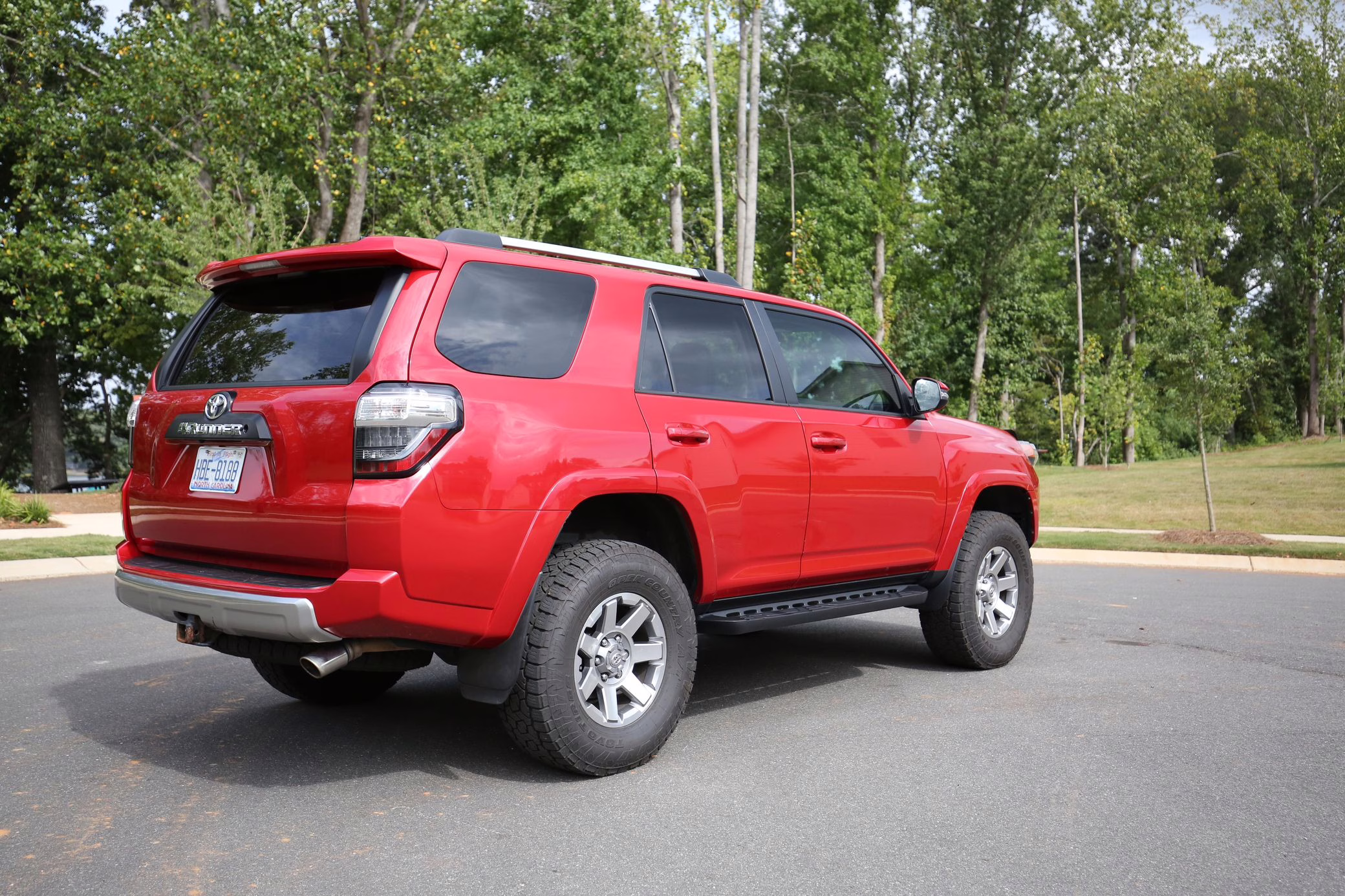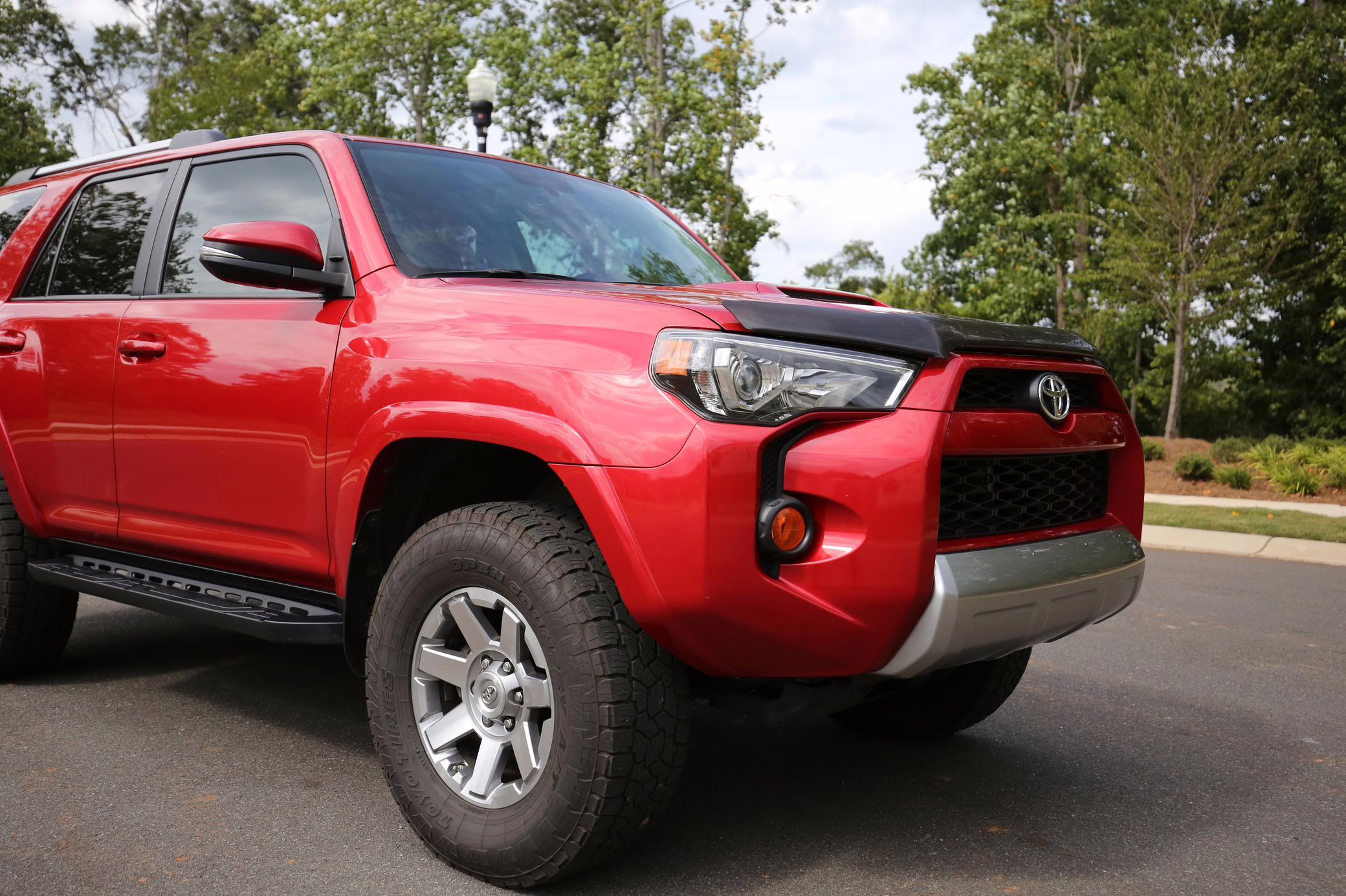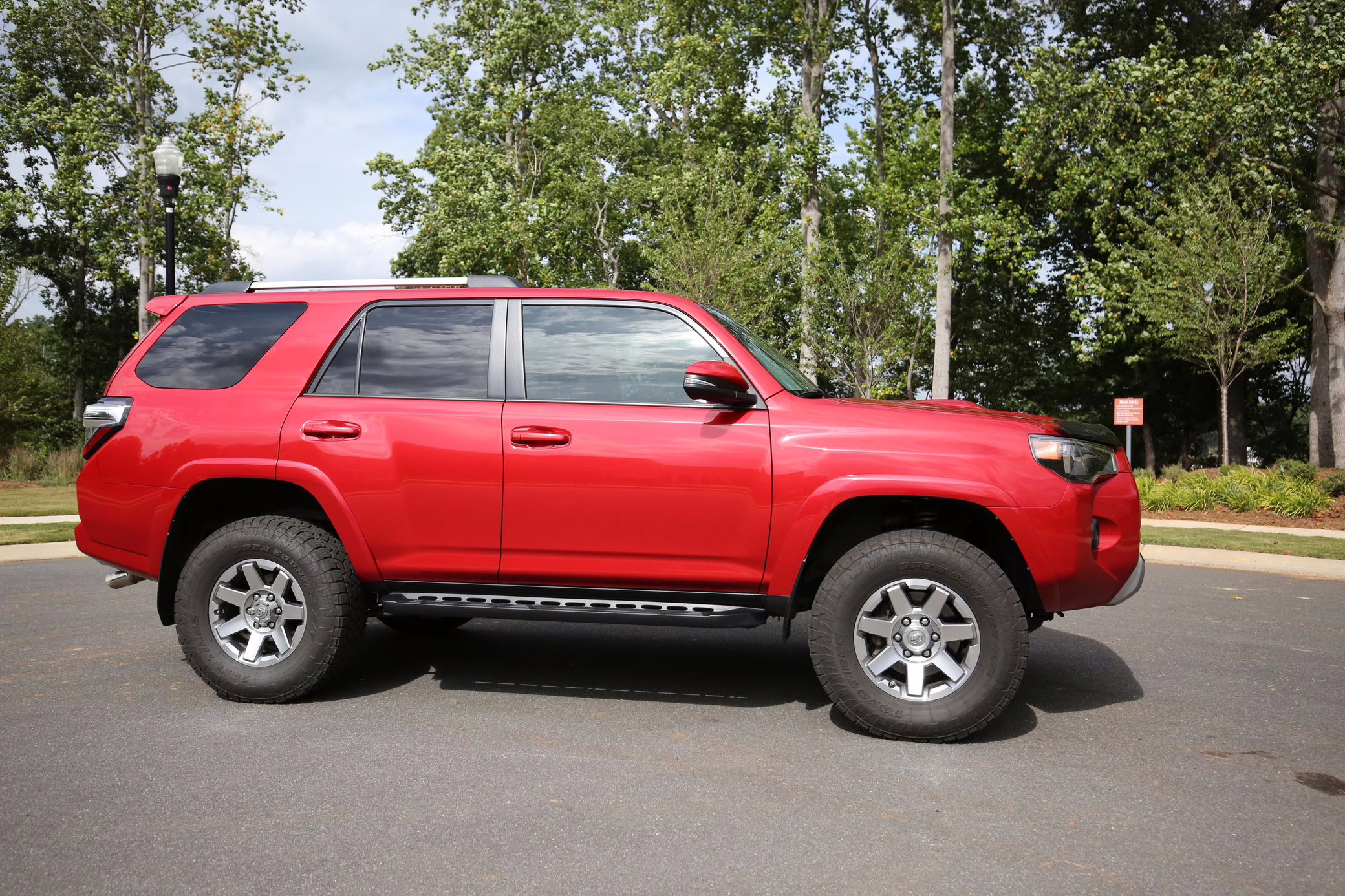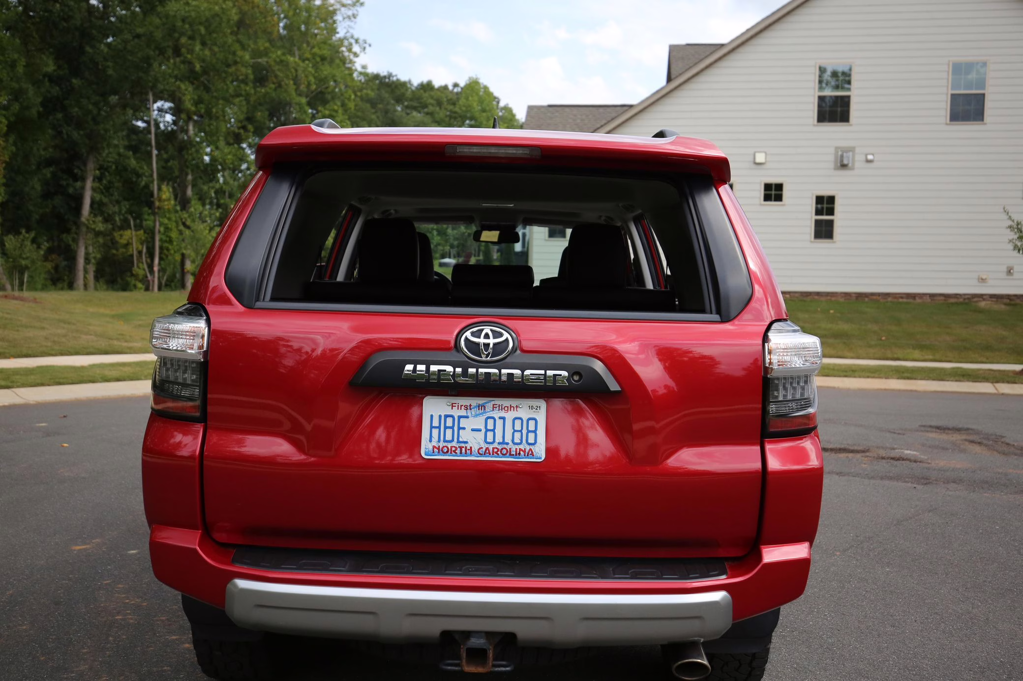2016 Toyota 4Runner Trail Premium, finished in Barcelona Red Metallic with a black interior.
