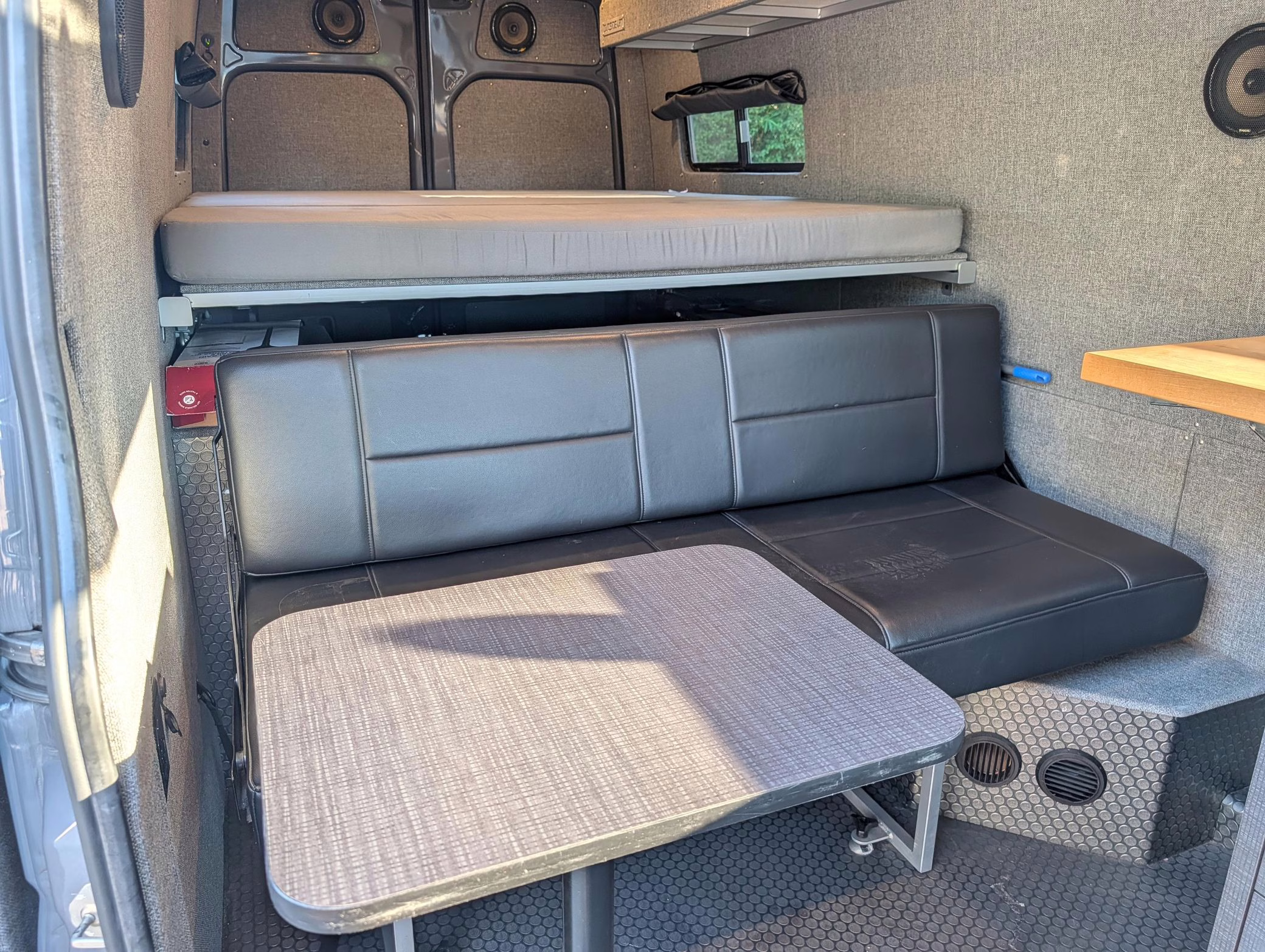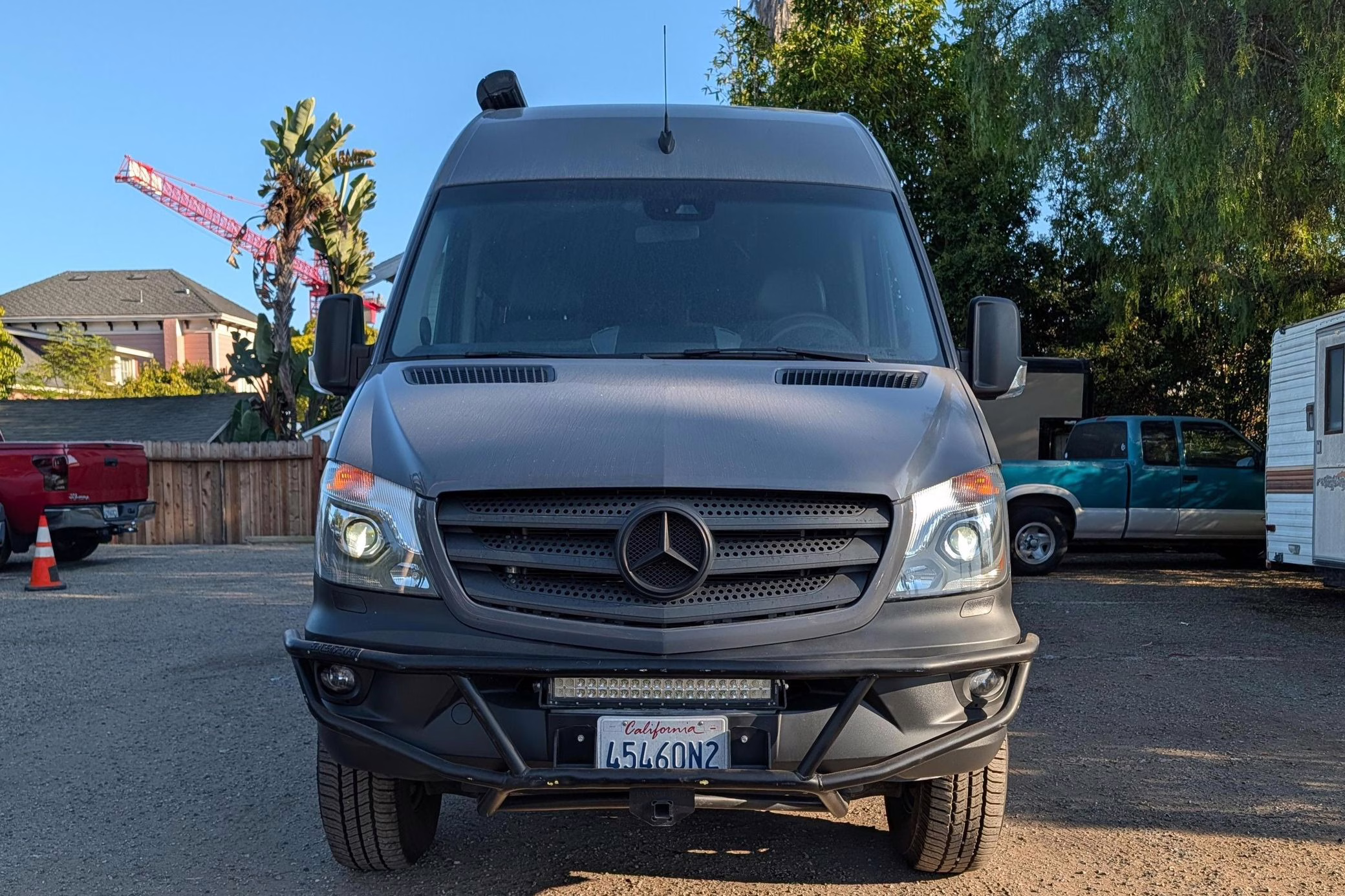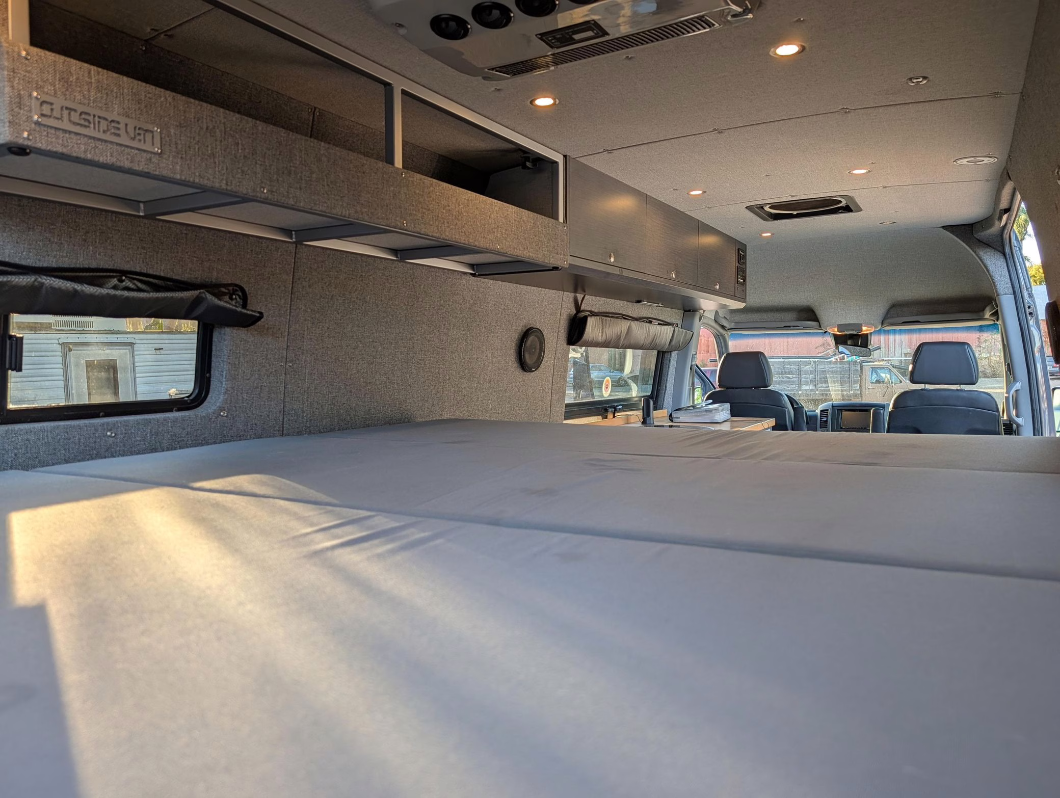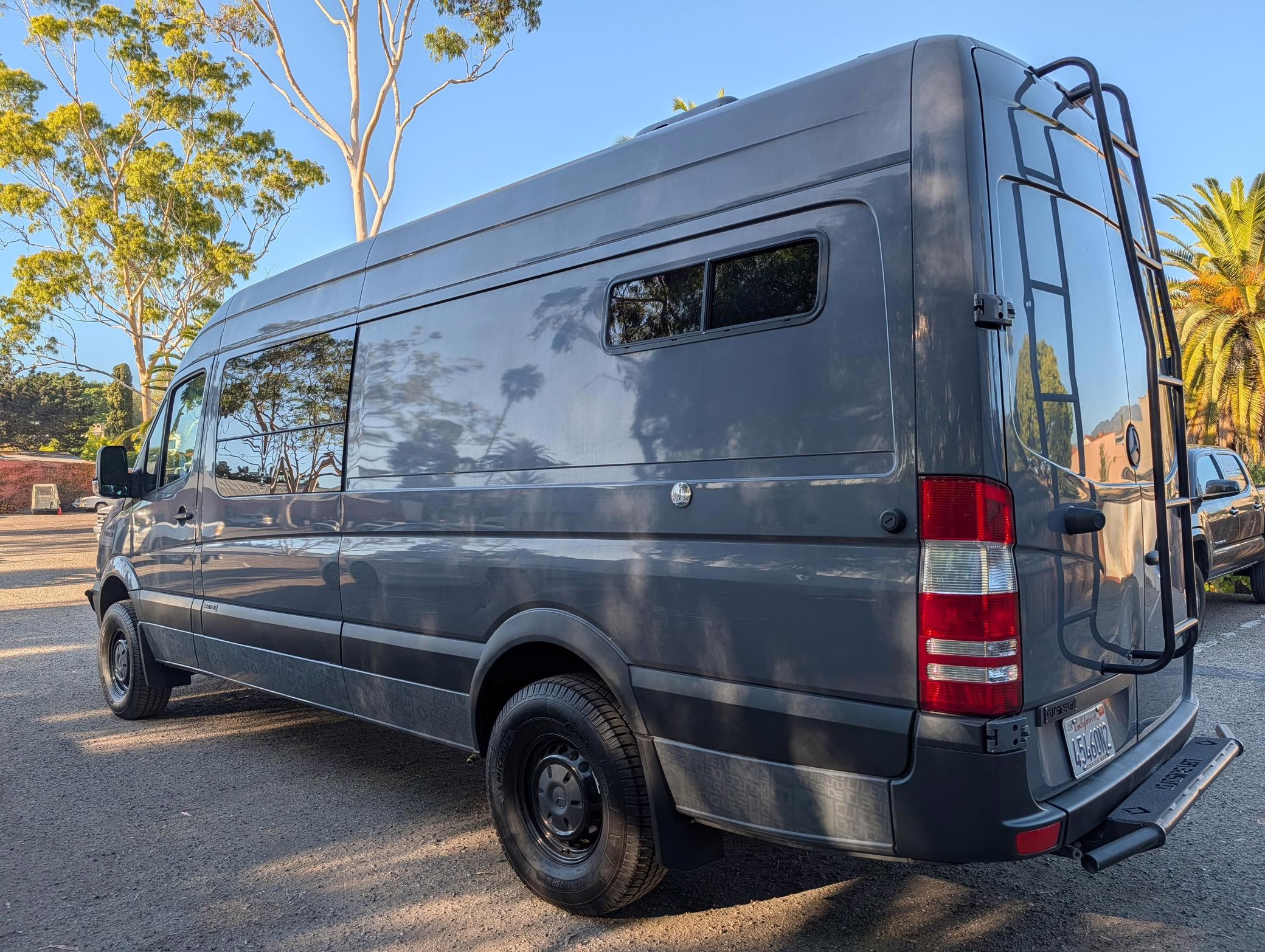This particular Sprinter 2500 touts a turbodiesel V6 engine paired with 4-wheel drive, and it’s been converted into a camper by Outside Vans. The conversion included the installation of Outside Van bumpers, LED exterior lights, a Fiamma awning, a 3-panel removable bed, a sink, a refrigerator, roof-mounted solar panels, and a 20-gallon fresh water tank.
