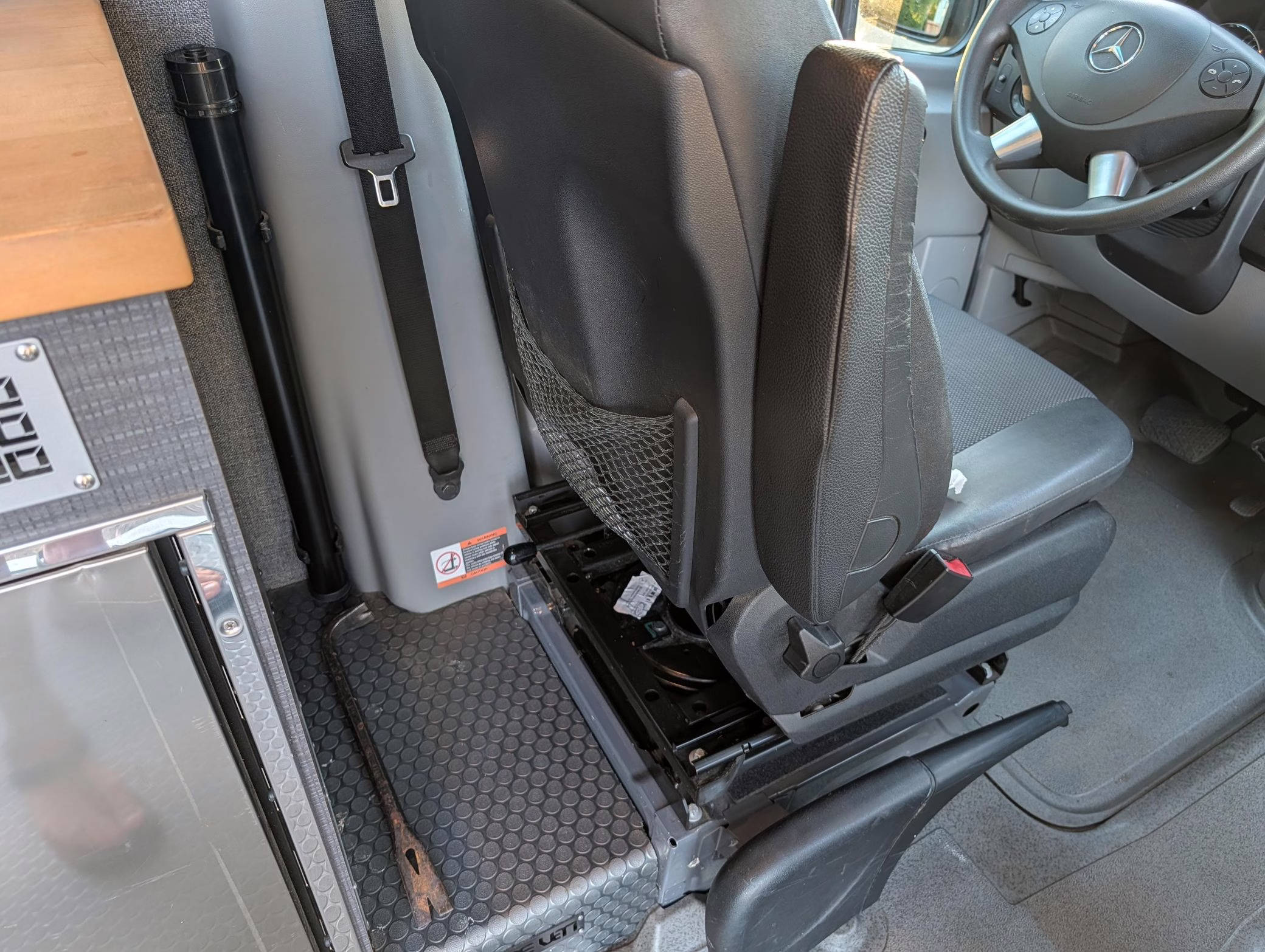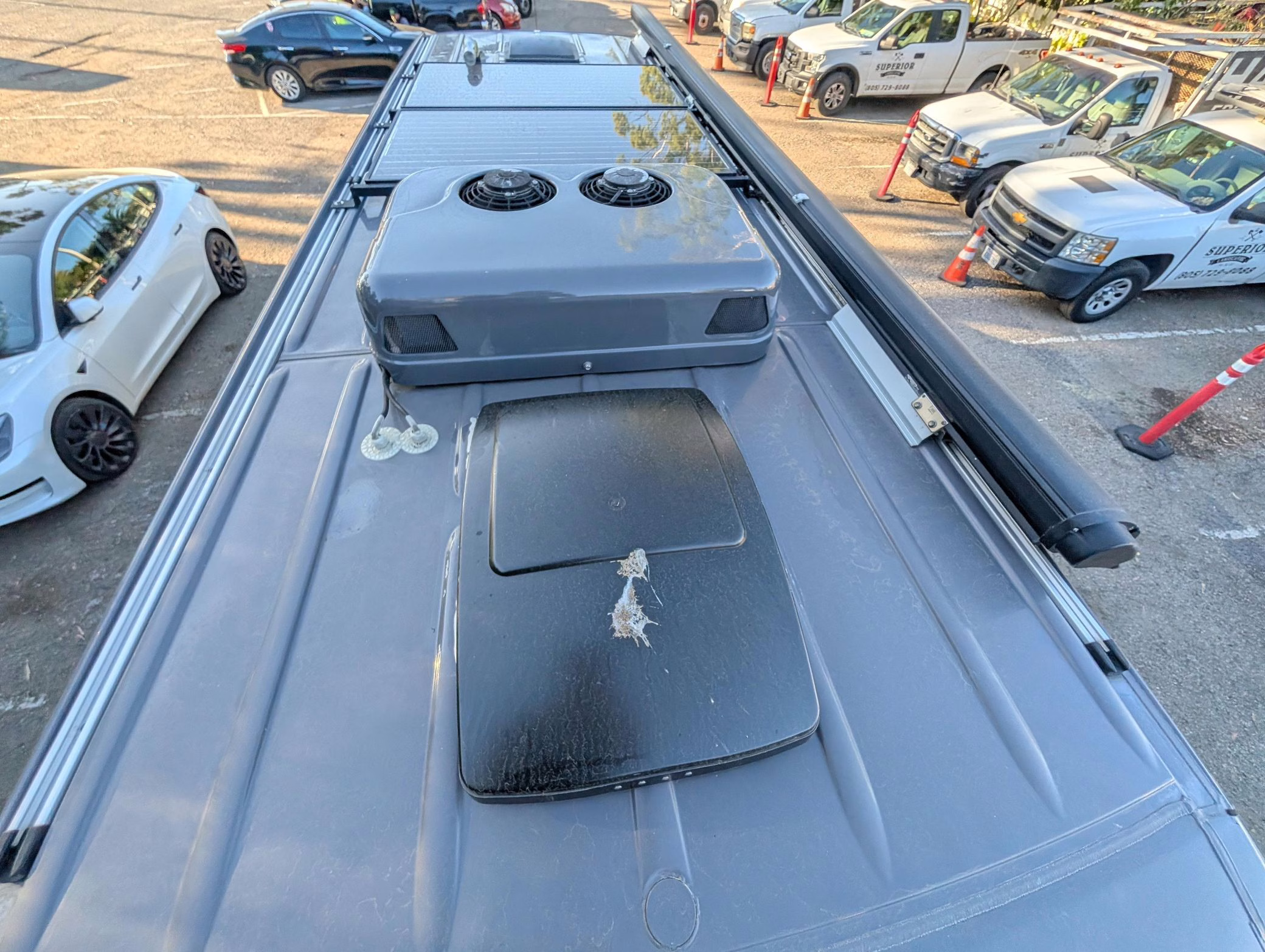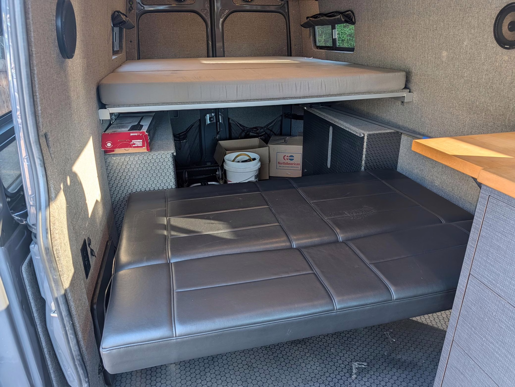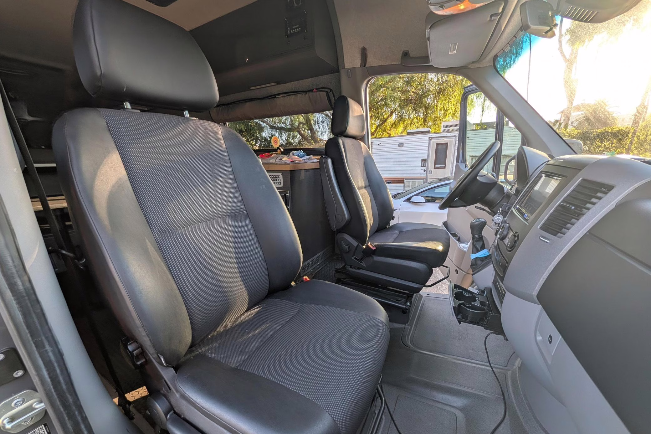 This particular Sprinter 2500 touts a turbodiesel V6 engine paired with 4-wheel drive, and it’s been converted into a camper by Outside Vans. The conversion included the installation of Outside Van bumpers, LED exterior lights, a Fiamma awning, a 3-panel removable bed, a sink, a refrigerator, roof-mounted solar panels, and a 20-gallon fresh water tank.