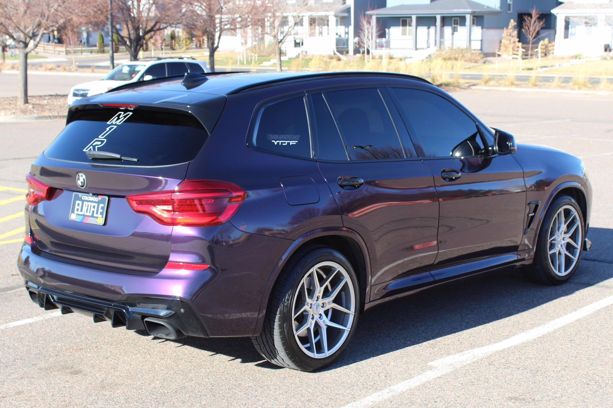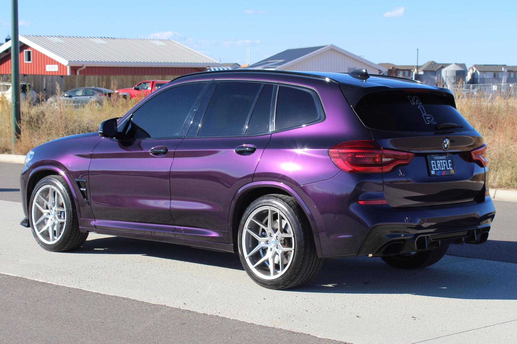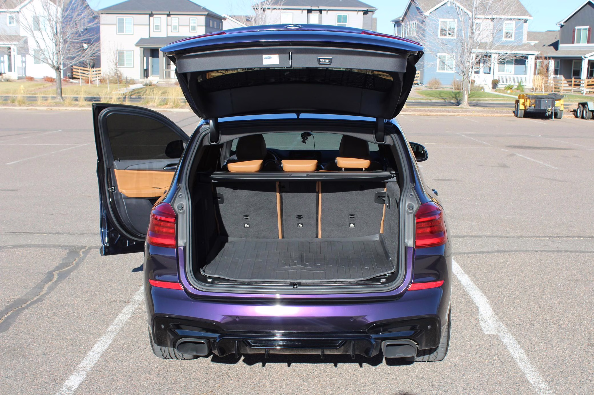 2018 BMW X3 M40i, finished in Carbon Black Metallic with a Midnight Purple exterior wrap and a Cognac interior.