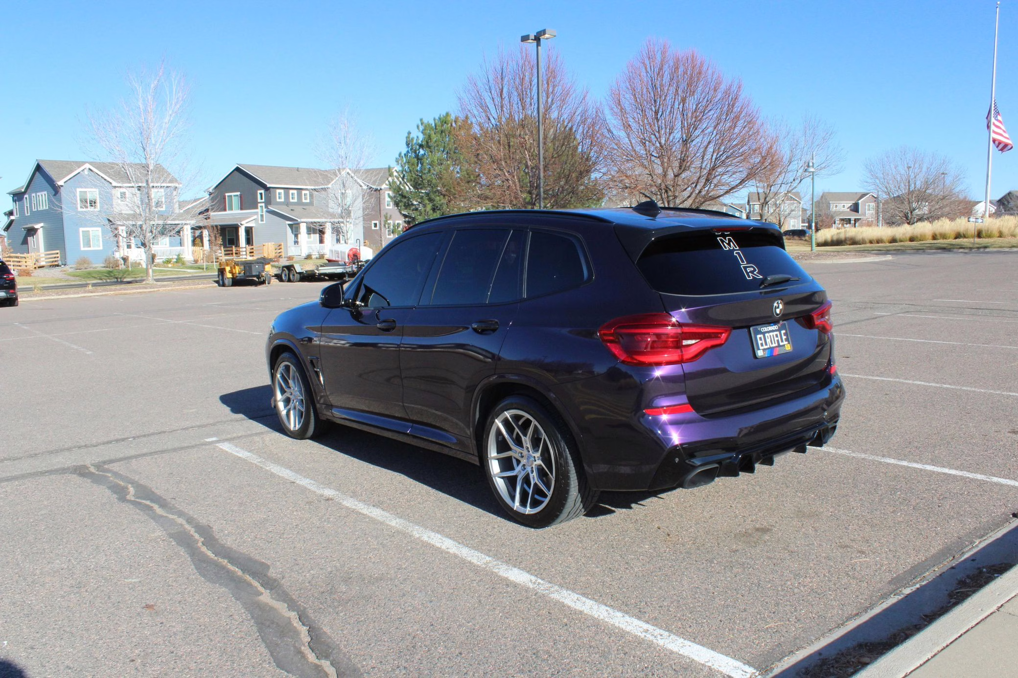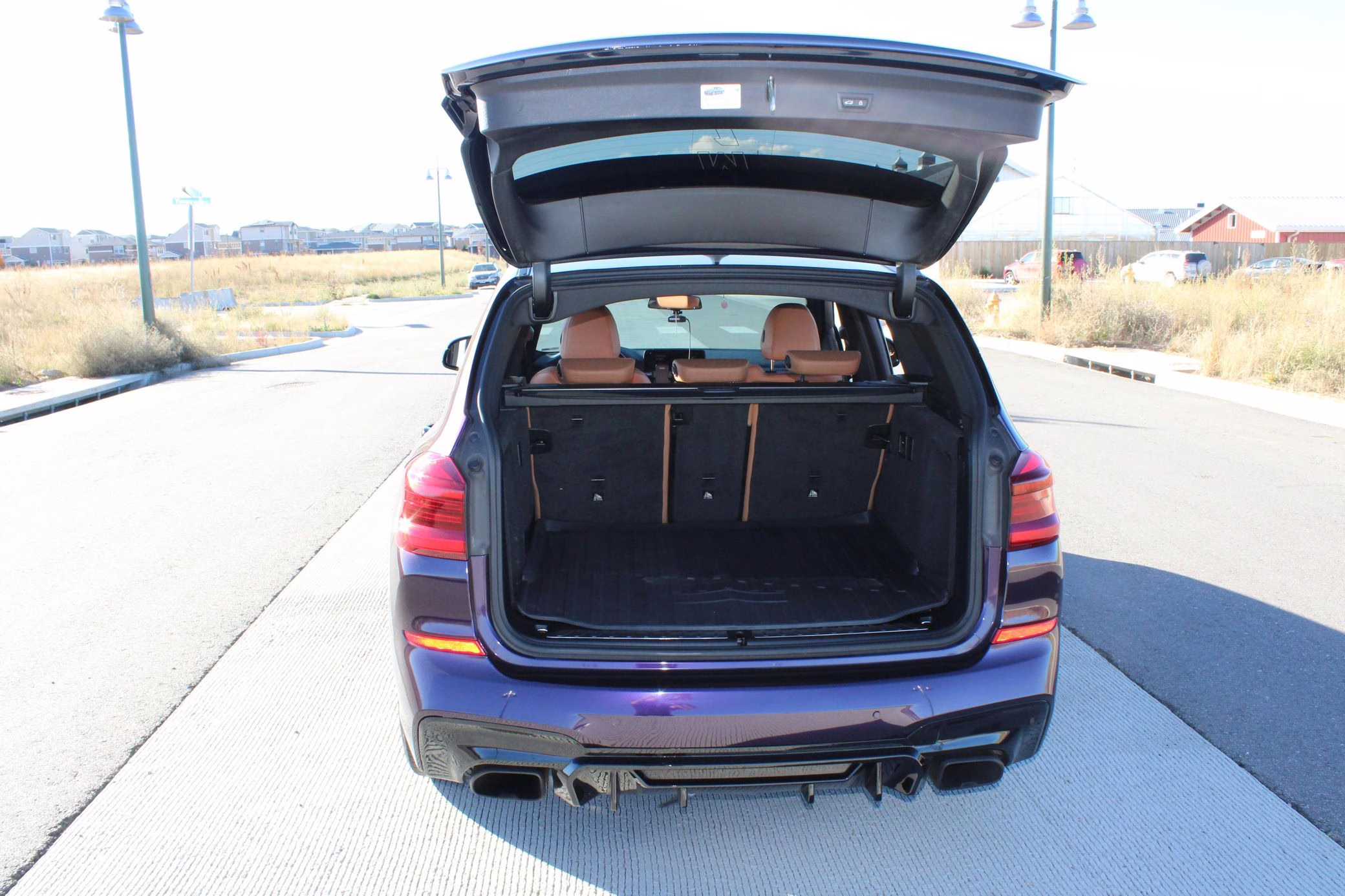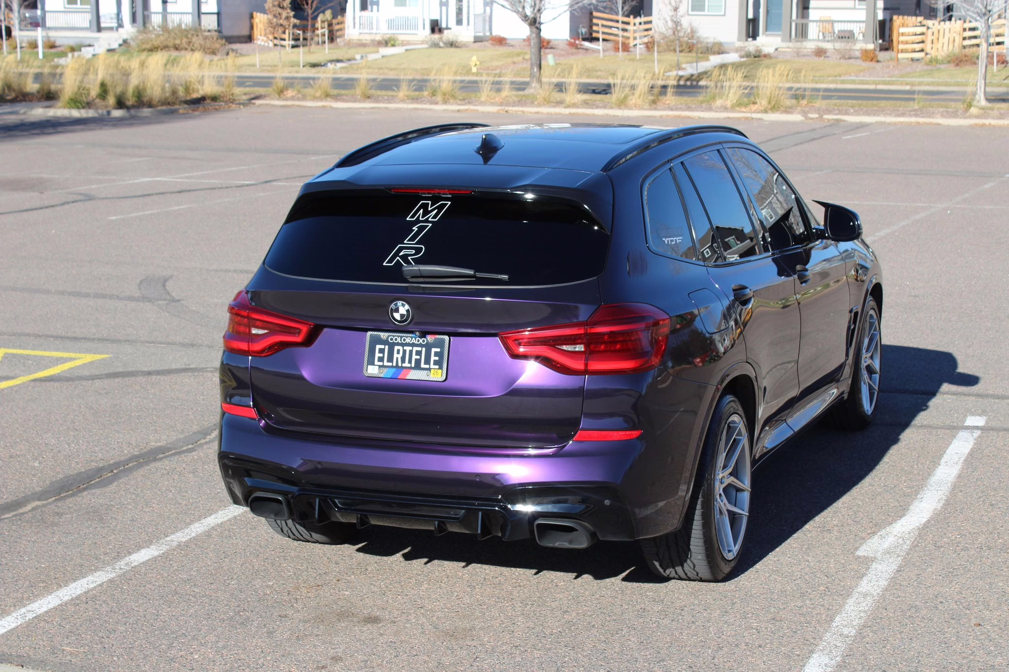 2018 BMW X3 M40i, finished in Carbon Black Metallic with a Midnight Purple exterior wrap and a Cognac interior.