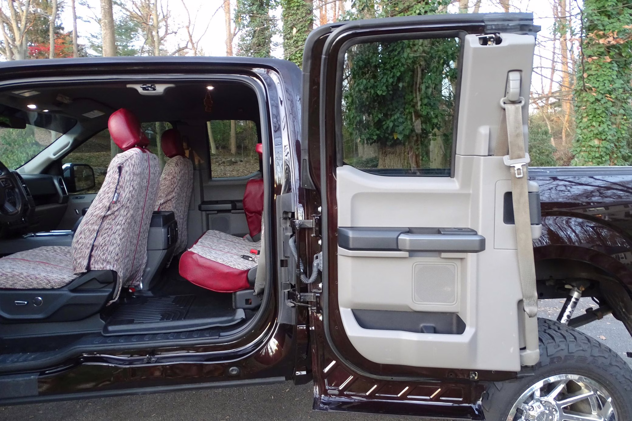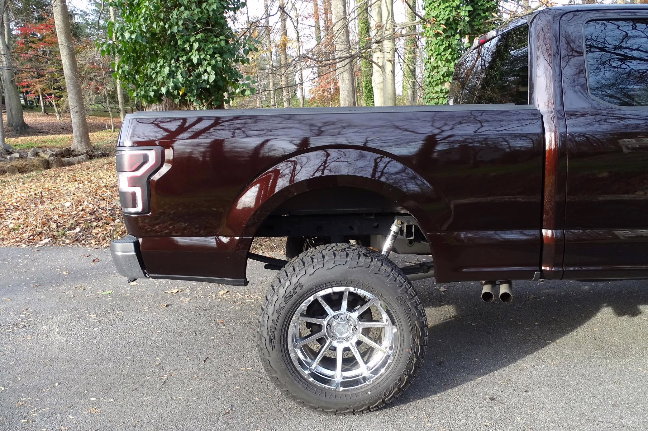 Now THIS is a head-turning F-150! It’s a well-equipped XLT model that’s finished in gorgeous and unusual Magma Red, and it’s fitted with the Trailer Tow Package and an electronic locking rear axle. This F-150 has also been extensively modified with some serious changes over a standard truck, touting a 6-inch BDS lift, Fox Racing coilovers, and a set of 20-inch V-Rock VR13 wheels with 35-inch Falken Wildpeak tires.