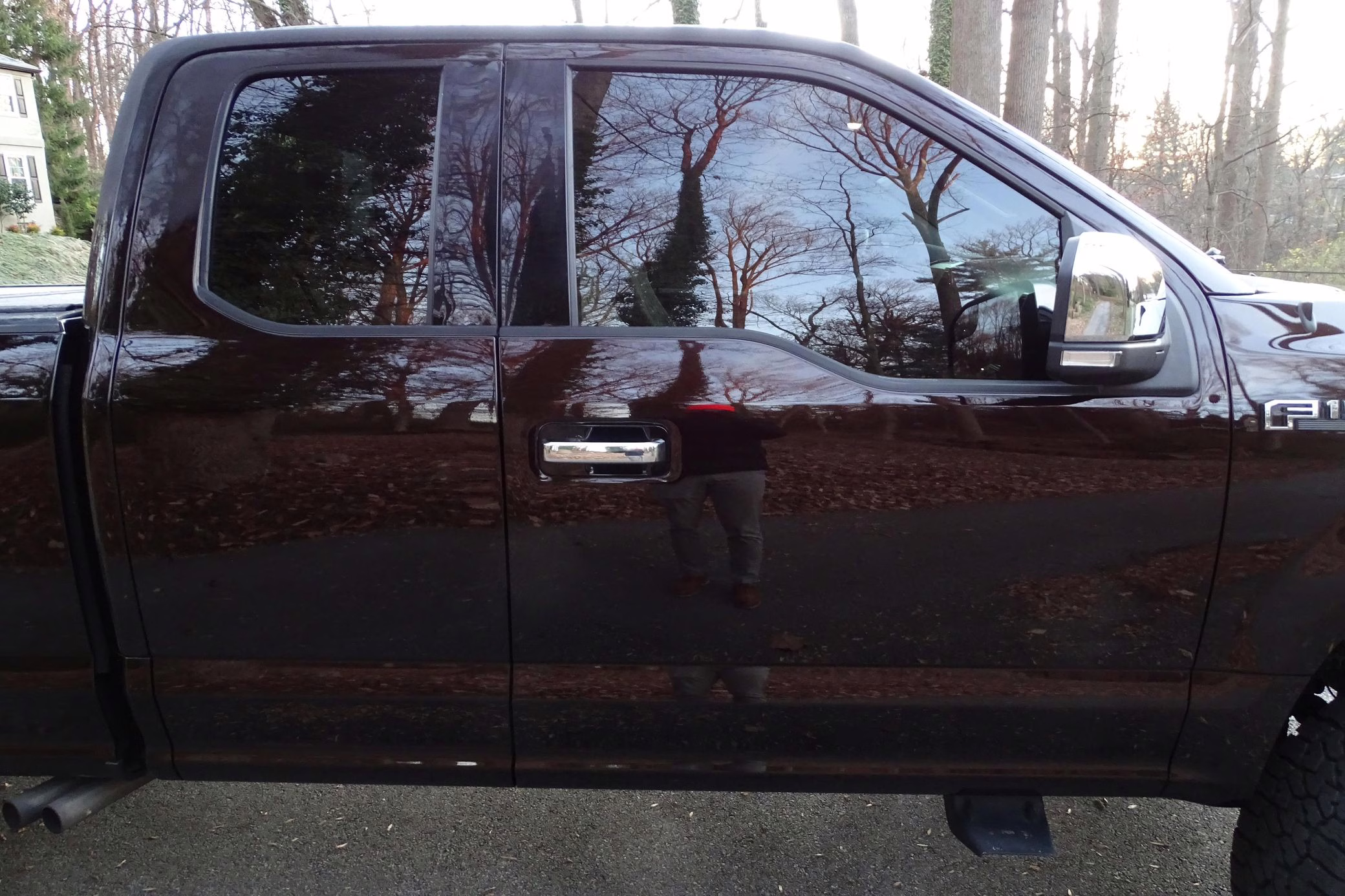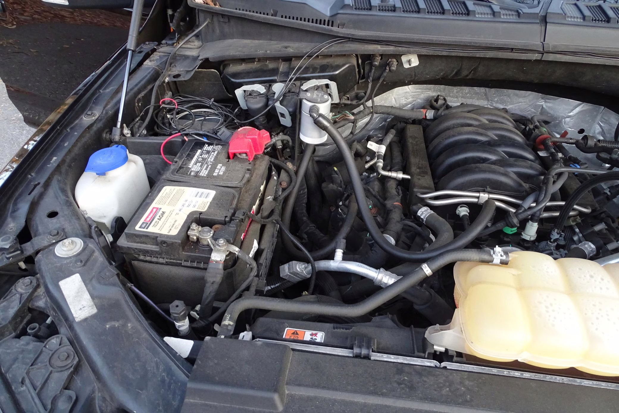Factory suspension parts, headlights, intake with air filter, front air dam, spare tire, running boards, and “Ford” badges
