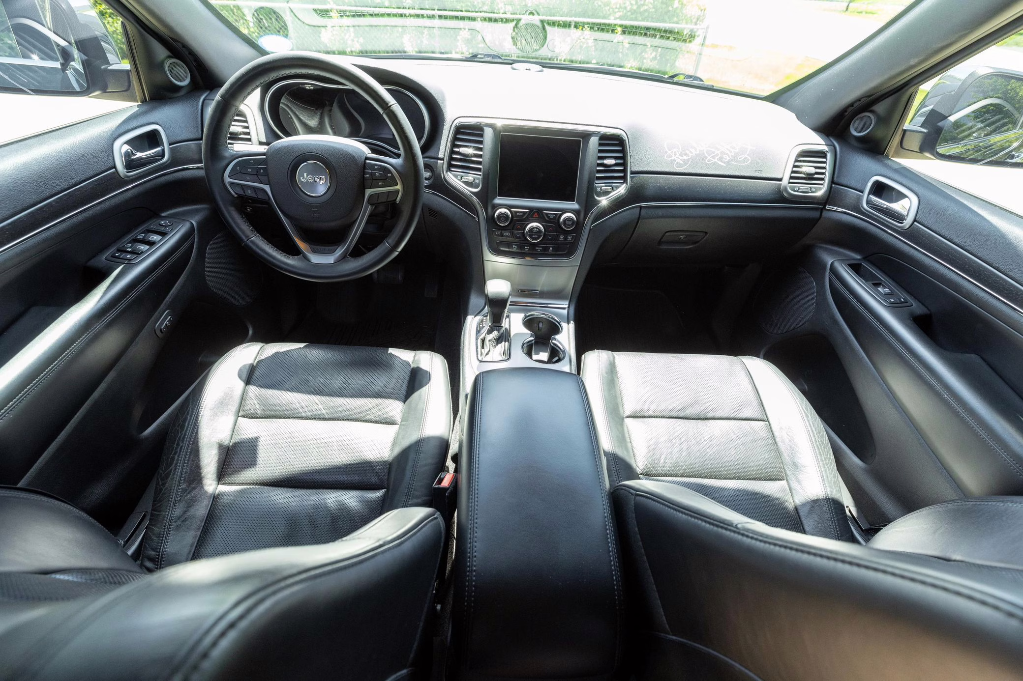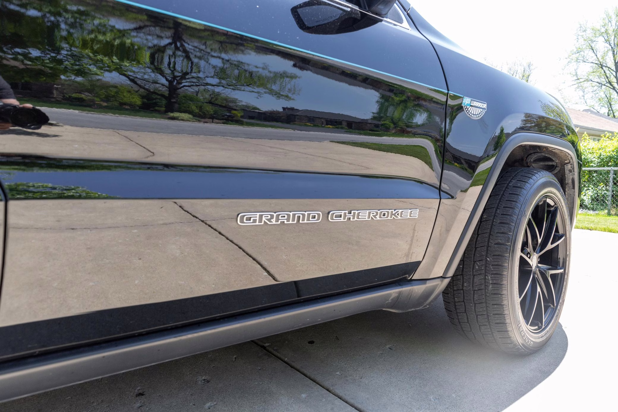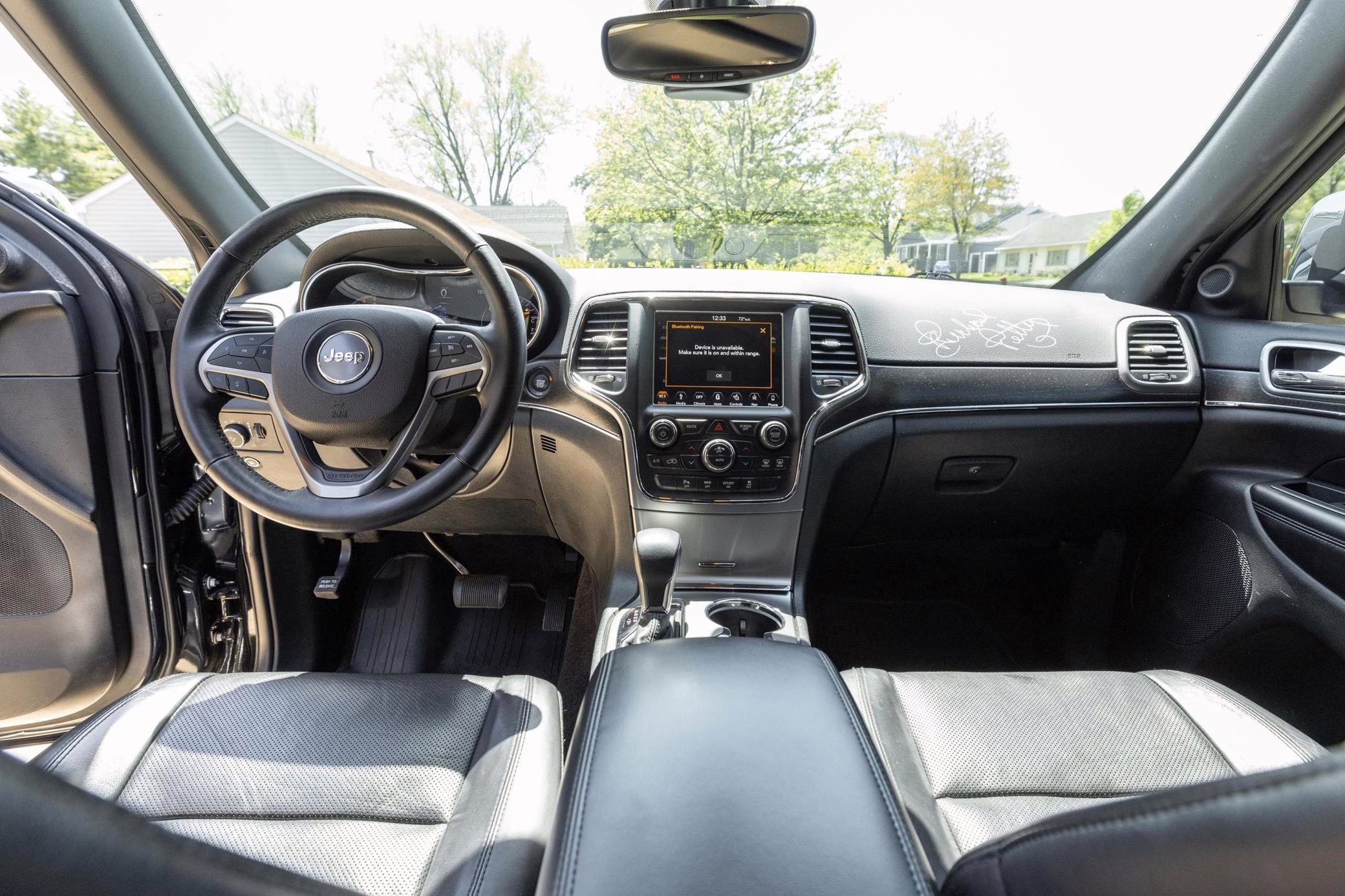 According to the digital window stickers shown in the gallery, this Grand Cherokee carried an original MSRP of $49,080. Factory equipment includes the Customer Preferred 28H and Luxury Group II packages, a Selec-Terrain suspension system, a dual-pane panoramic sunroof, leather upholstery, heated front and rear seats, a heated steering wheel, an 8.4-inch touchscreen display with Uconnect navigation, remote start, and more as detailed below.