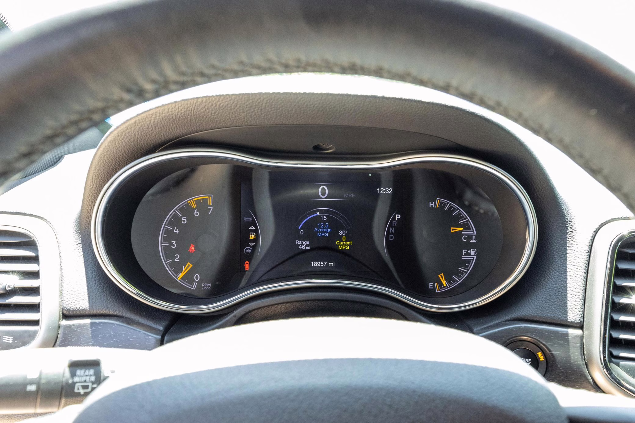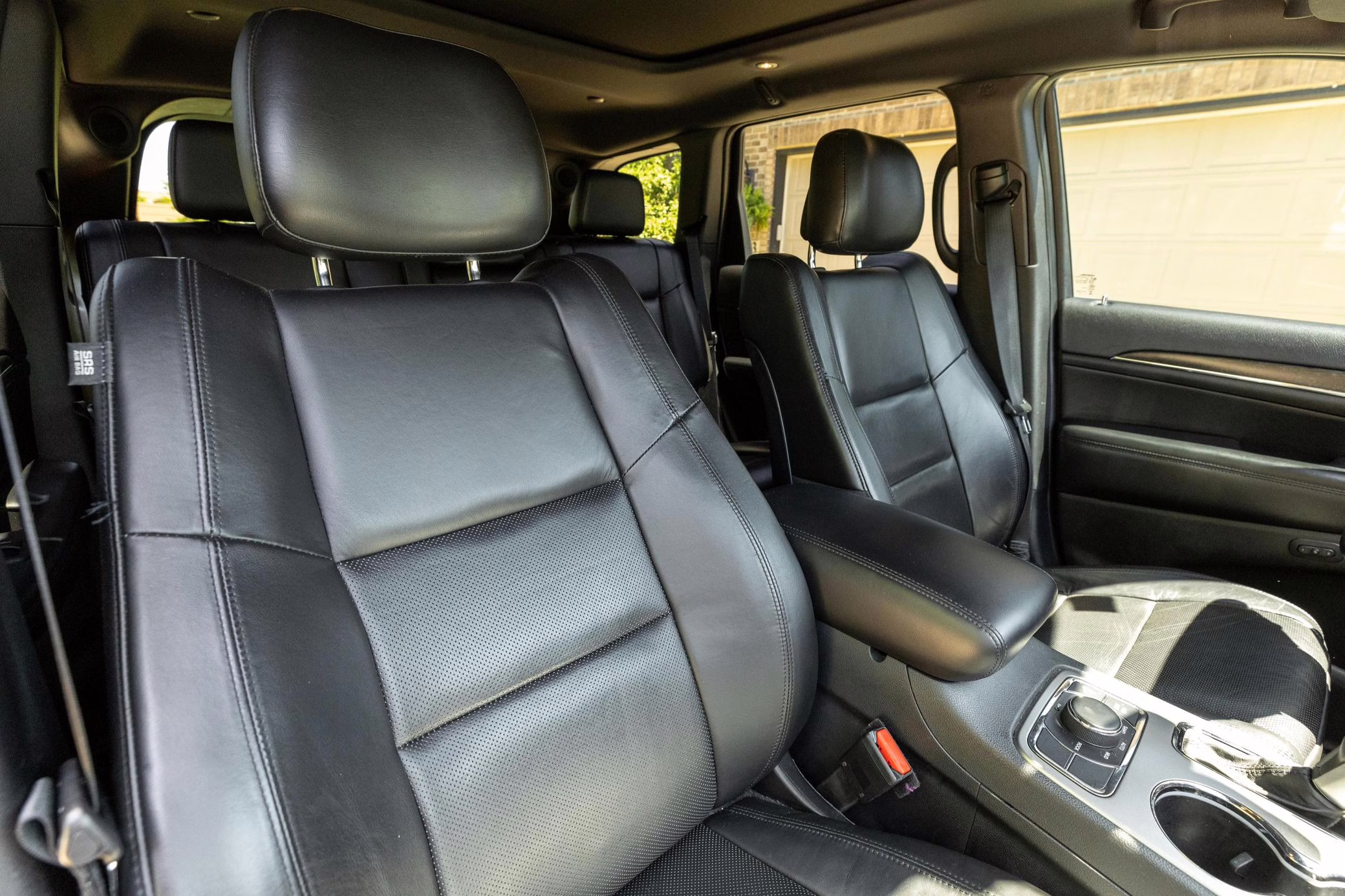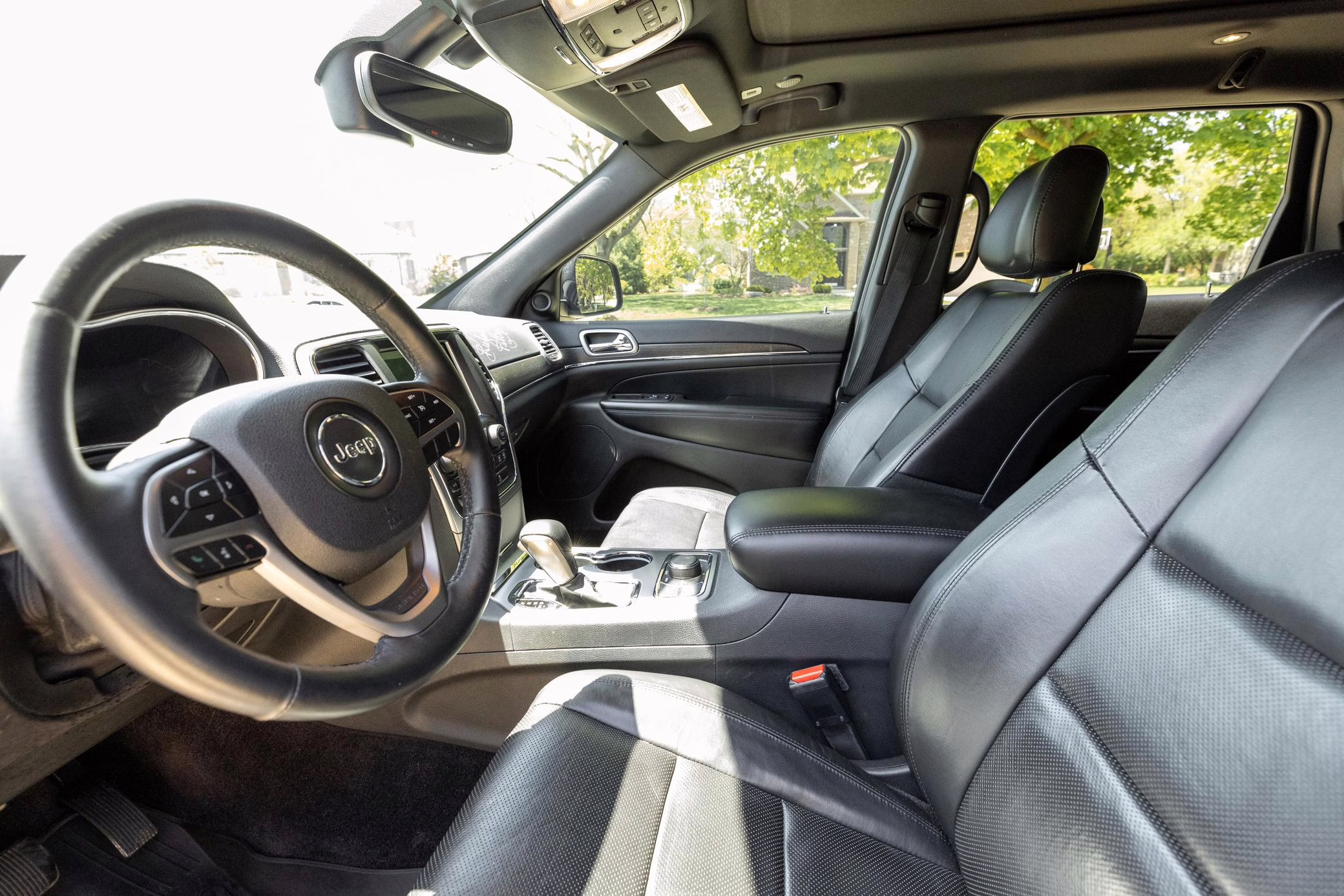 According to the digital window stickers shown in the gallery, this Grand Cherokee carried an original MSRP of $49,080. Factory equipment includes the Customer Preferred 28H and Luxury Group II packages, a Selec-Terrain suspension system, a dual-pane panoramic sunroof, leather upholstery, heated front and rear seats, a heated steering wheel, an 8.4-inch touchscreen display with Uconnect navigation, remote start, and more as detailed below.