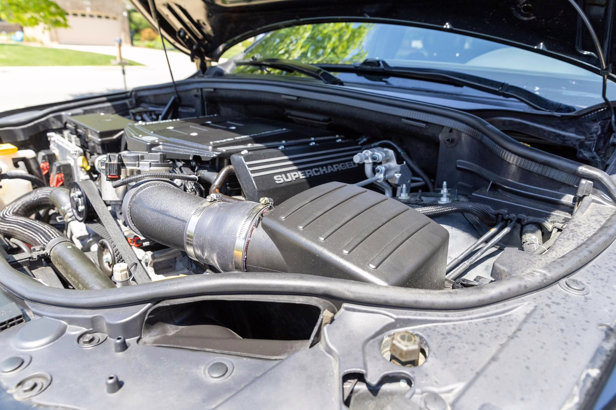 Modifications reported by the seller include a Magnuson TSV1320 supercharger, reprogrammed engine and transmission modules, a Mopar cold-air intake, a Magnaflow exhaust system, and unique exterior stickers and badges.