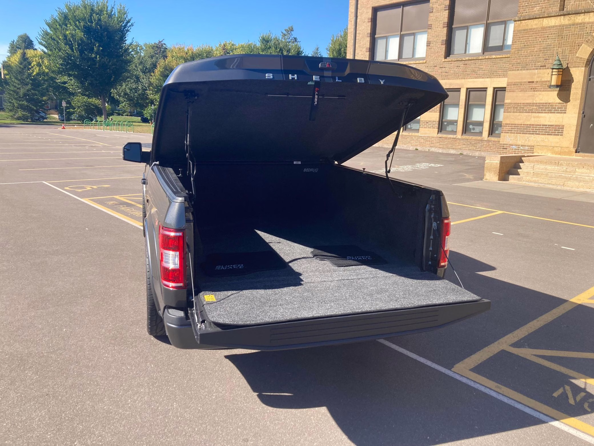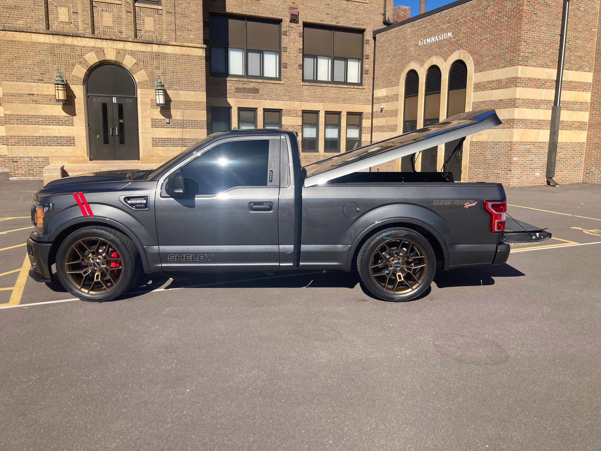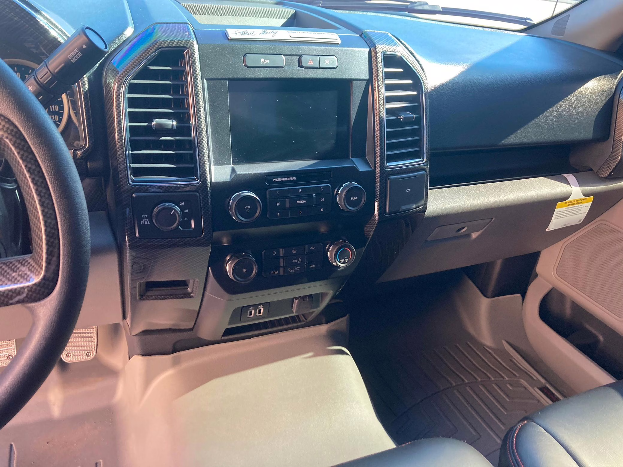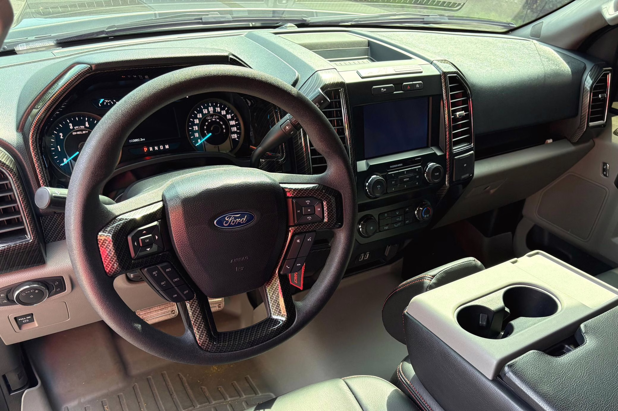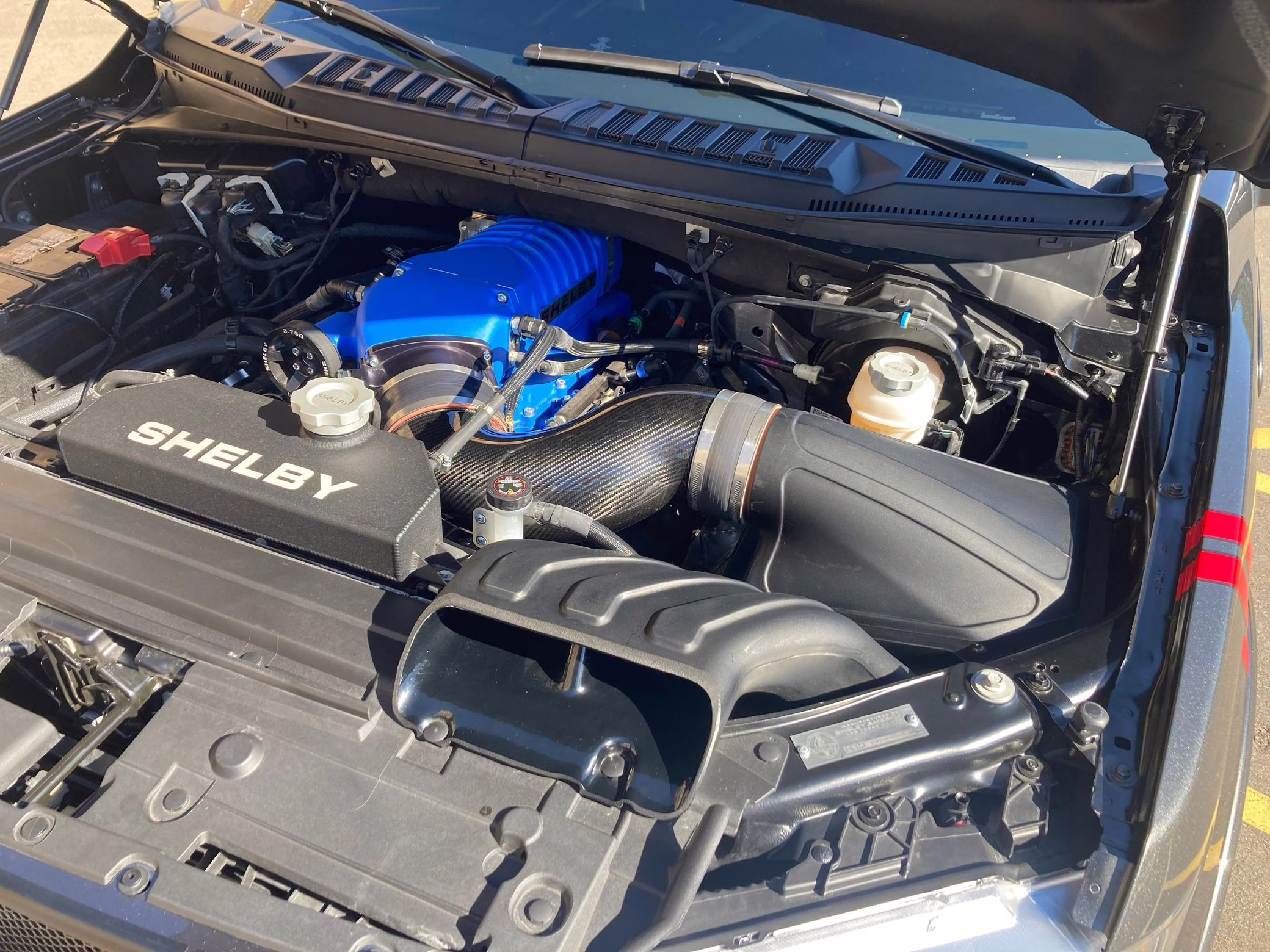 Shelby American reportedly built just 250 units of the F-150-based Super Snake Sport for 2020; this is number 15, according to the numbered plates in the engine bay and dashboard. It features a Whipple supercharger, a performance air intake system, a Borla exhaust system with bright tips, 22-inch wheels, a Stage 3 racing suspension system, carbon fiber interior trim, and a BedRug bed liner in the cargo box, among other Shelby equipment.