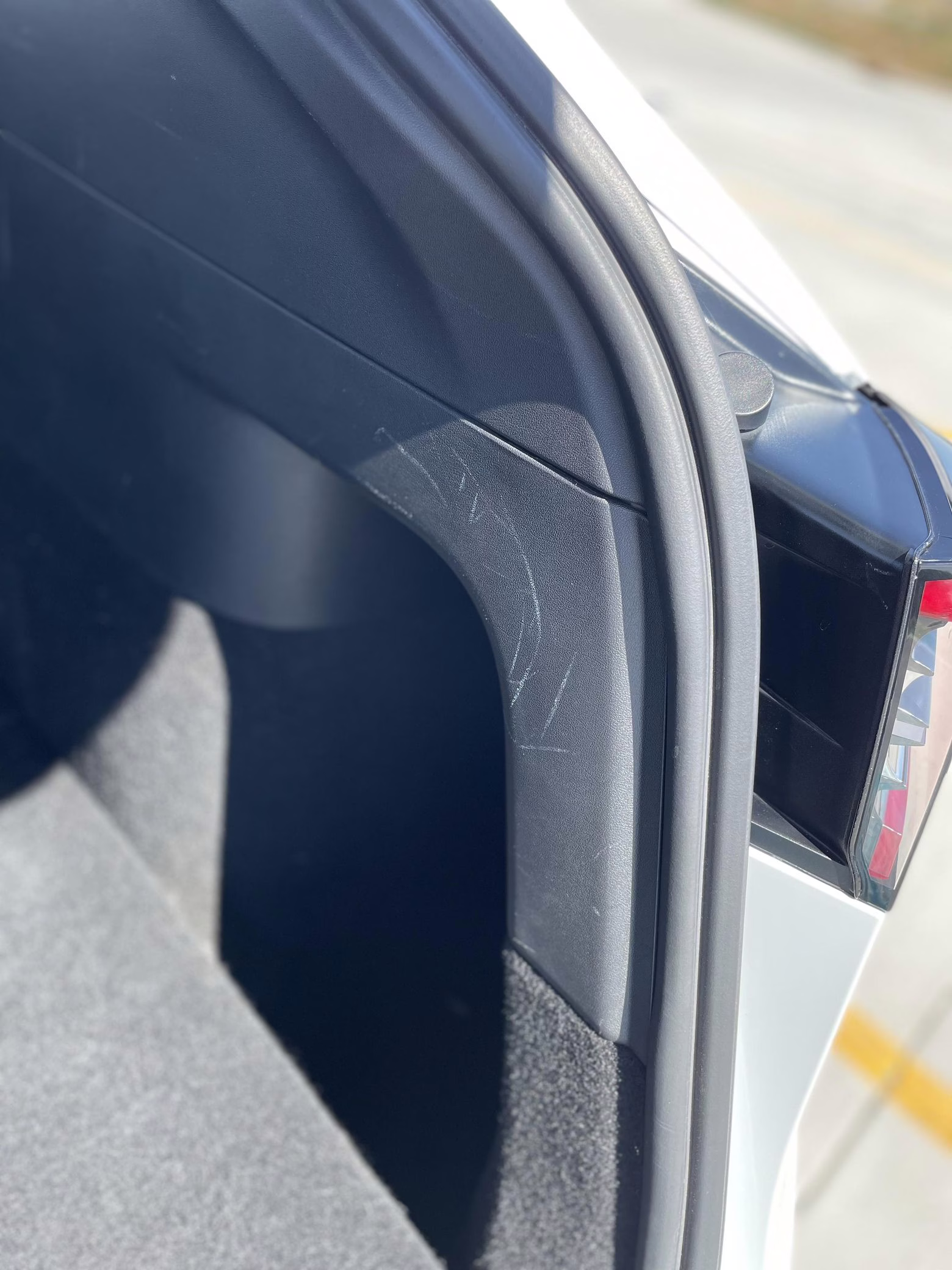 Some scratches on rear hatch interior plastic trim (pictured in the gallery)