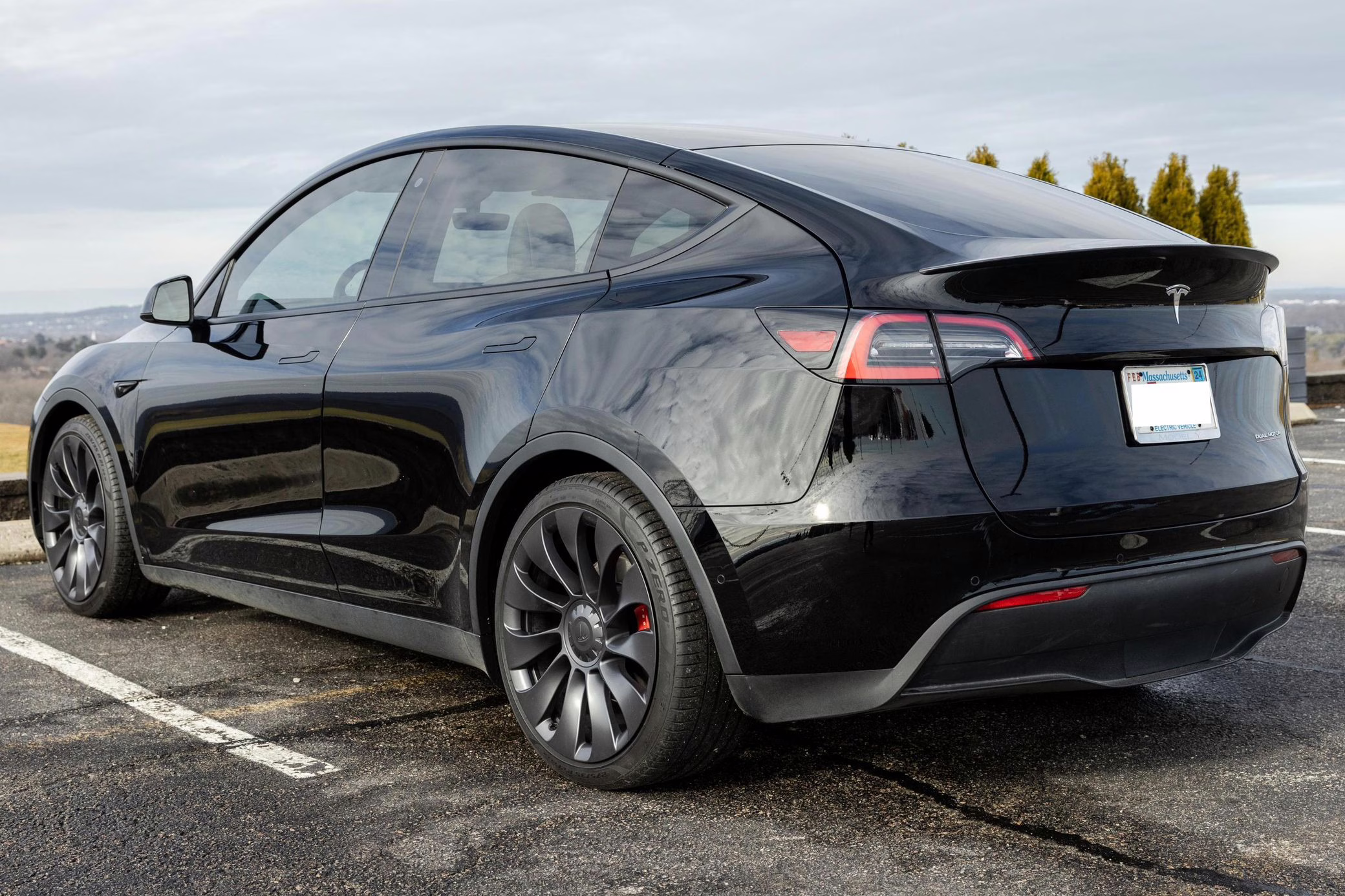 Power comes from a pair of electric motors, which draw electricity from a 75-kilowatt-hour lithium-ion battery pack to zap the four wheels via 455 horsepower and 487 lb-ft of torque, according to third-party estimates. In 2020, the EPA gave the Model Y Performance a maximum driving range rating of 291 miles.