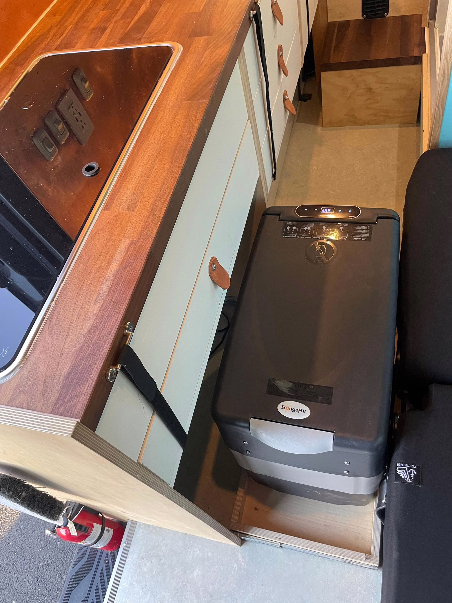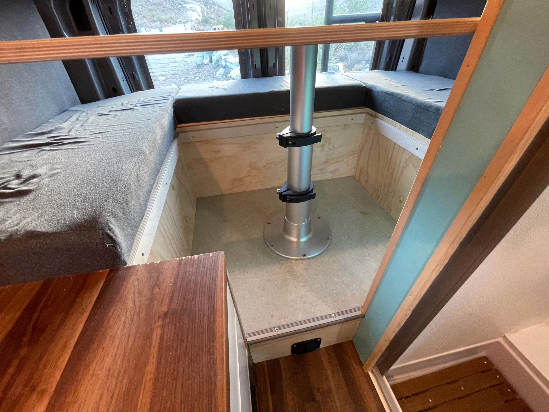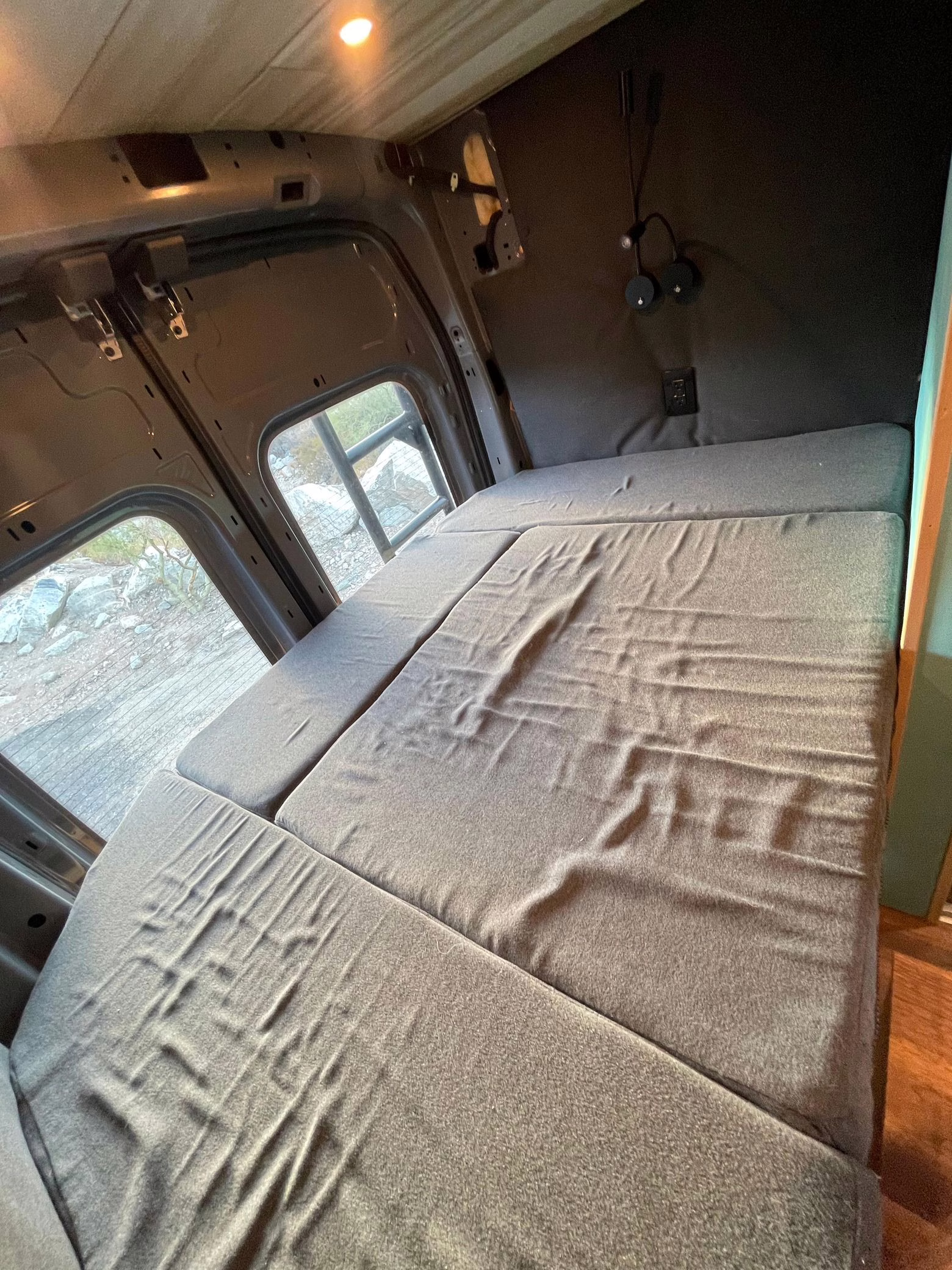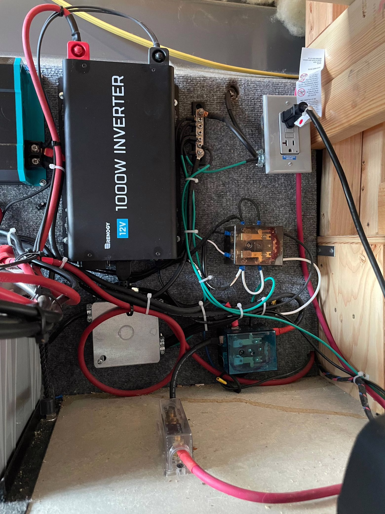 2 100-watt solar panels and 2 200 amp-hour batteries located in the rear of the van