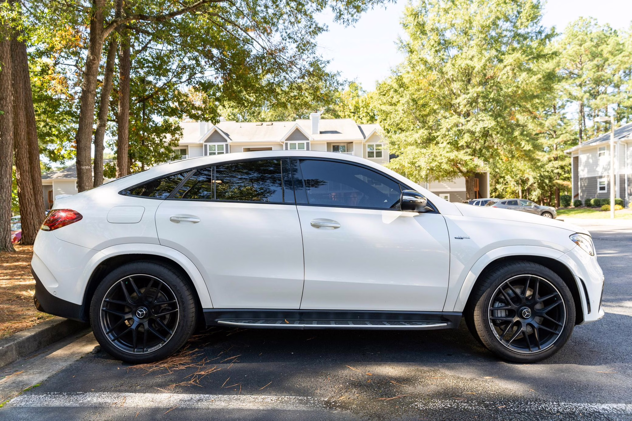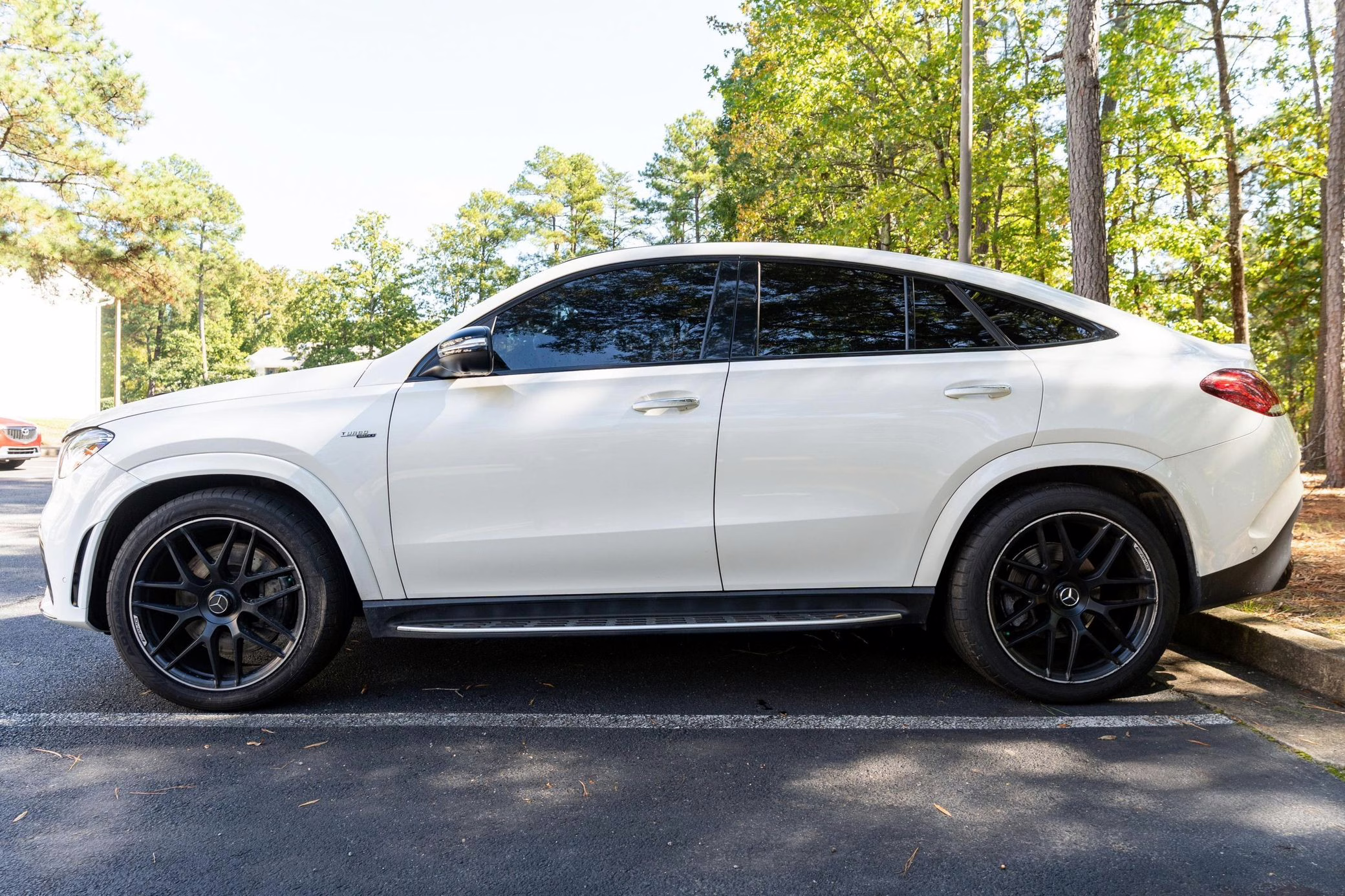 2021 Mercedes-AMG GLE53 Coupe, finished in Diamond White Metallic with a black interior.