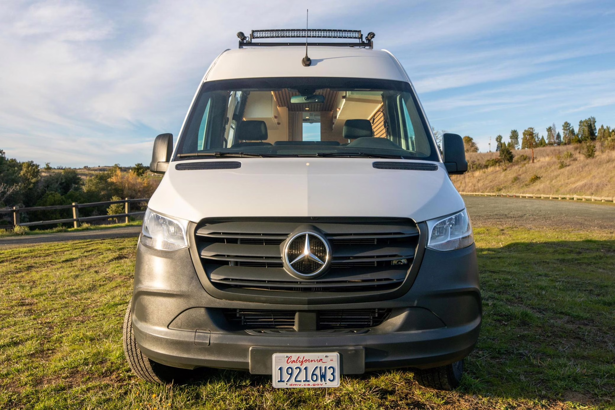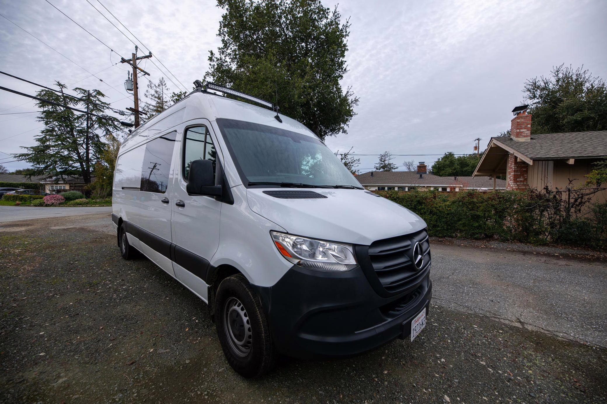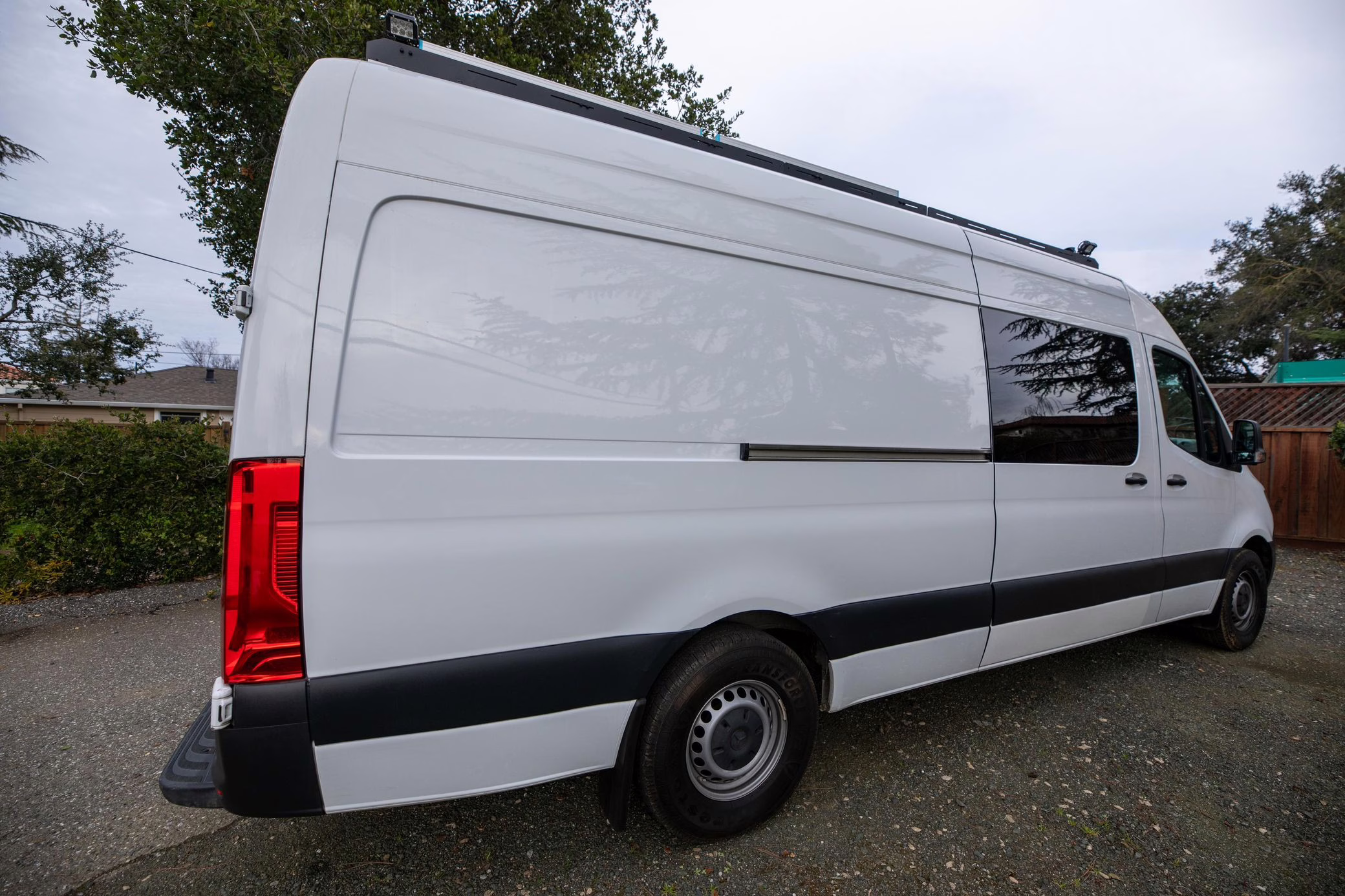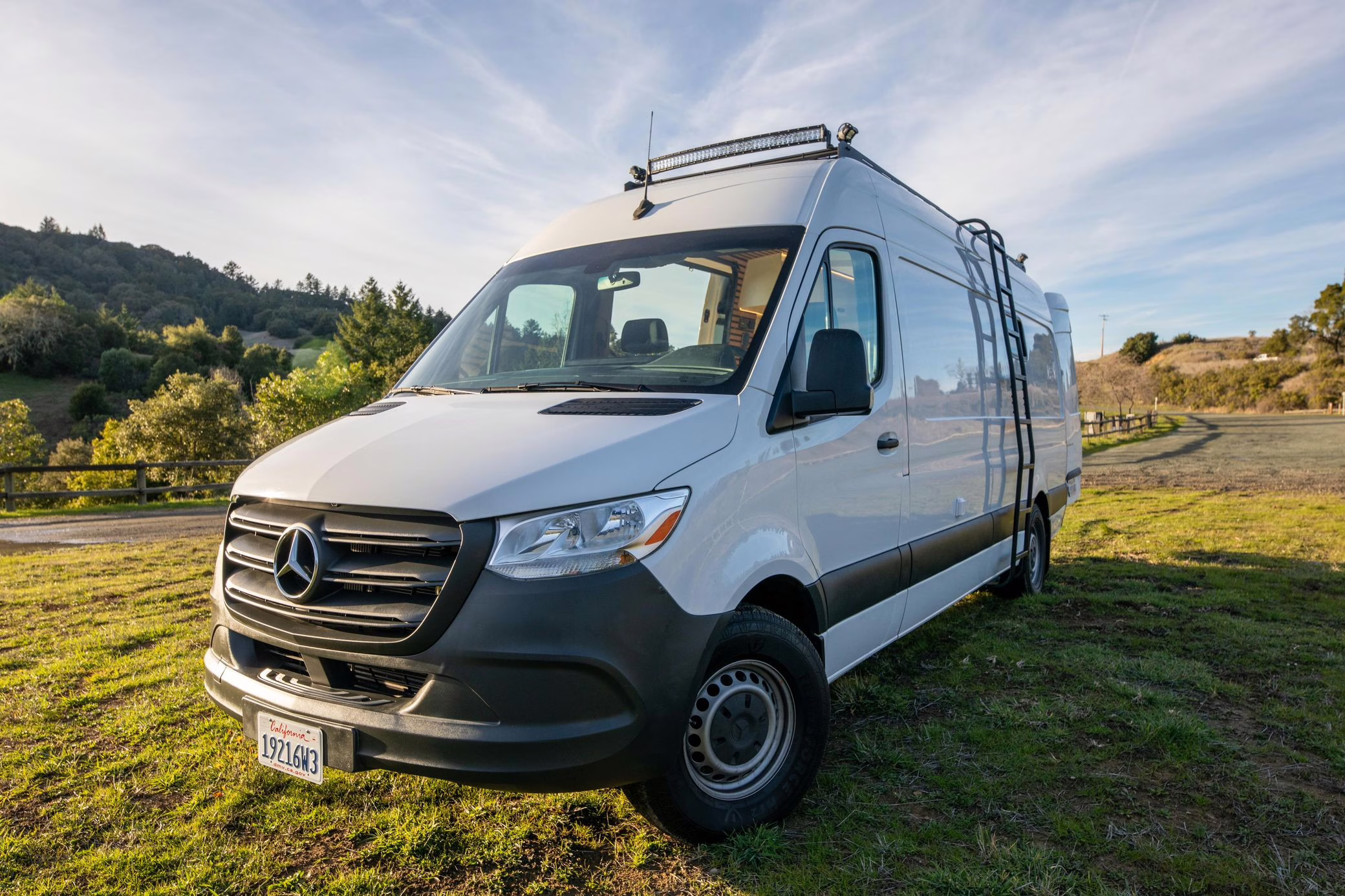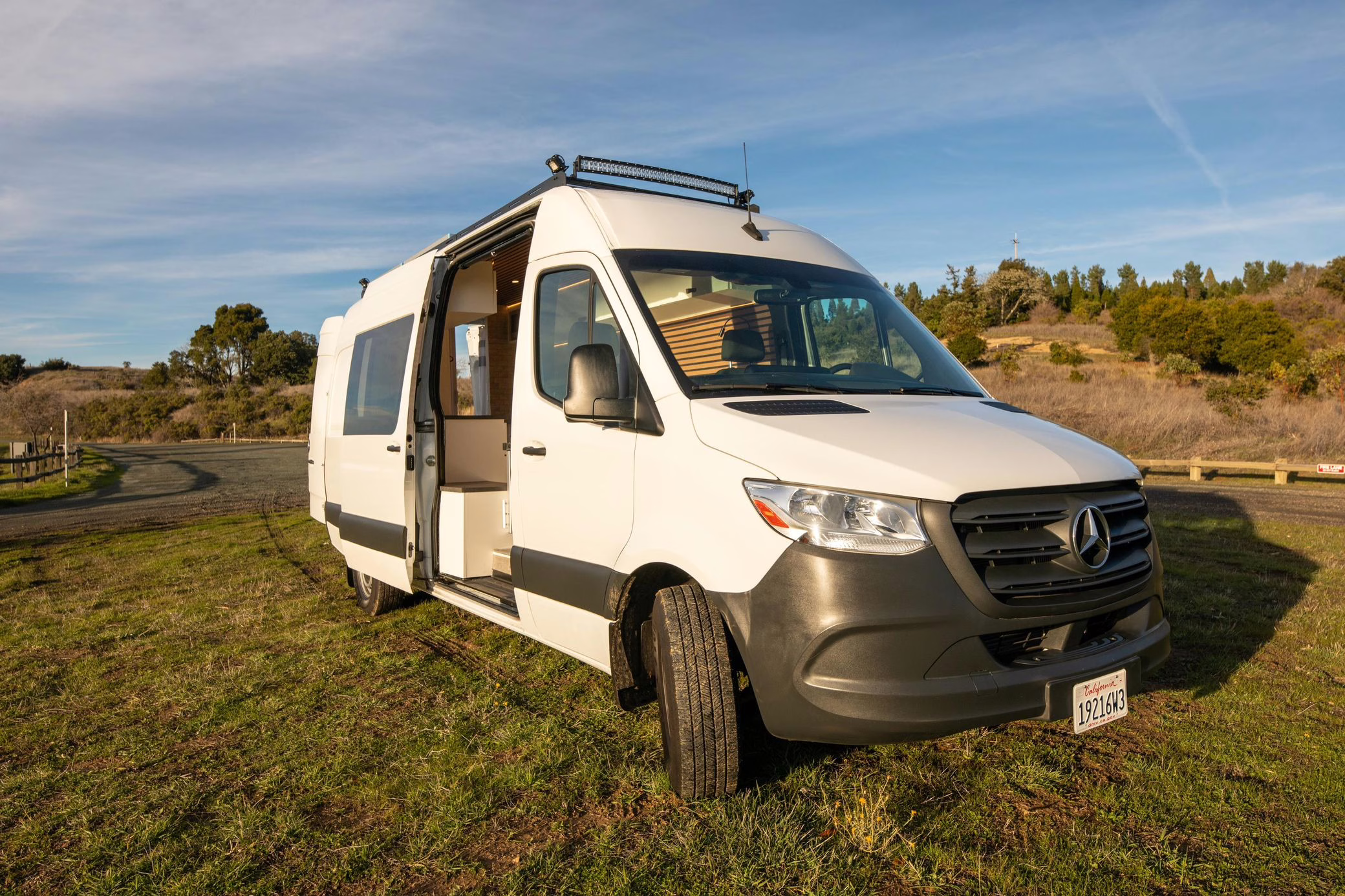 This Sprinter has been converted into a camper, and partial list of modifications reported by the seller include a 42-inch LED lightbar, a swiveling passenger seat, a folding sofa bed, a Lagun adjustable table, a 50-inch ceiling-mounted projector screen, kitchen area cabinetry, a 5kW diesel heater, a 45-liter 12v refrigerator with freezer, a Delta Shower Systems shower, three 100W solar panels, a Renogy 3000W inverter and Cold Weather Battery, Dometic rooftop 13.5k BTU air conditioning unit, an Agile Offroad 33-gallon clean water tank, and more as listed below.