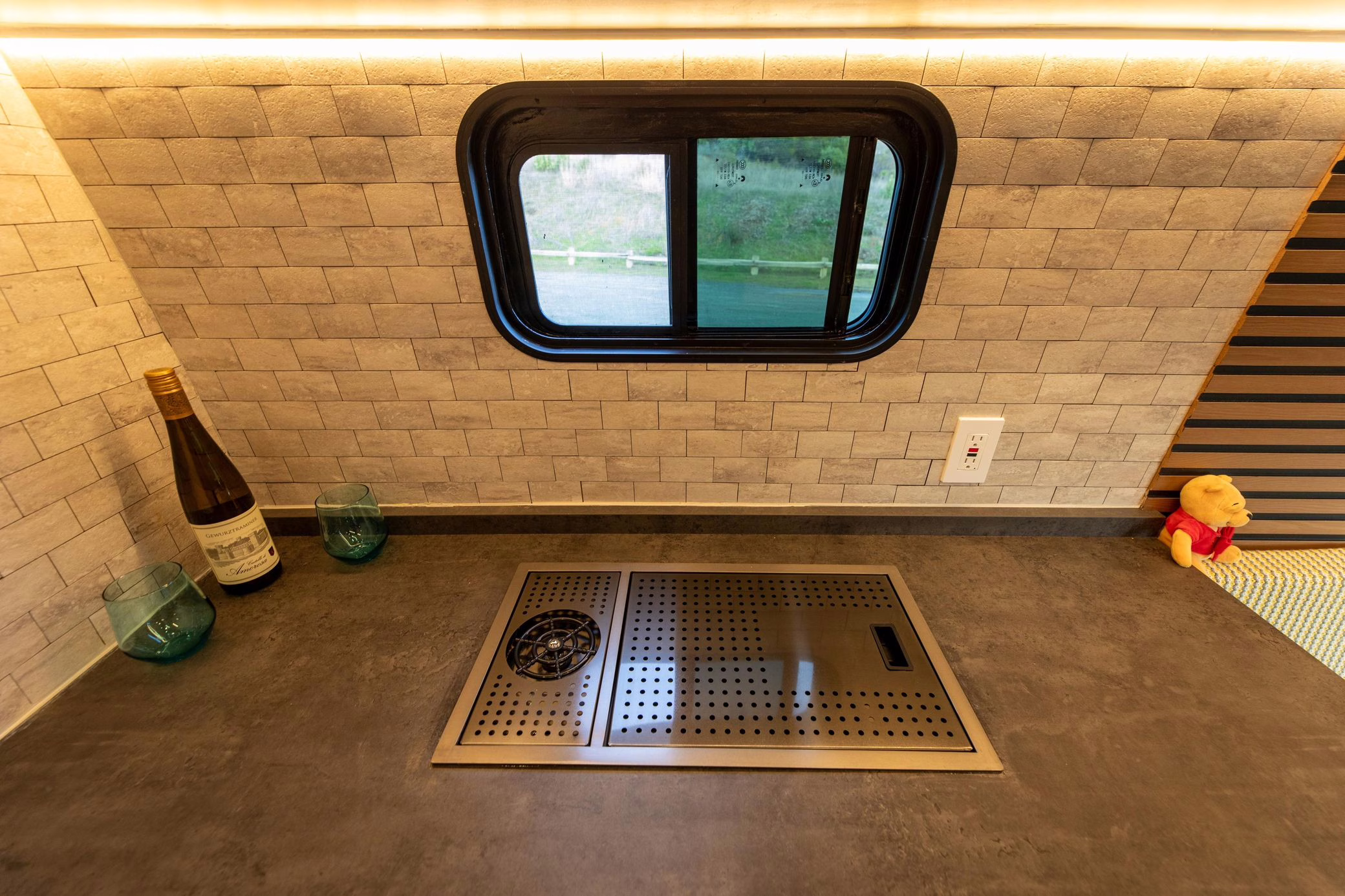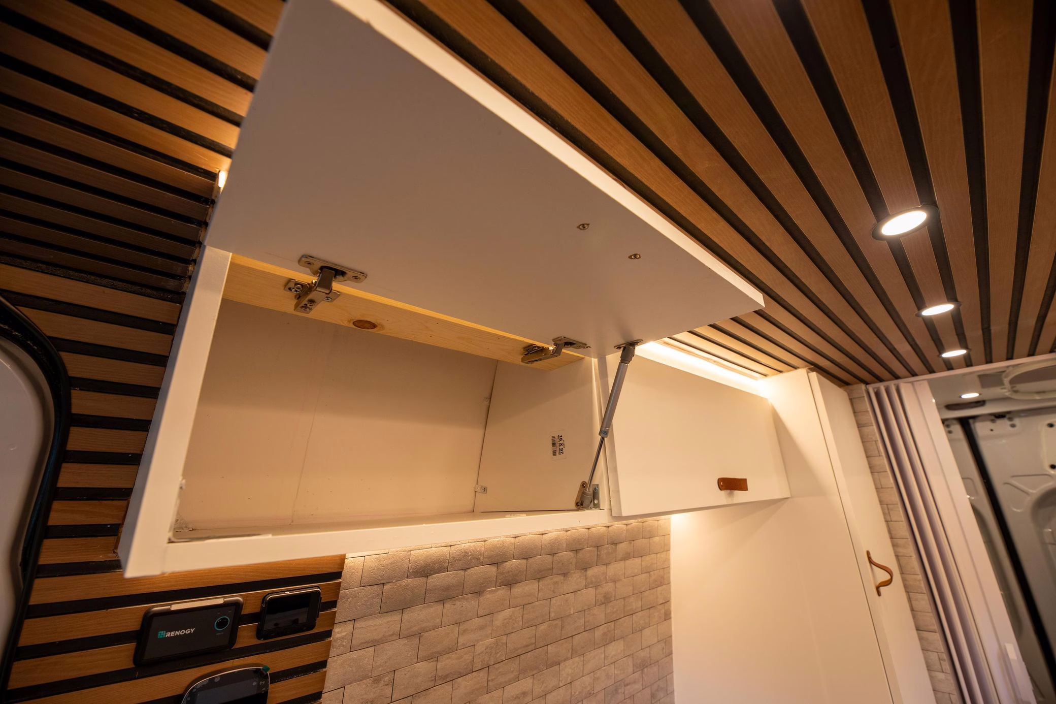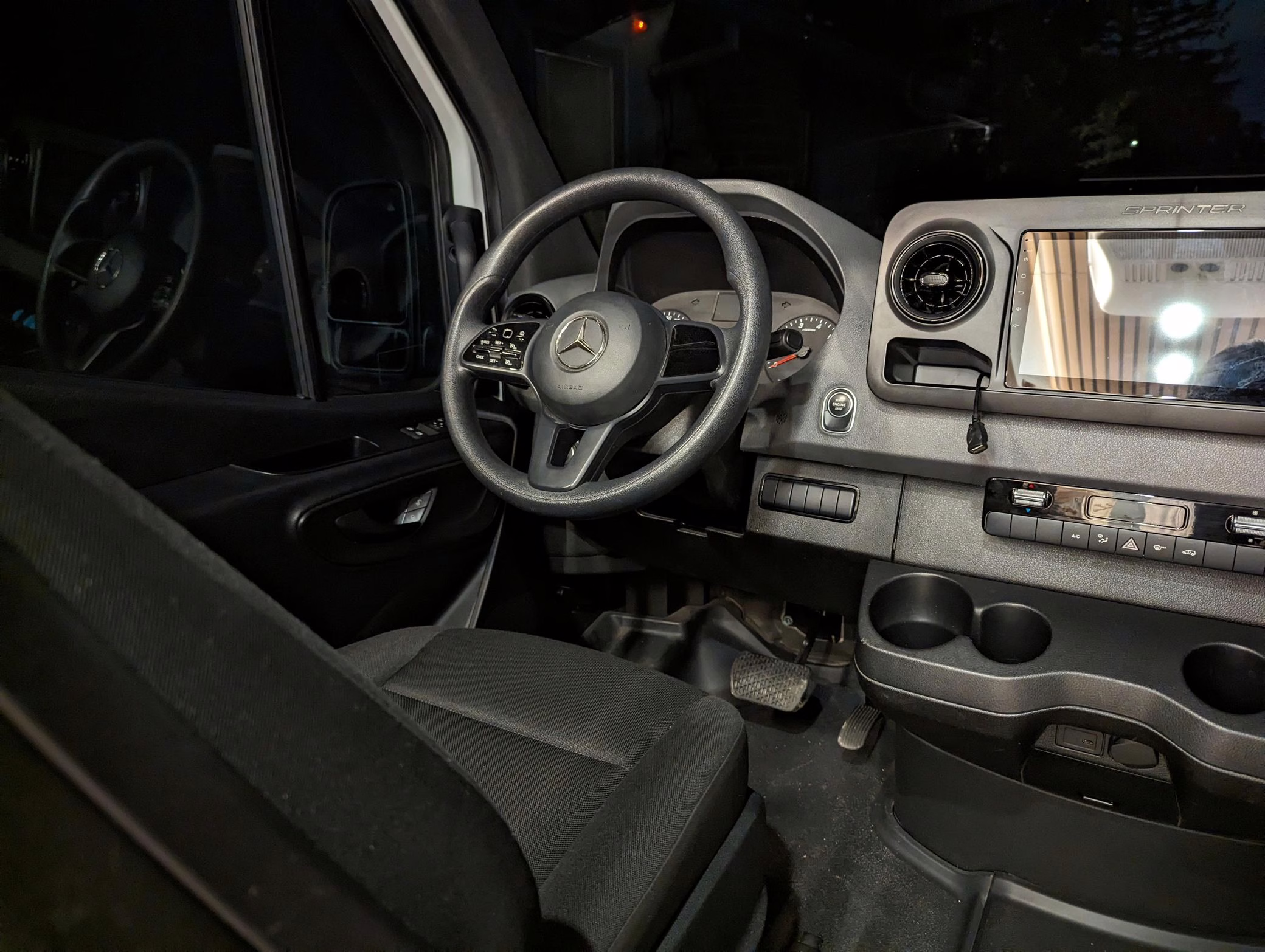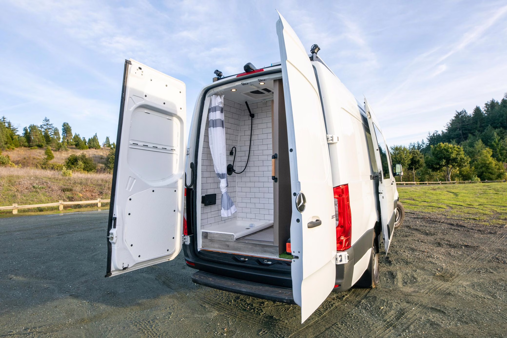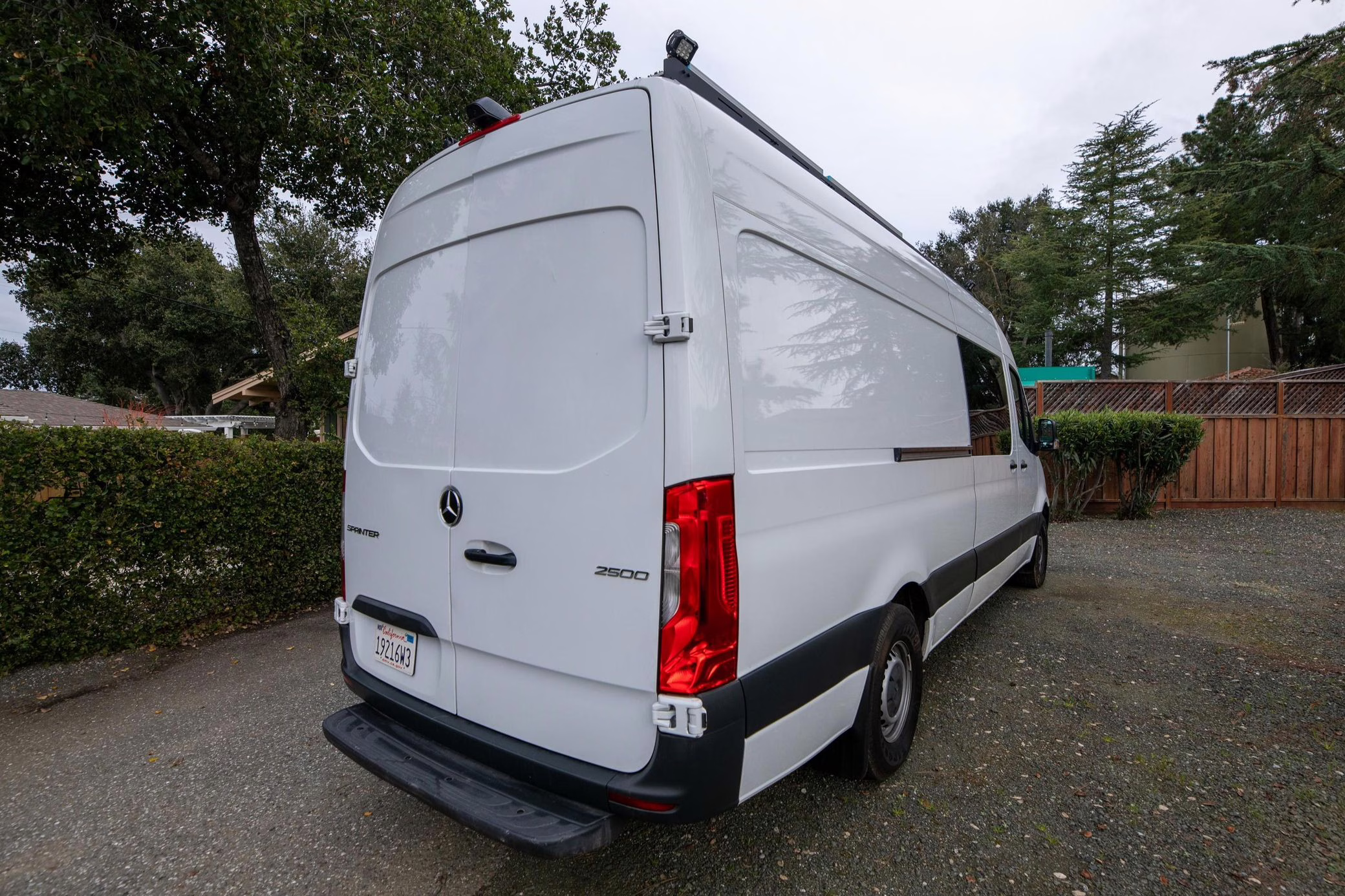 This Sprinter has been converted into a camper, and partial list of modifications reported by the seller include a 42-inch LED lightbar, a swiveling passenger seat, a folding sofa bed, a Lagun adjustable table, a 50-inch ceiling-mounted projector screen, kitchen area cabinetry, a 5kW diesel heater, a 45-liter 12v refrigerator with freezer, a Delta Shower Systems shower, three 100W solar panels, a Renogy 3000W inverter and Cold Weather Battery, Dometic rooftop 13.5k BTU air conditioning unit, an Agile Offroad 33-gallon clean water tank, and more as listed below.